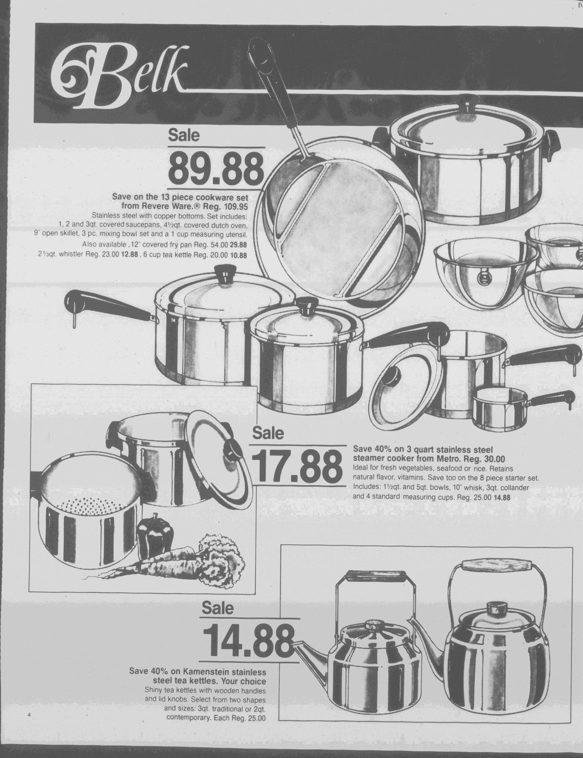 Ideal for fresh vegetables, seafood or rice. Retains natural flavor, vitamins. Save too on the 8 piece starter set. Includes: IVaqt. and 5qt. bowls, 10 whisk, 3qt. collander and 4 standard measuring cups. Reg. 25.00 14.88
