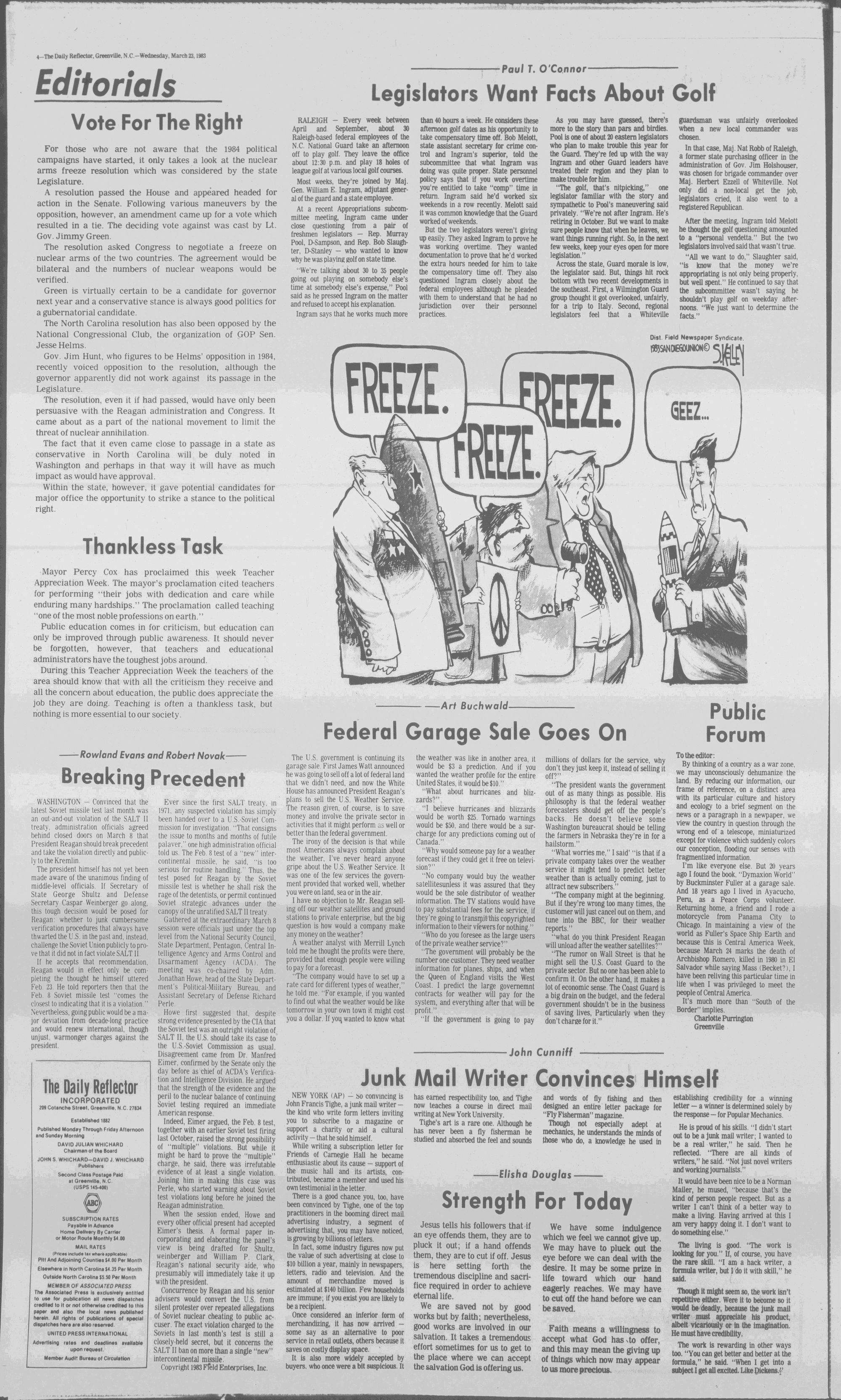 Page 8-Reagan on TV Page 27 - The legislature Page 34 Re-arming costly