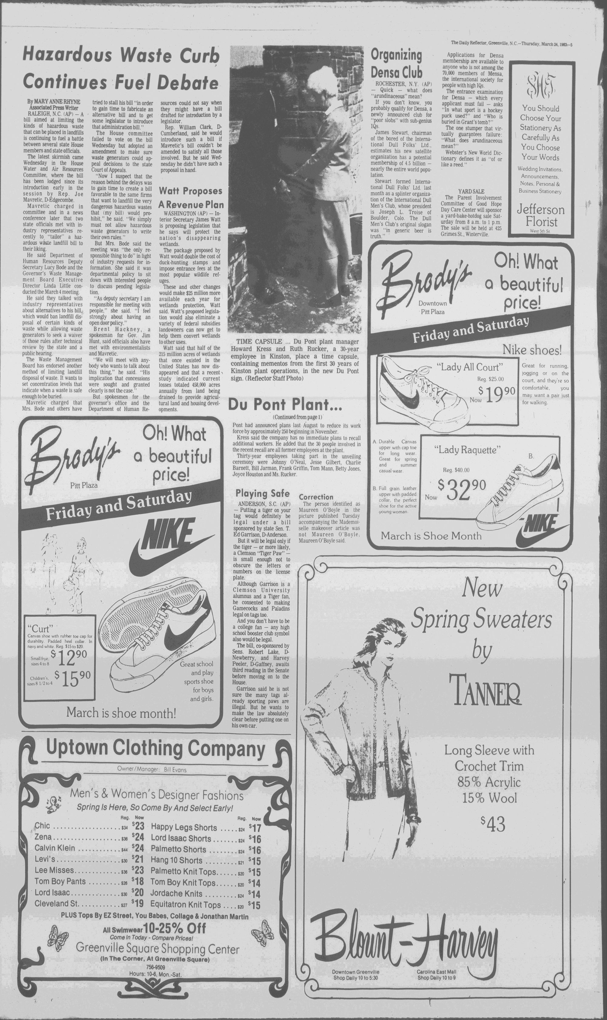 He said the Kinston site was one of 87 locations considered by Du Pont in 1950 but Lenoir County was chosen after the site scored highest in a system that weighed factors such as proximity to customers, access to raw materials, transportation, water supply and labor. Kress said the first Dacron polyester fiber was produced on March 23, 1953. Today the product is used worldwide in a variety of end uses including clothes, furniture upholstery, carpet and pillows.