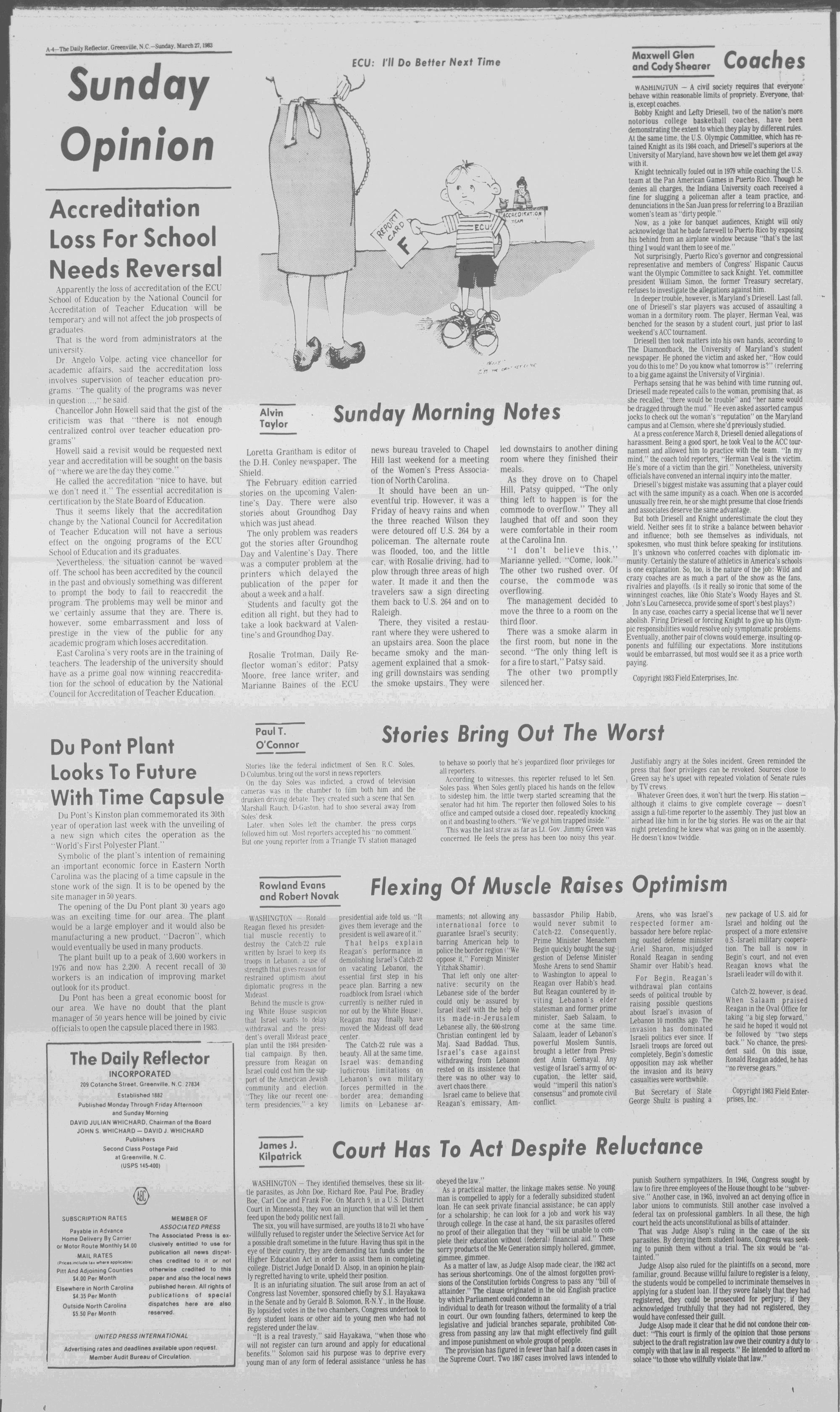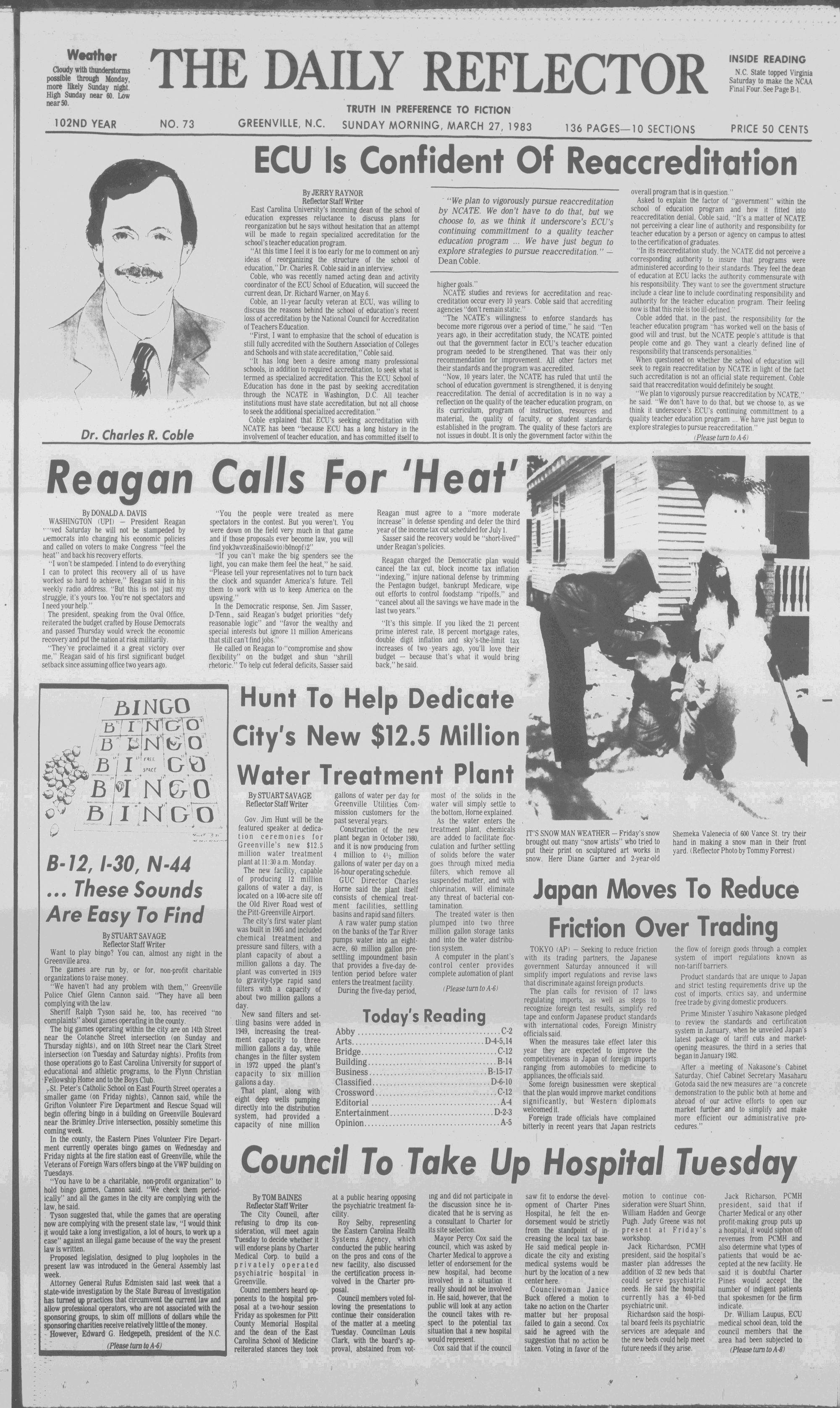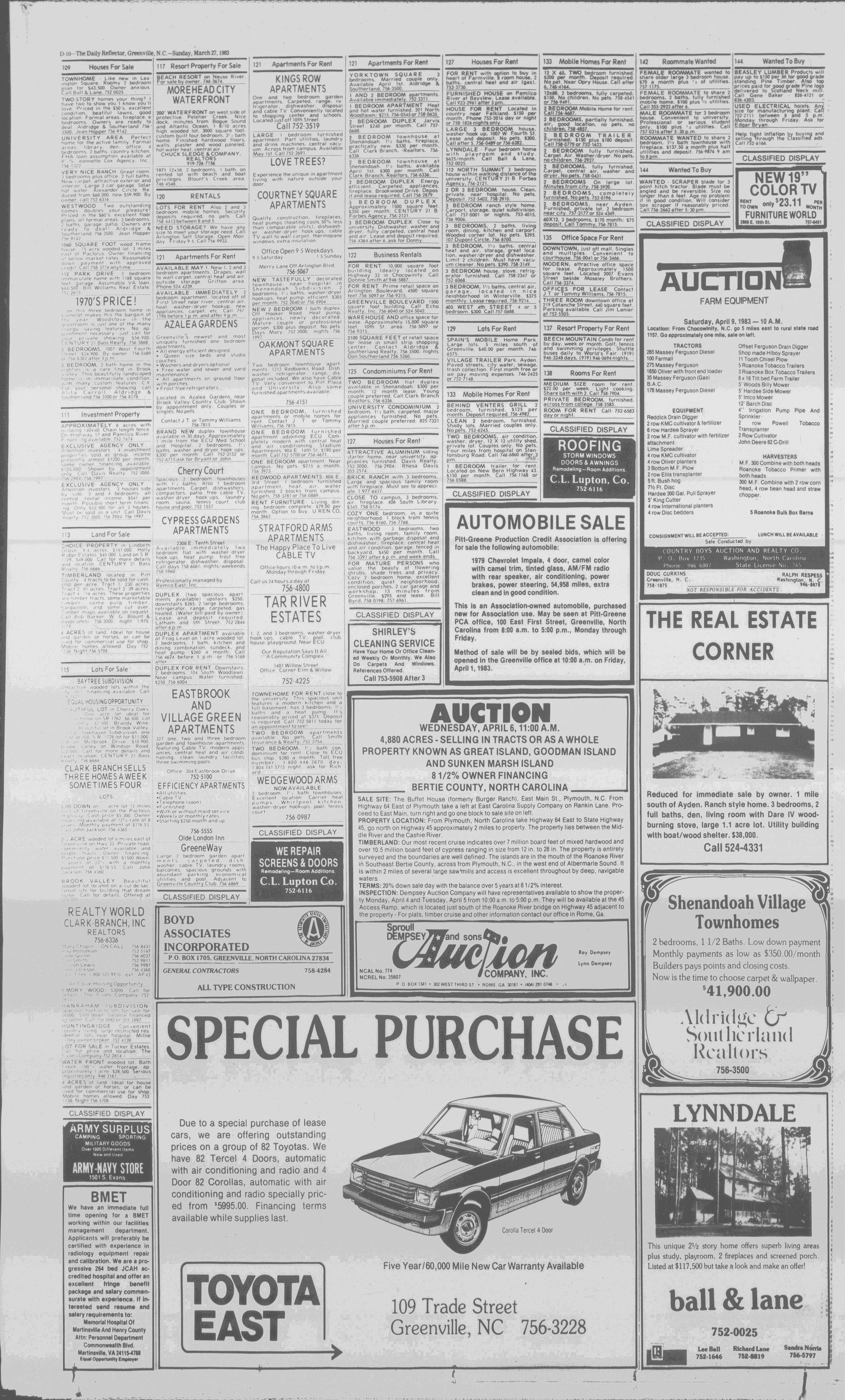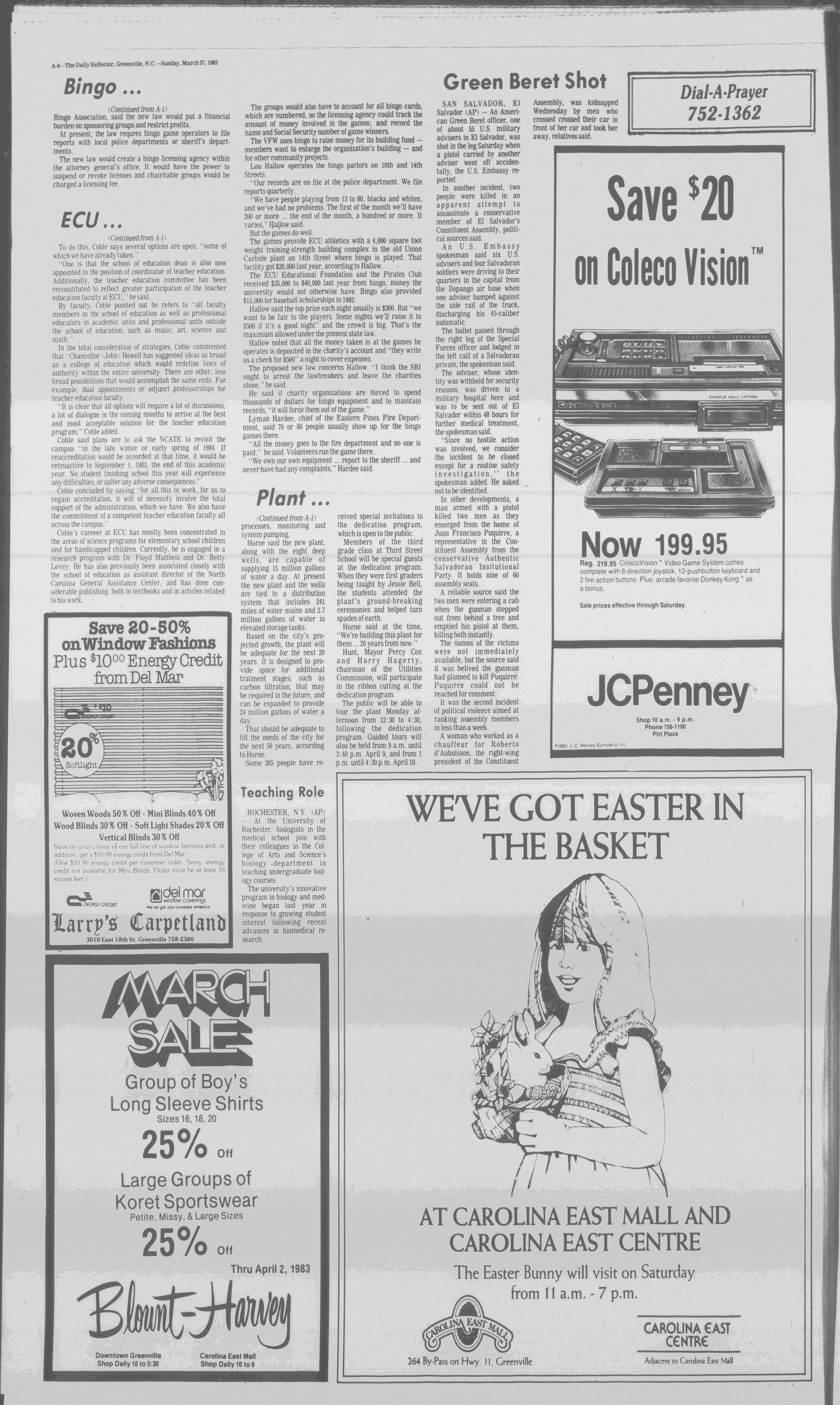 NO. 73 GREENVILLE, N.C. SUNDAY MORNING, MARCH 27, 1983 136 PAGES10 SECTIONS PRICE 50 CENTS