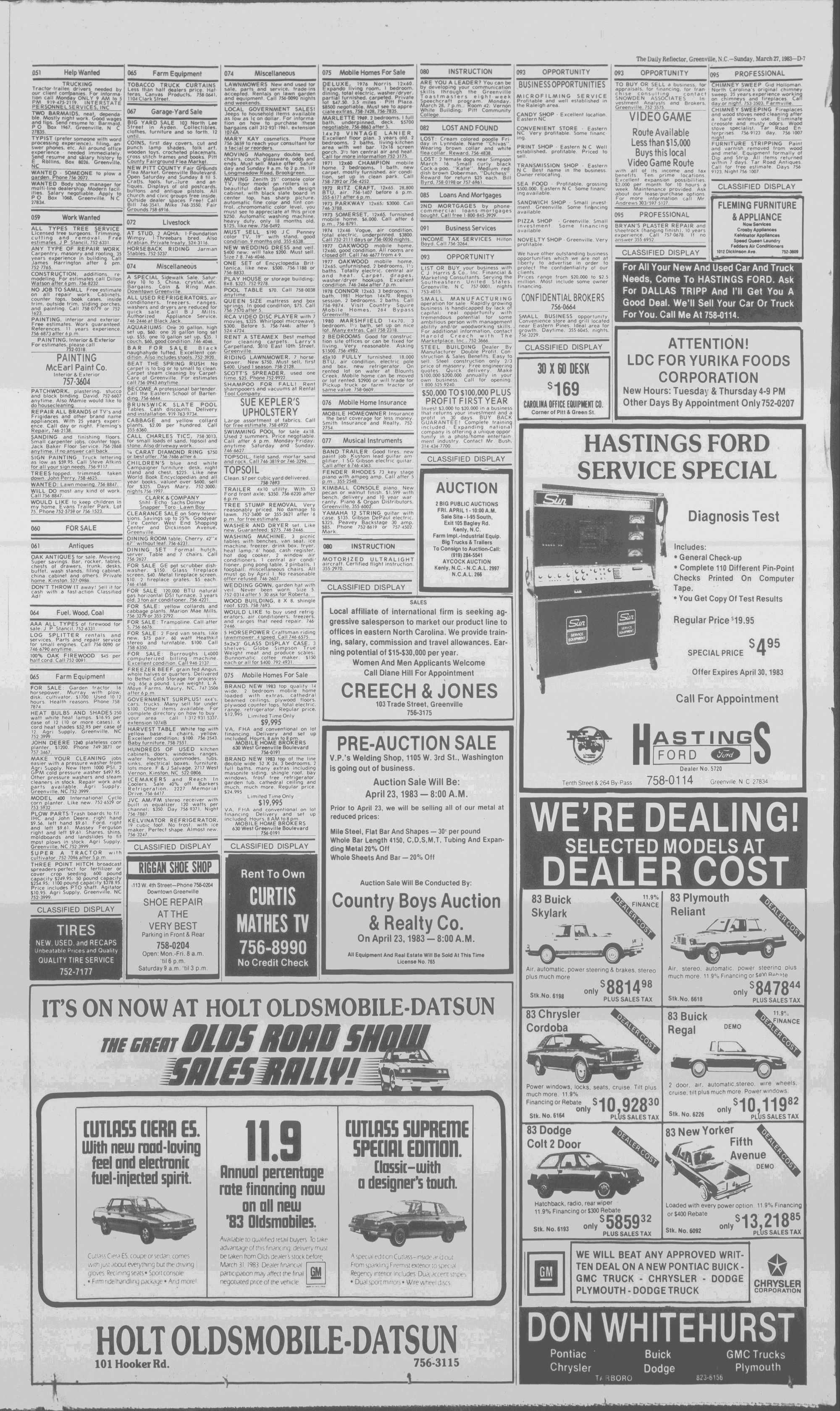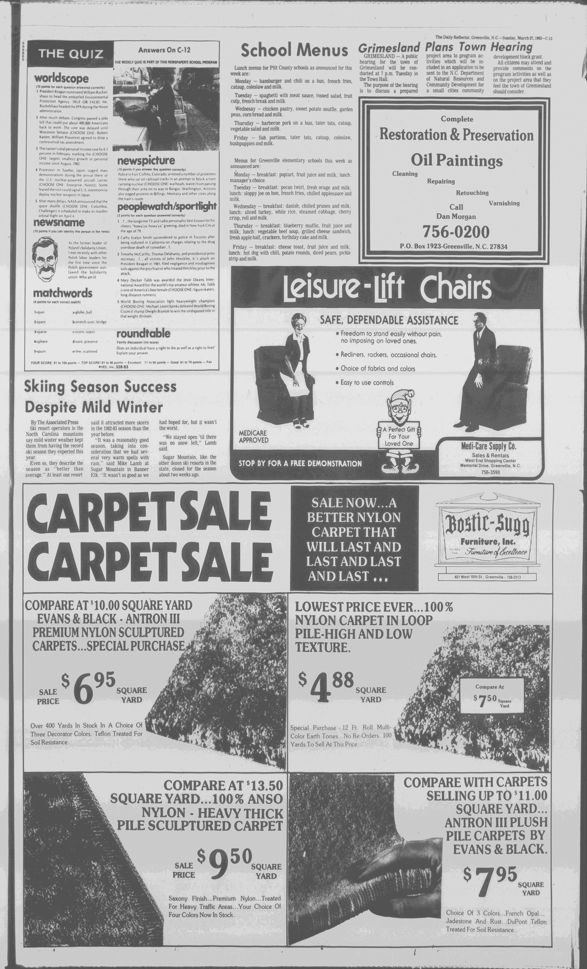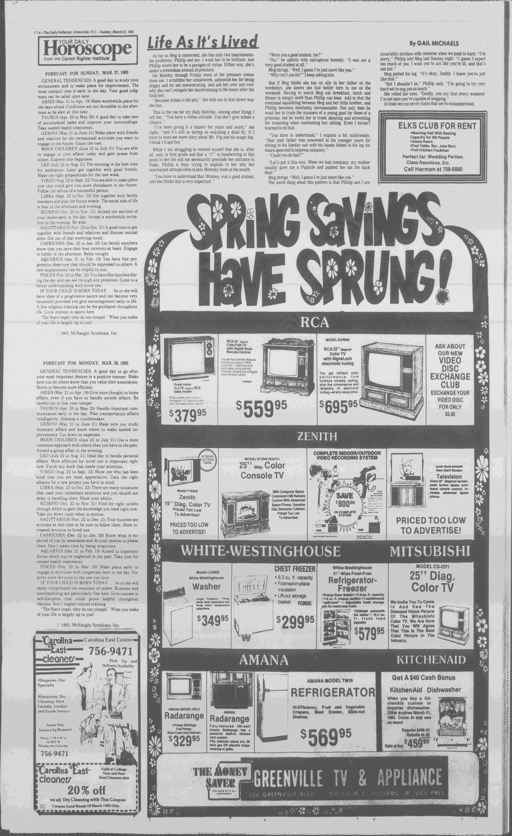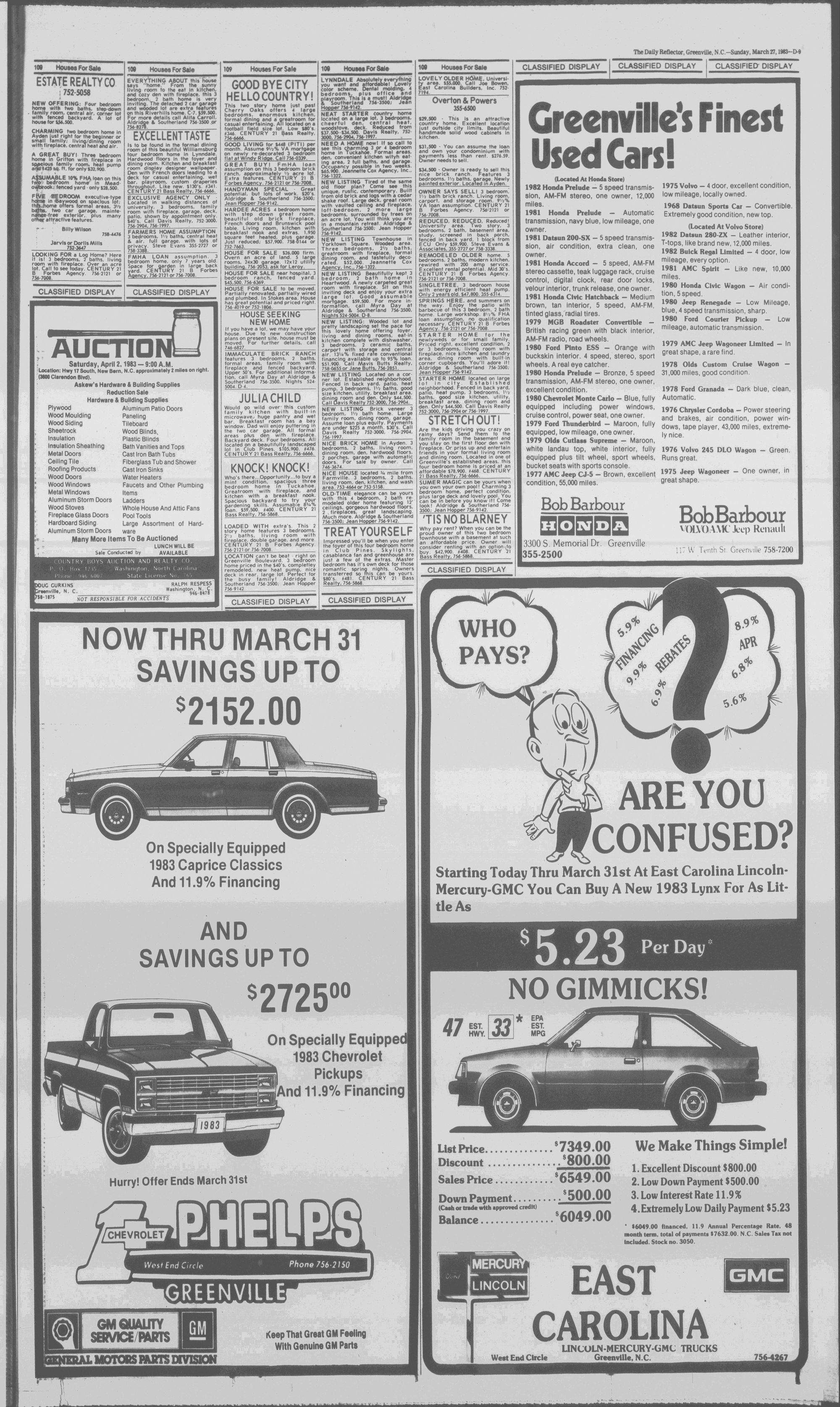 NO. 73 GREENVILLE, N.C. SUNDAY MORNING, MARCH 27, 1983 136 PAGES10 SECTIONS PRICE 50 CENTS