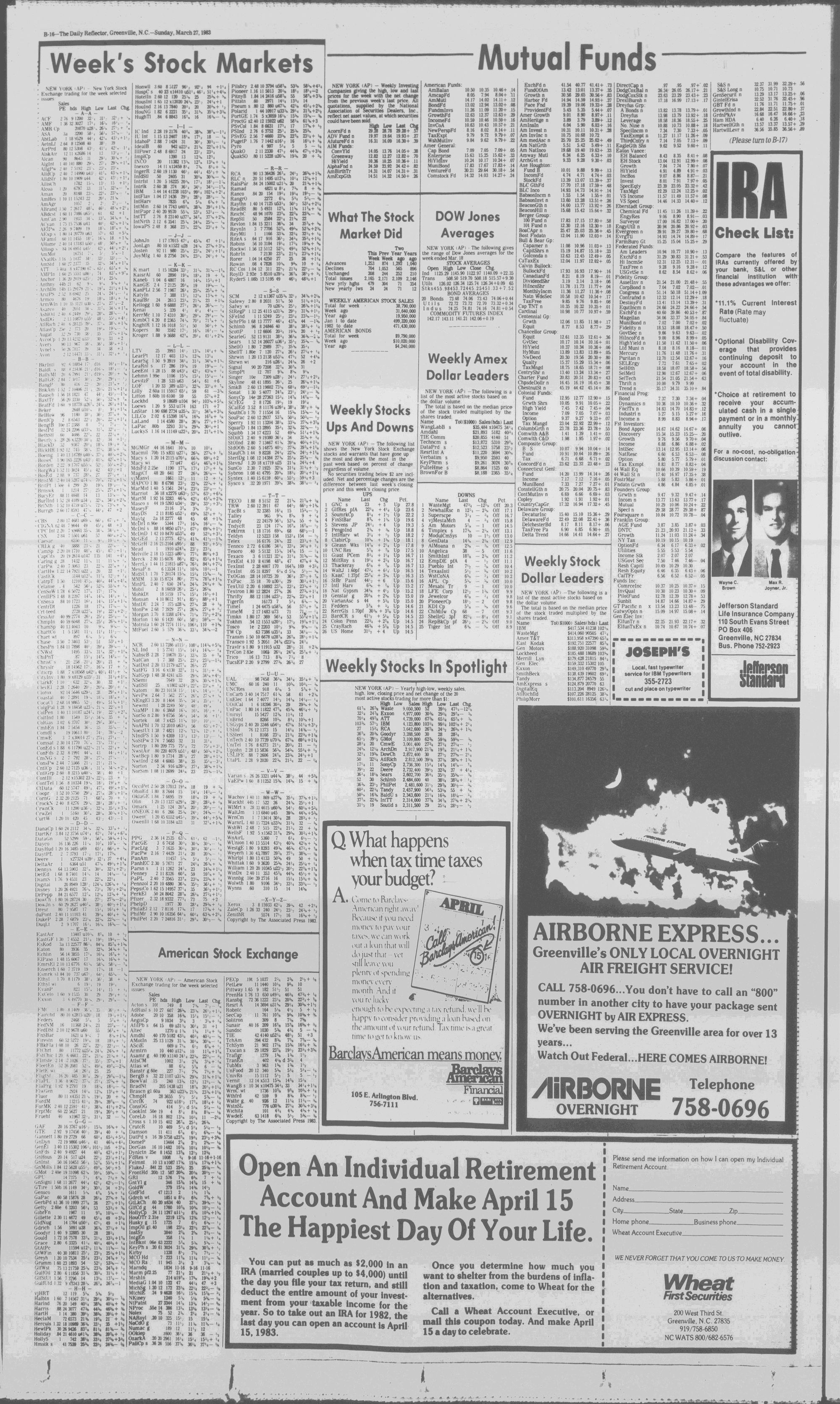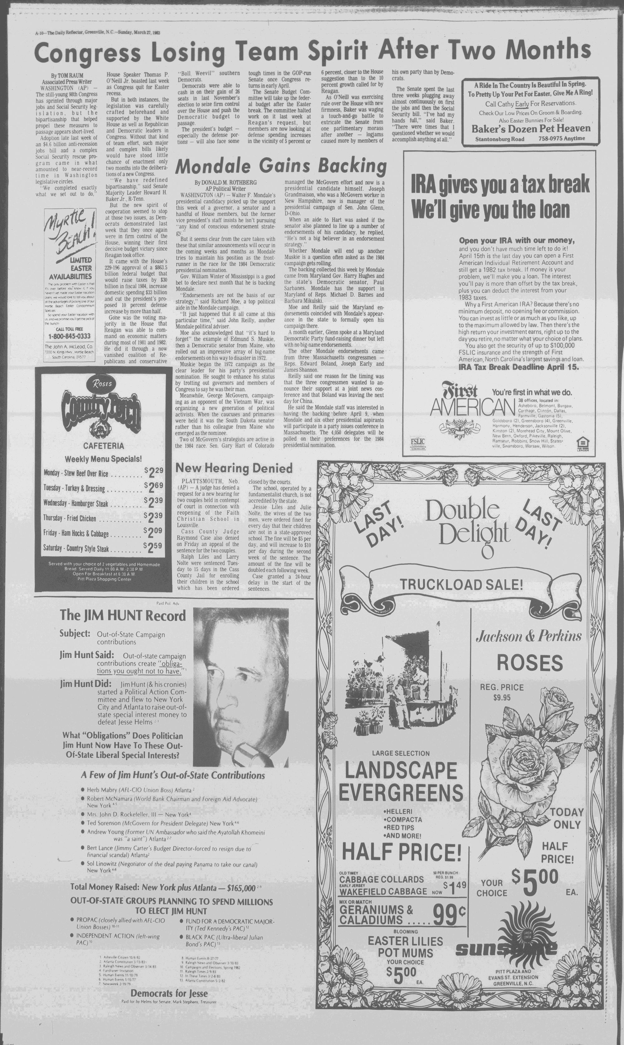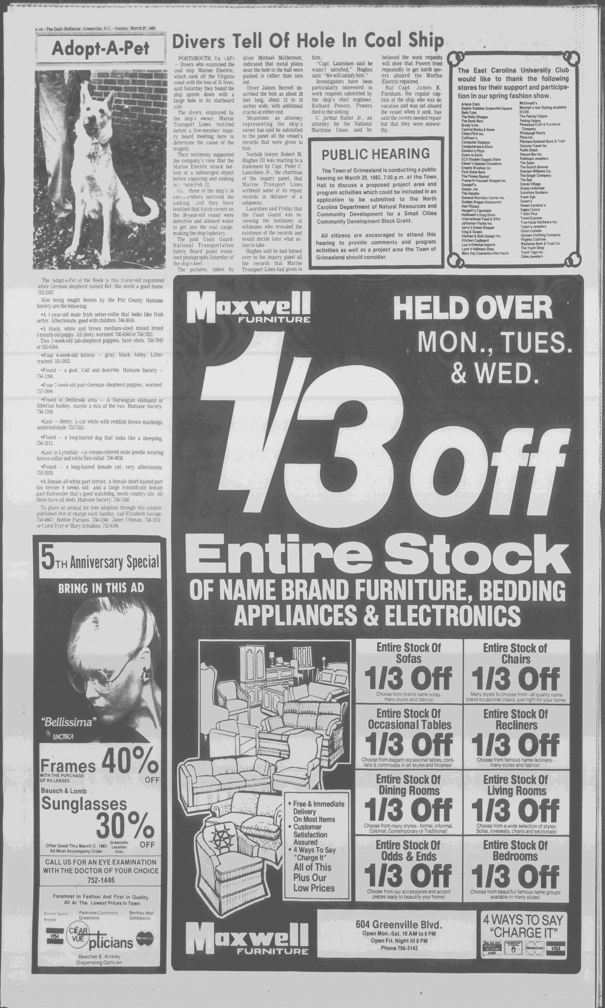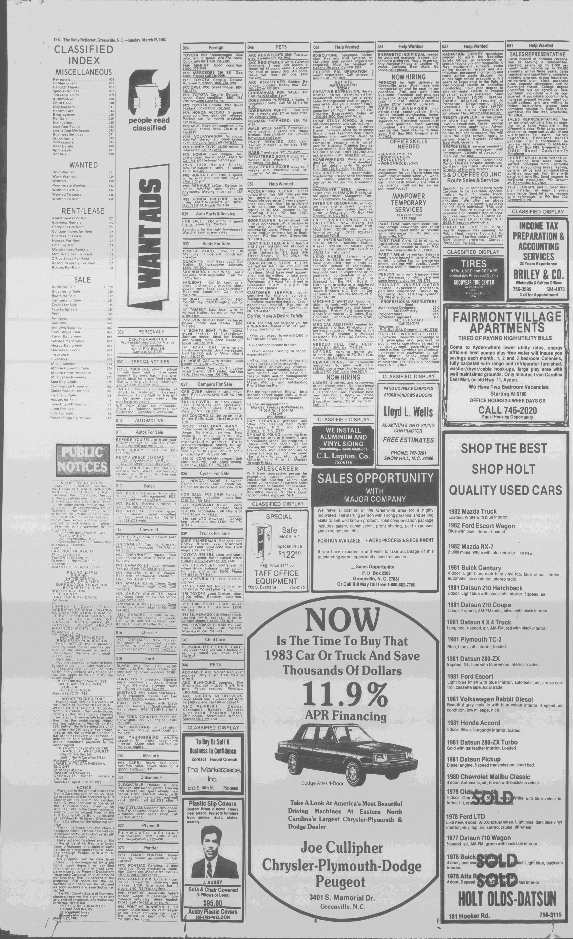 NO. 73 GREENVILLE, N.C. SUNDAY MORNING, MARCH 27, 1983 136 PAGES10 SECTIONS PRICE 50 CENTS