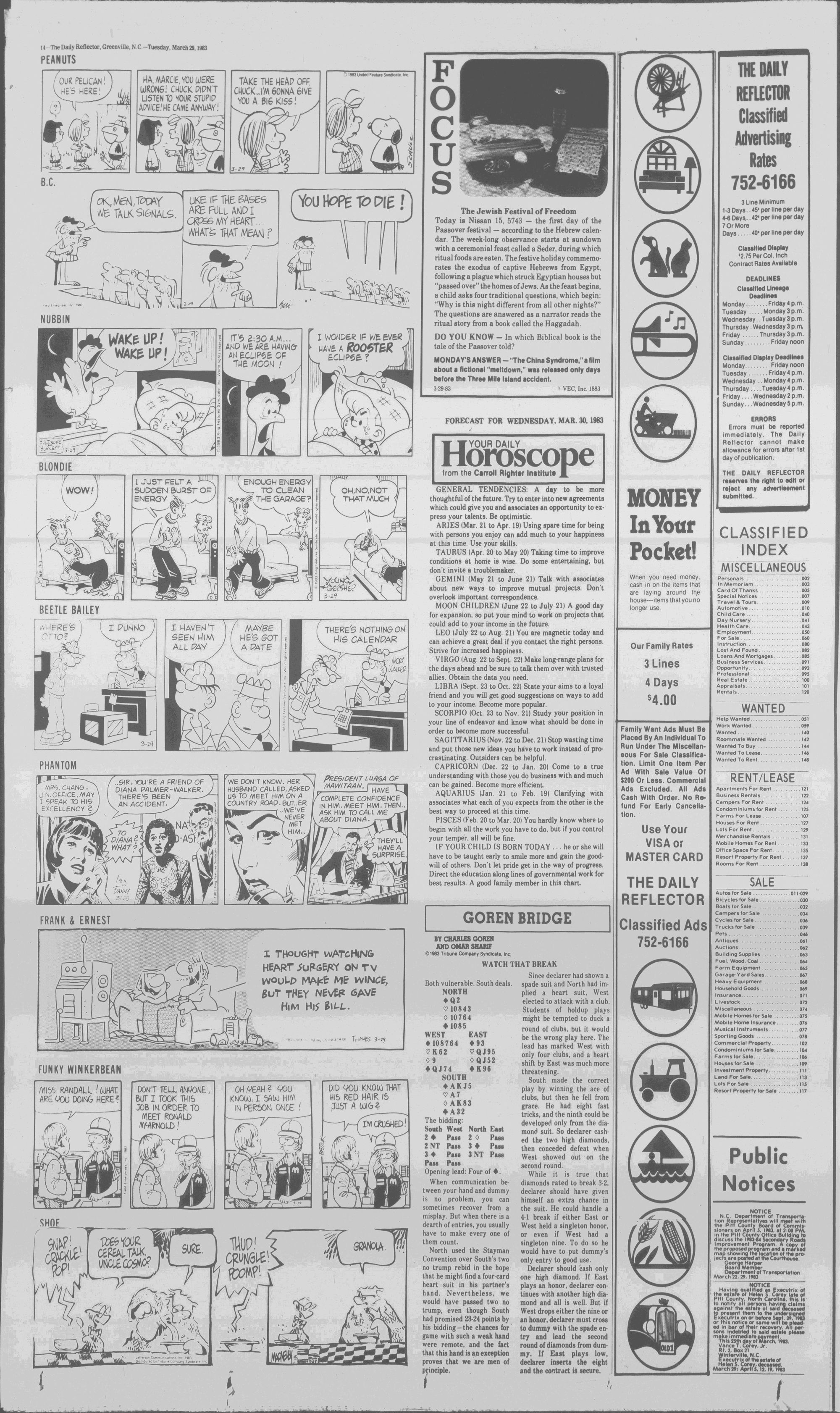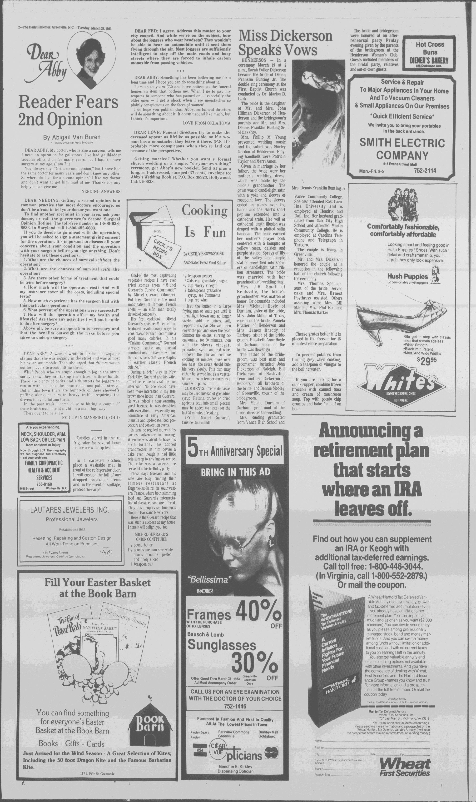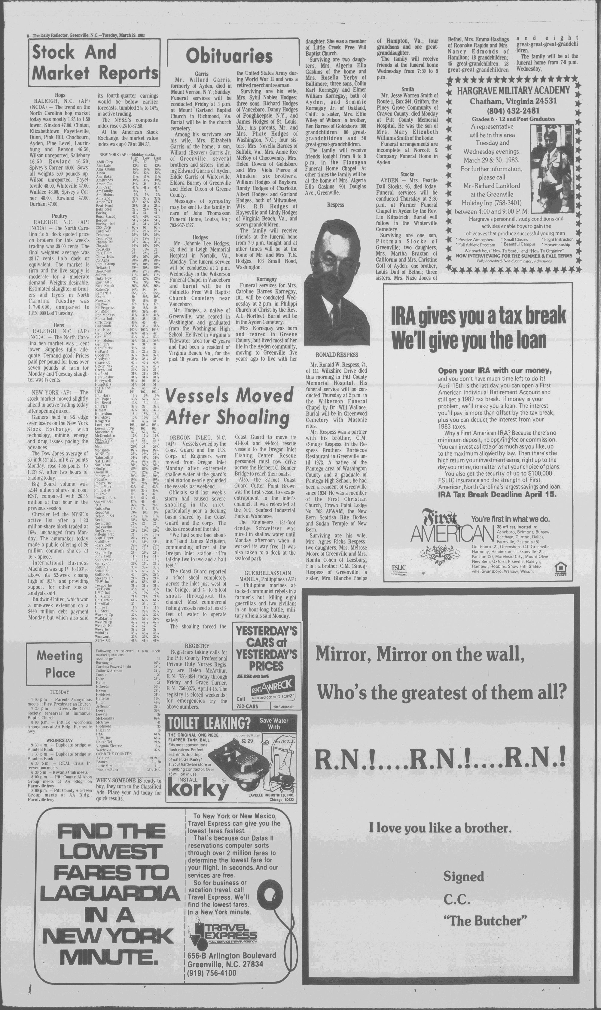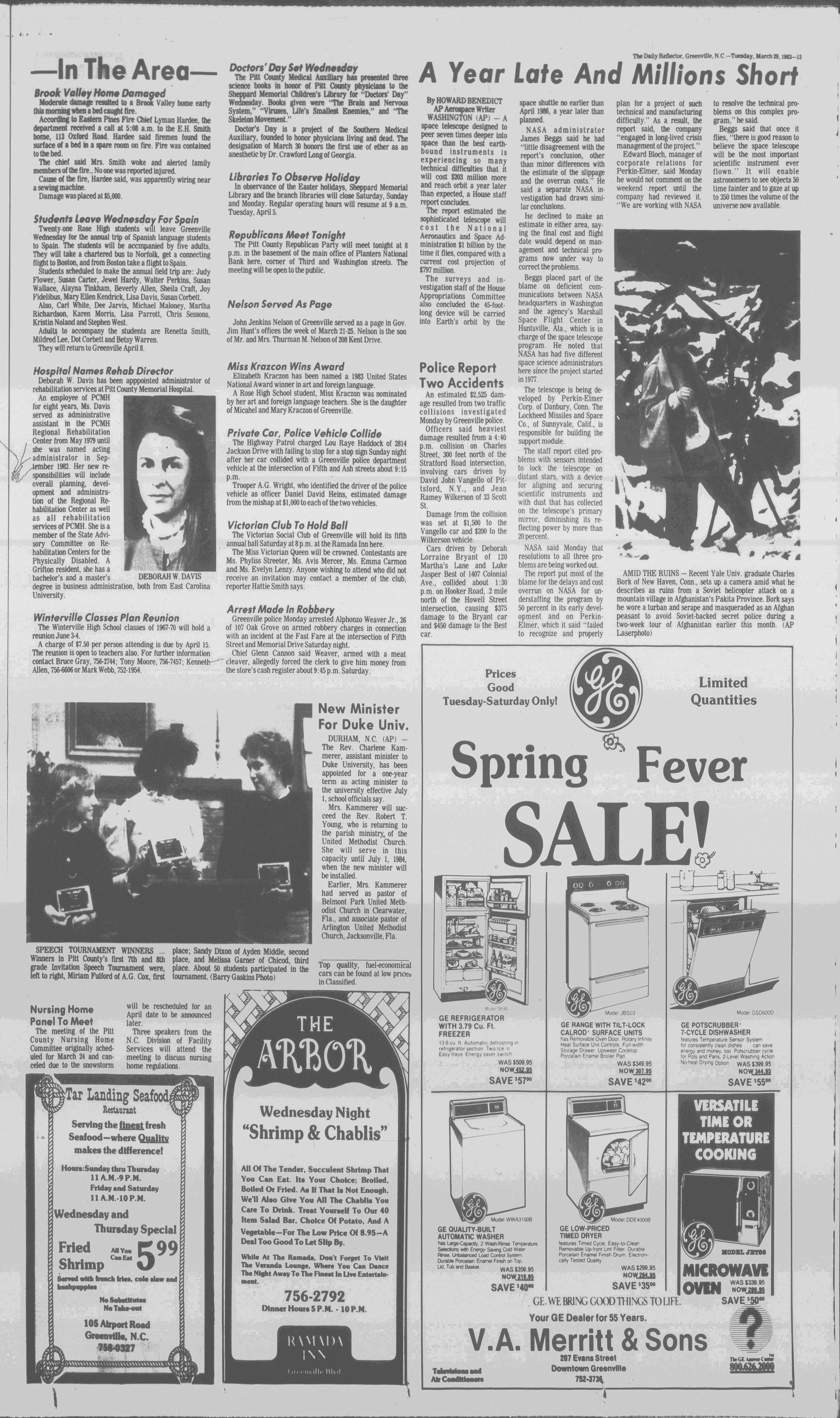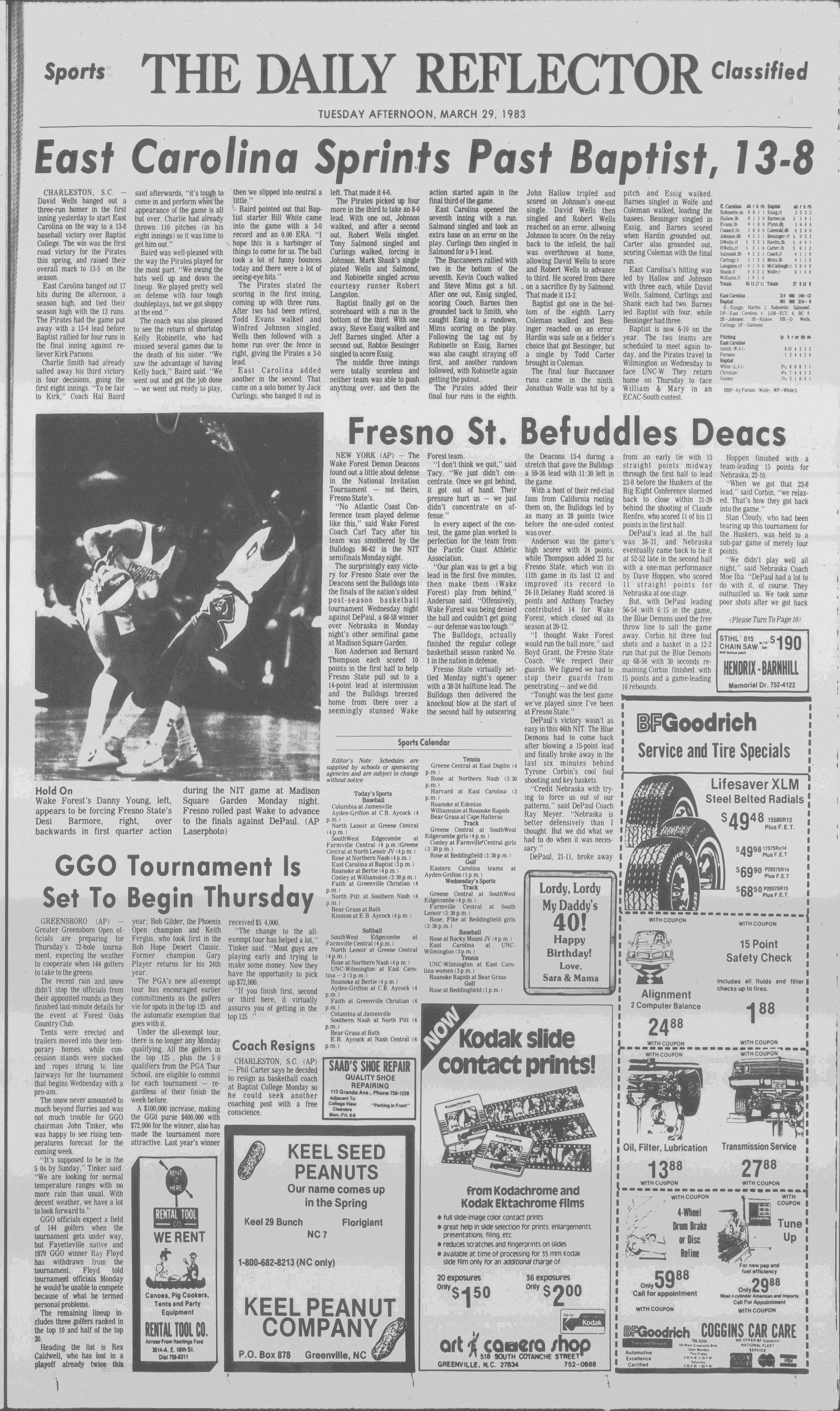 The newspaper was established in 1882, and was originally named the Eastern Reflector. It was founded by Julian Whichard and David Jordan with equipment they purchased from The Greenville Express. On December 10, 1894, it adopted the name The Reflector and began publishing every day. Cox Newspapers acquired The Daily Reflector in 1996. Creator: Daily Reflector (Greenville, N.C.) - 30404