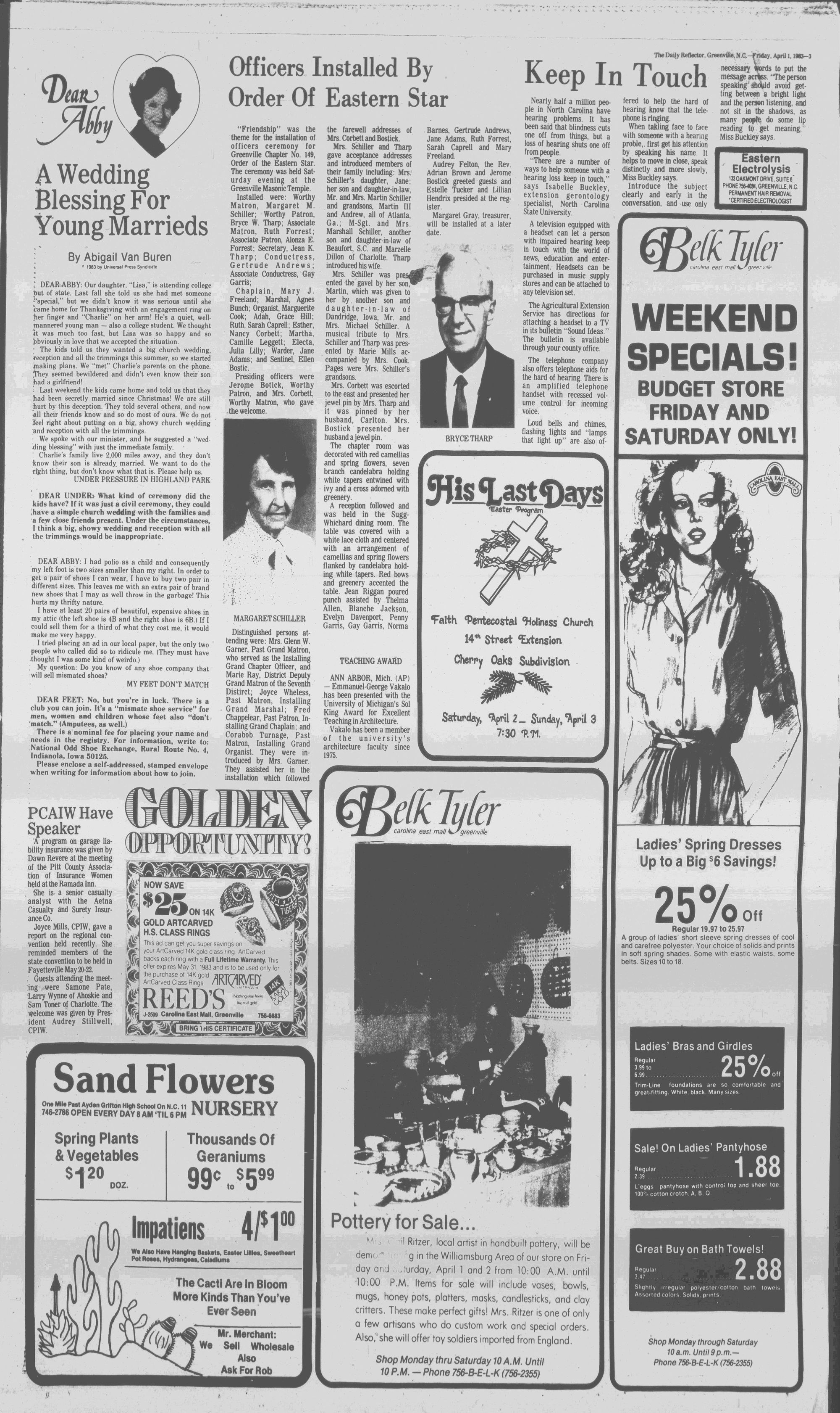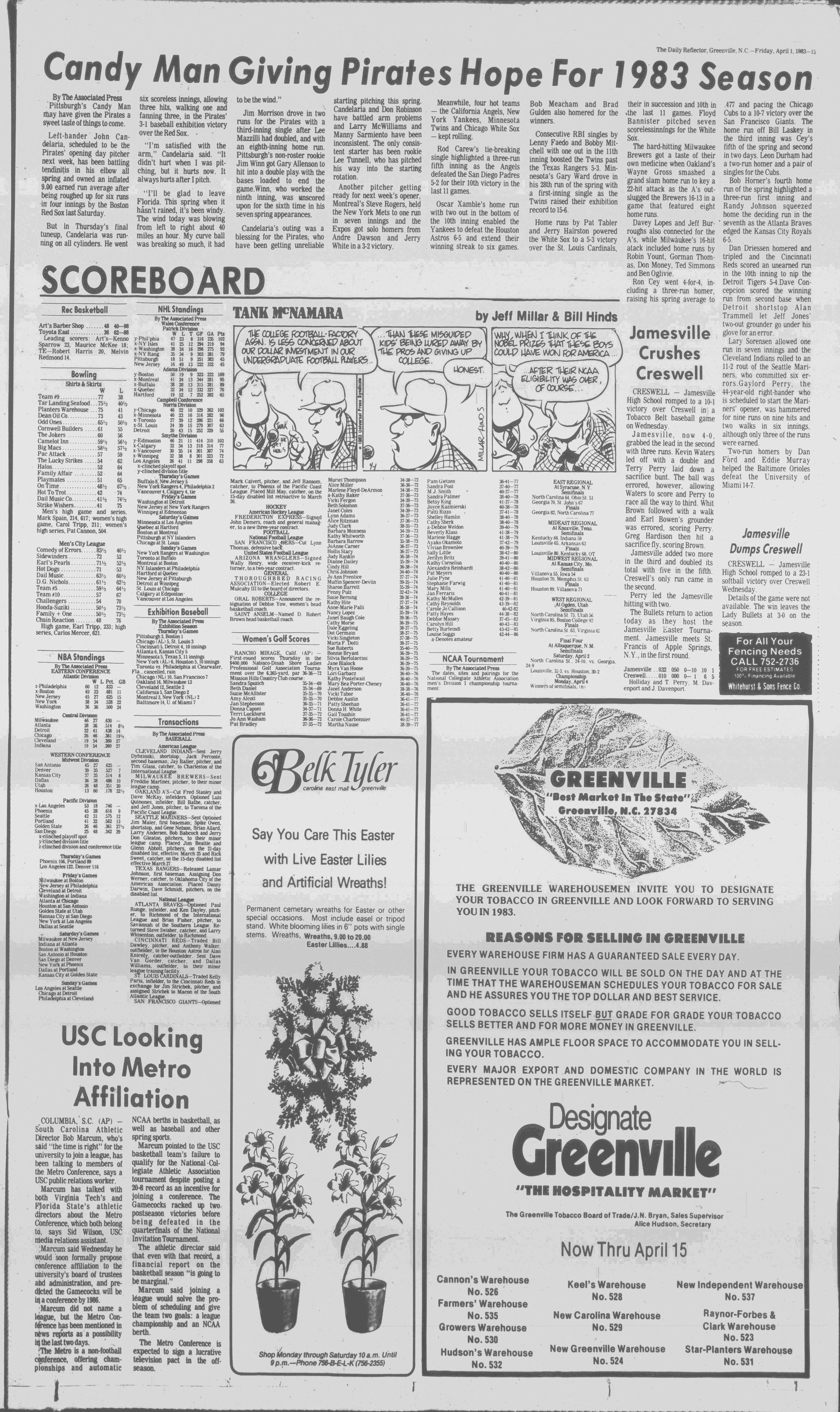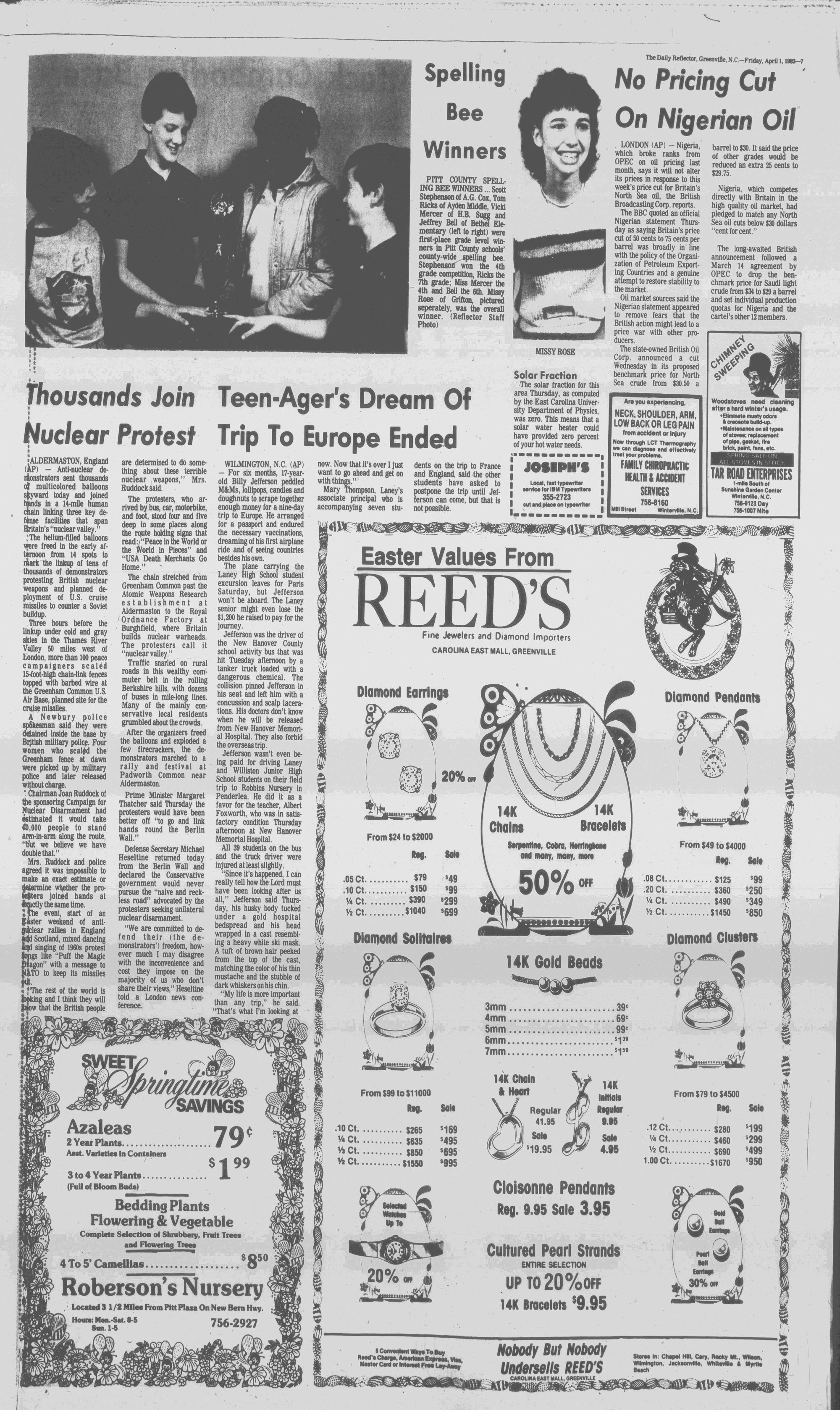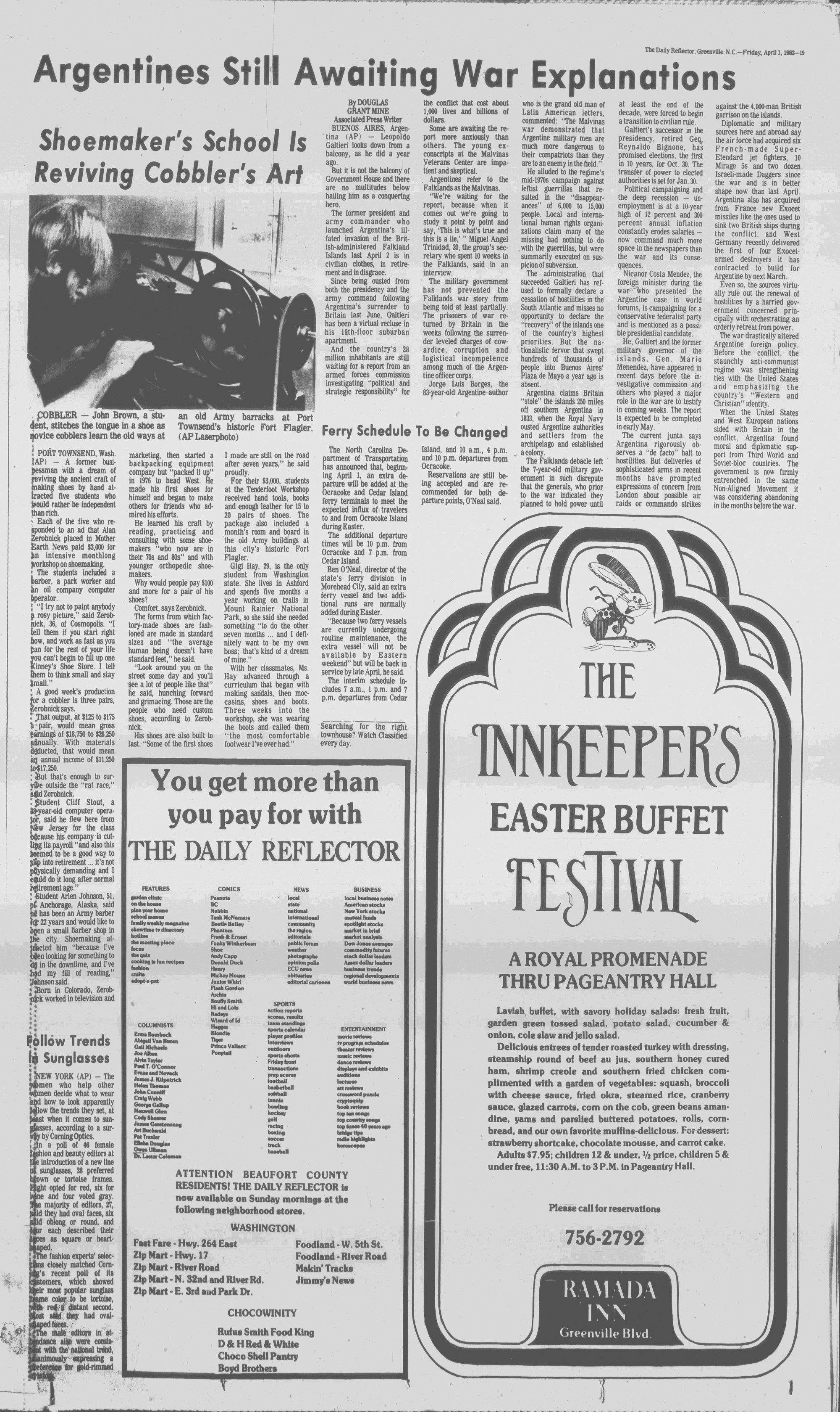The newspaper was established in 1882, and was originally named the Eastern Reflector. It was founded by Julian Whichard and David Jordan with equipment they purchased from The Greenville Express. On December 10, 1894, it adopted the name The Reflector and began publishing every day. Cox Newspapers acquired The Daily Reflector in 1996. Creator: Daily Reflector (Greenville, N.C.) - 30407