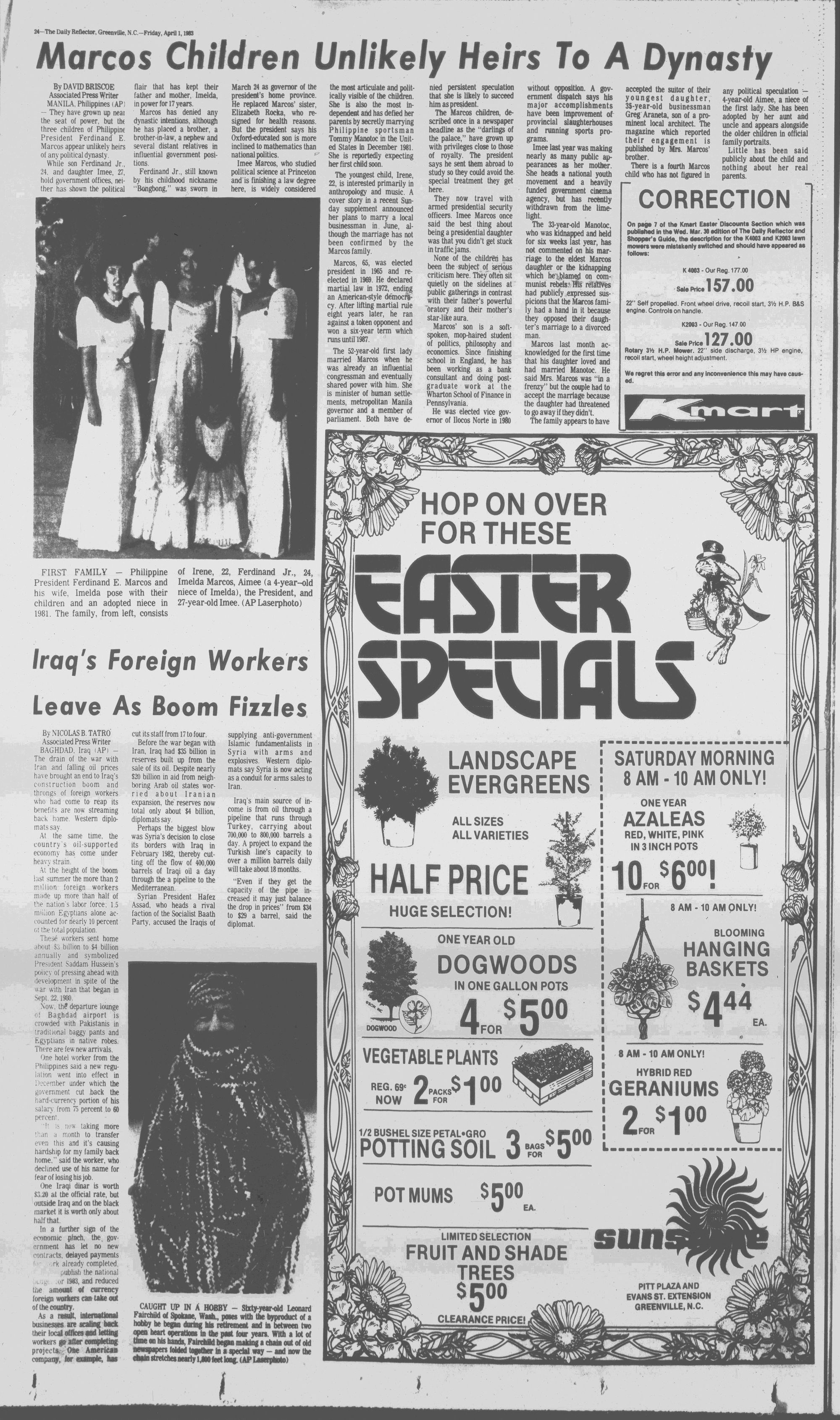 The youngest child, Irene, 22, is interested primarily in anthropology and music. A cover story in a recent Sunday supplement announced her plans to marry a local businessman in June, although the marriage has not been confirmed by the Marcos family.