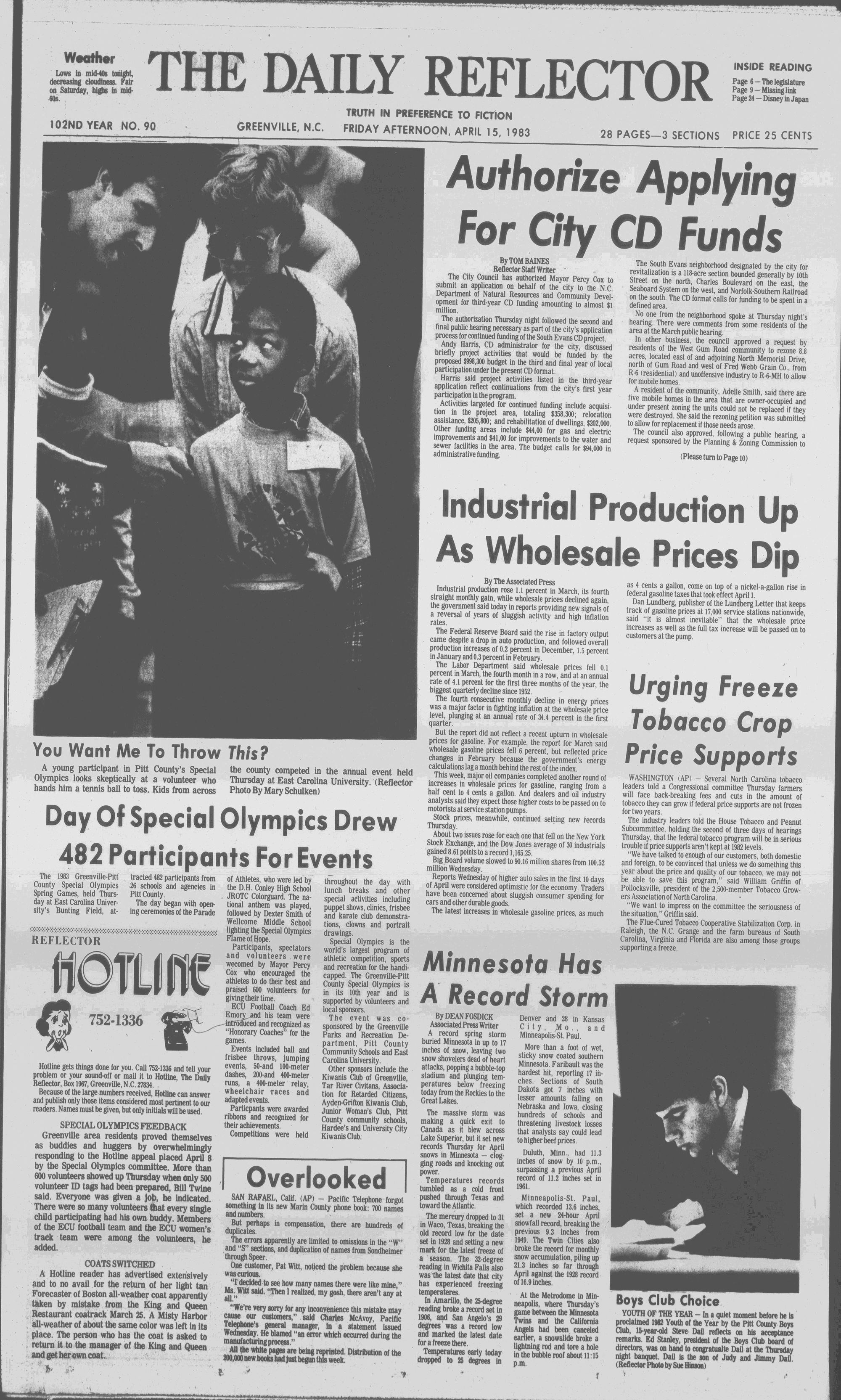 The 1983 Greenville-Pitt County Special Olympics Spring Games, held Thursday at East Carolina Universitys Bunting Field, at