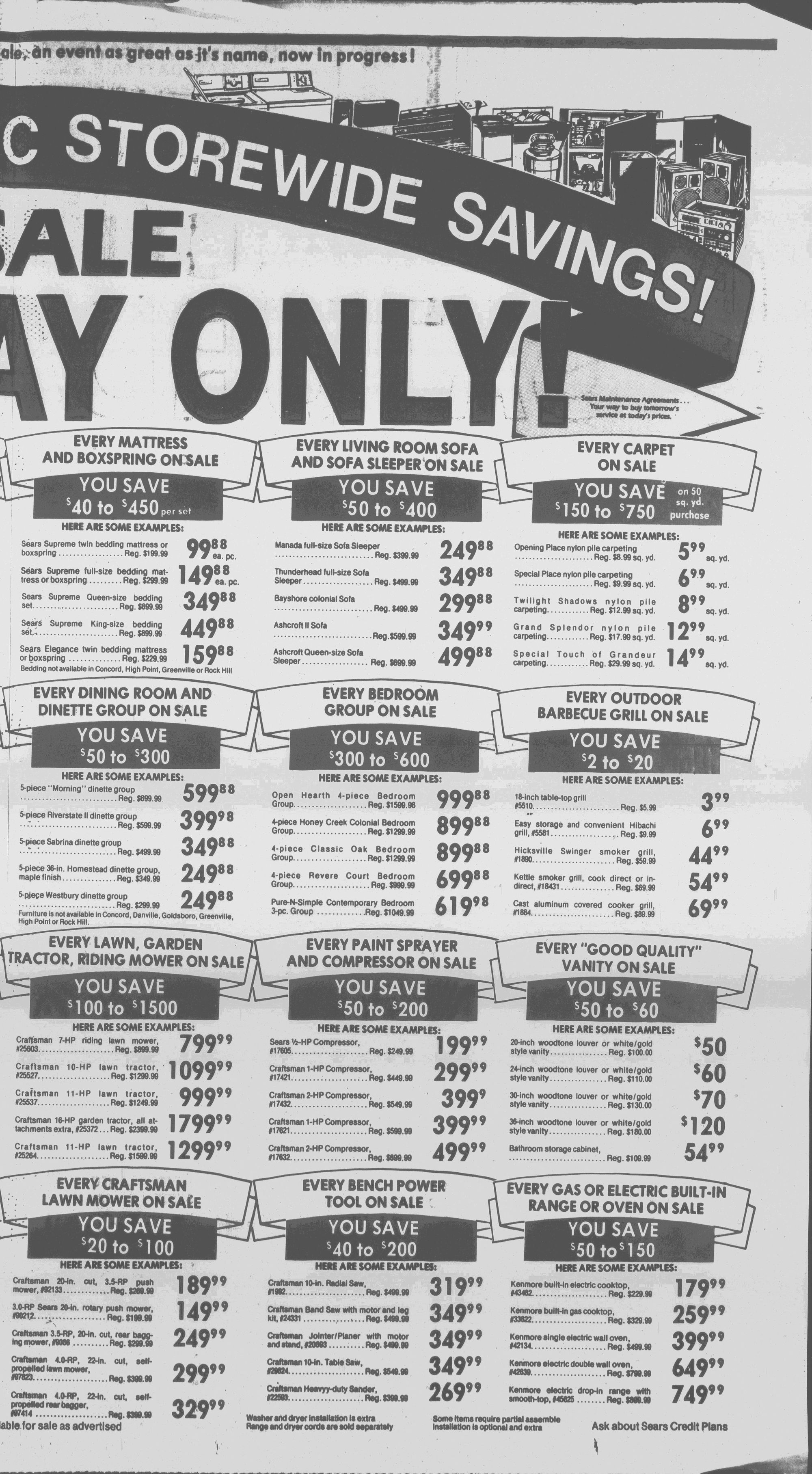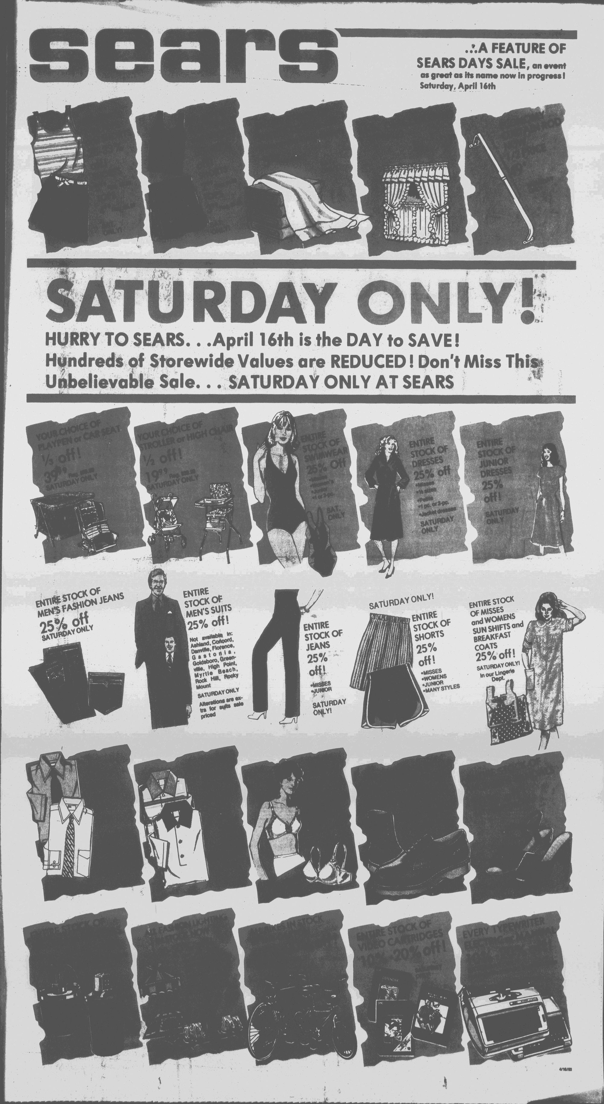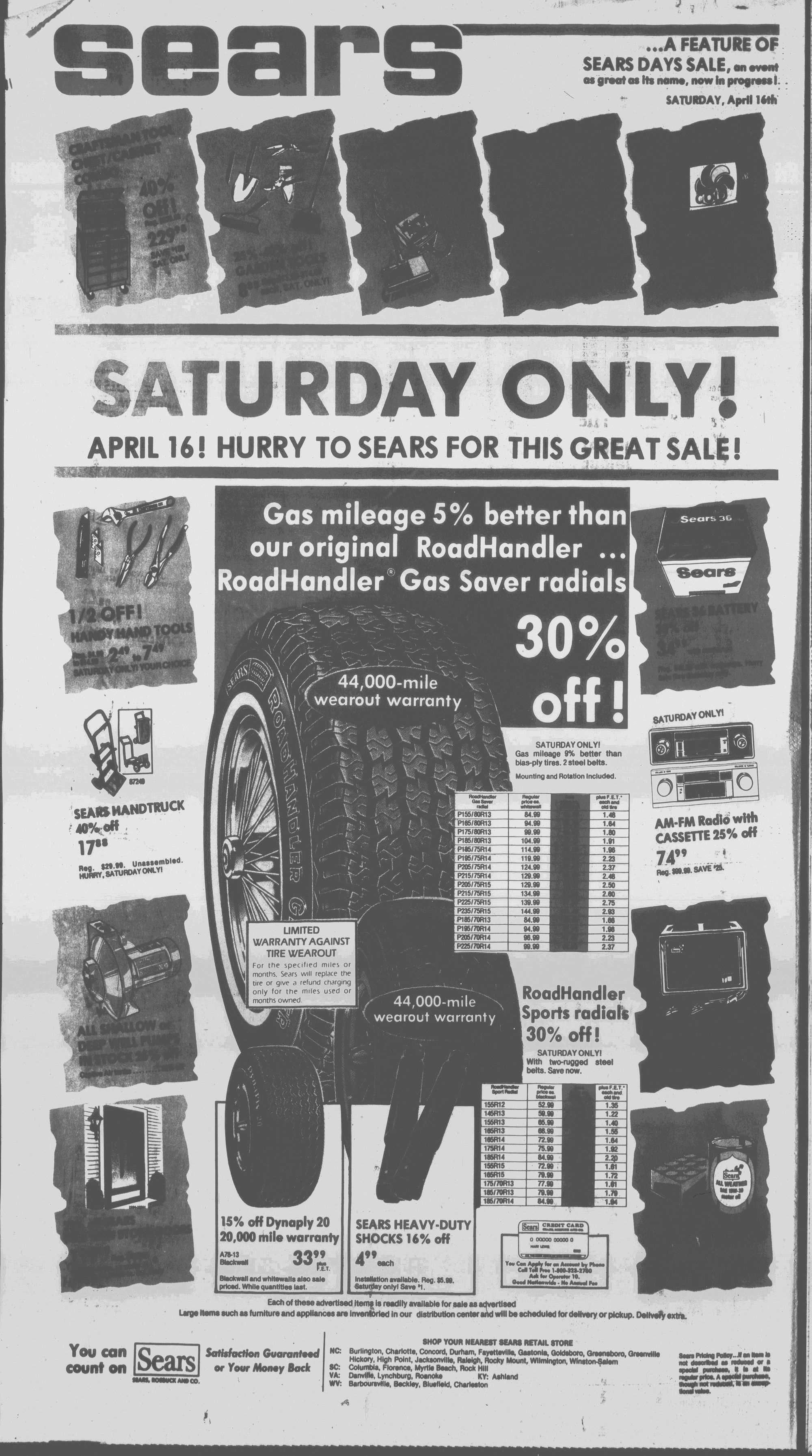 APRIL 16! HURRY TO SEARS FOR THIS GREAT SAL1 I,..........IEMh Of these advertlaed ttami is riMlily vailabit for Ri as ac|vrtiMd Laige Hems such as furniture and appliances are invenlSried in our (UstrttMtion center am wili be scheduled (or delivery or pickup.
