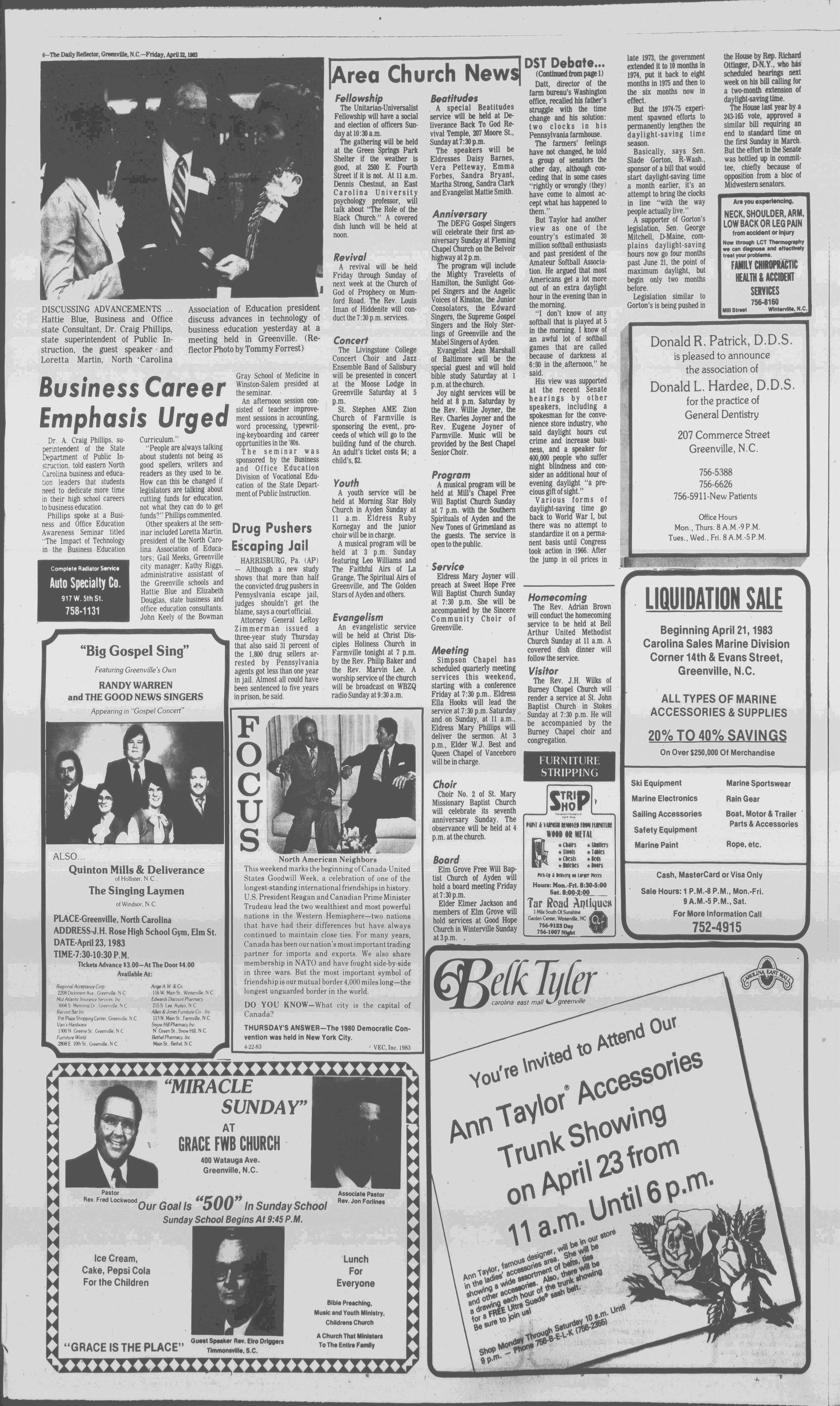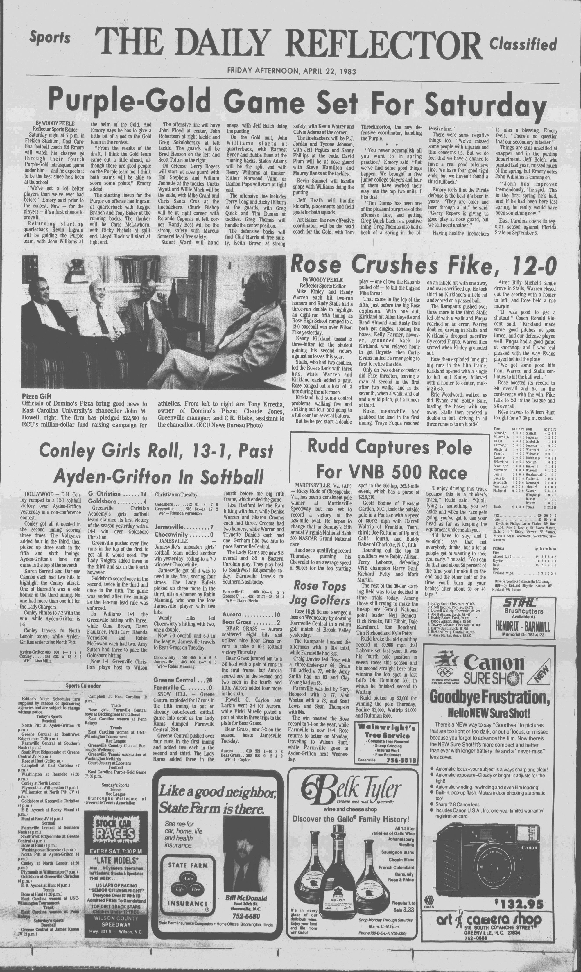 East Carolina holds Its Annual Purple - Gold Football Game Saturday night, winding up Spring practice. Page 13.