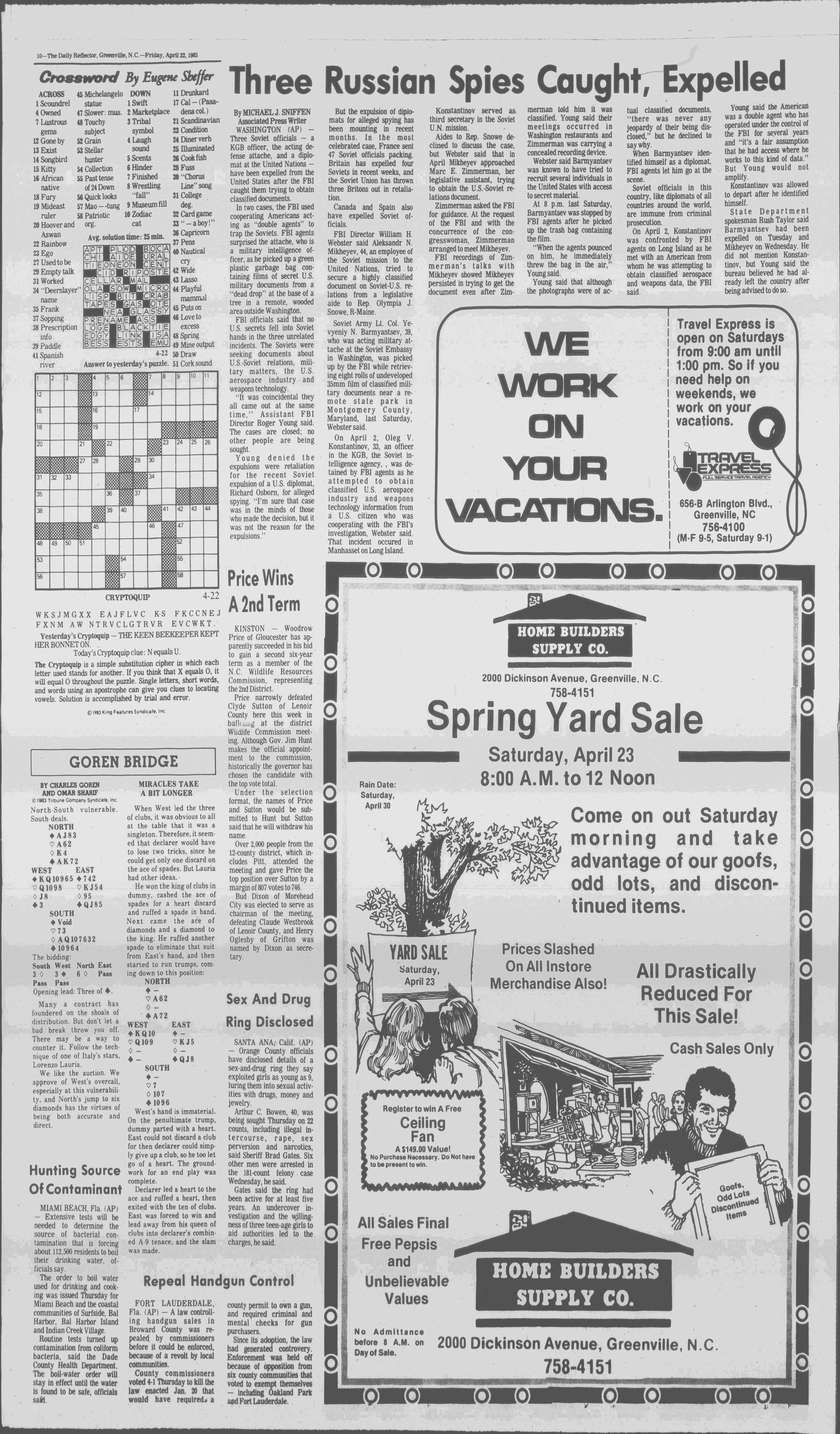 Page 9-Area items Page 10-Spies expelled Page 12-Obituaries