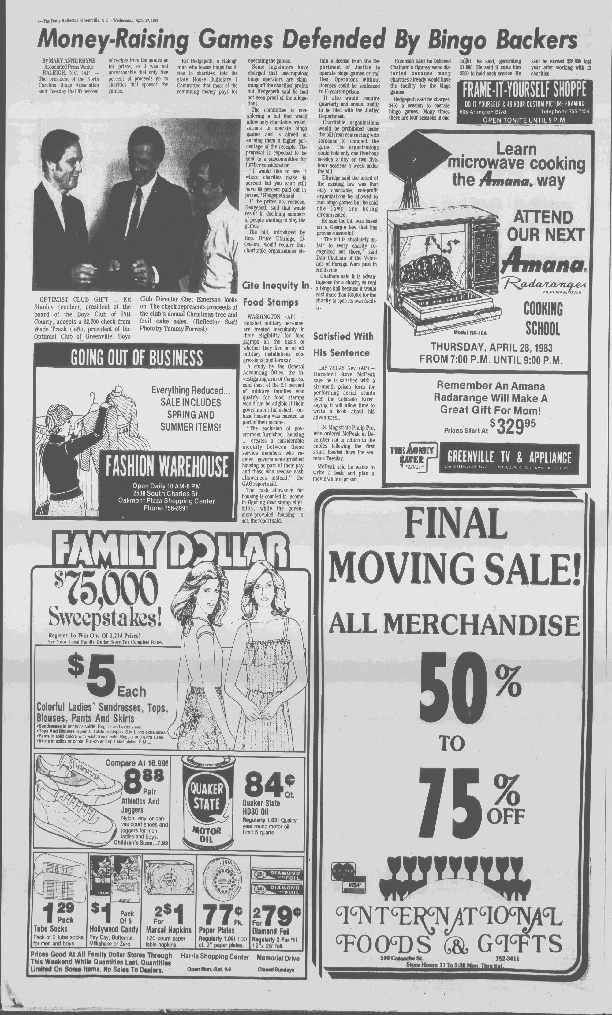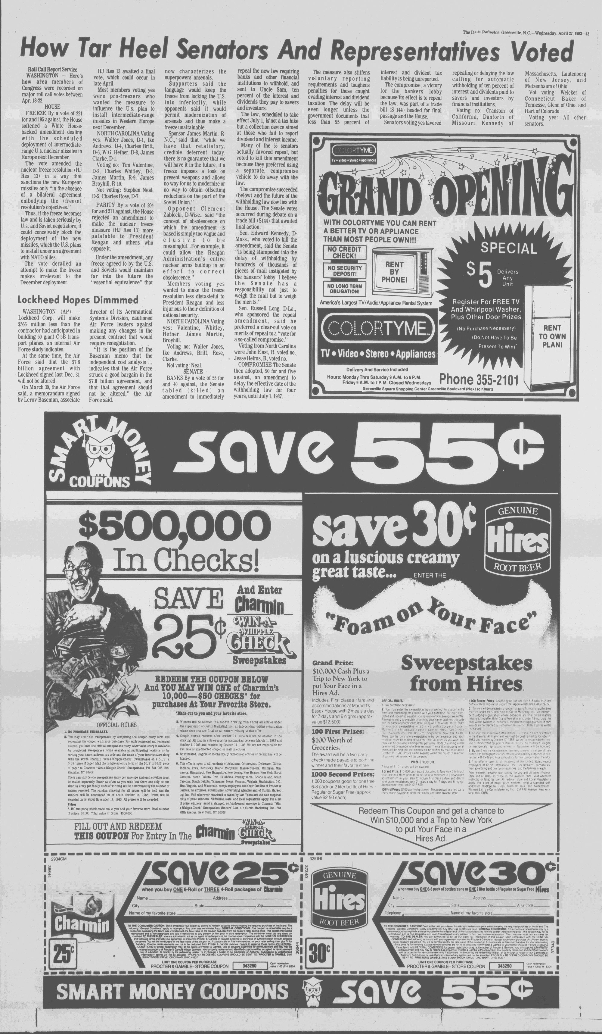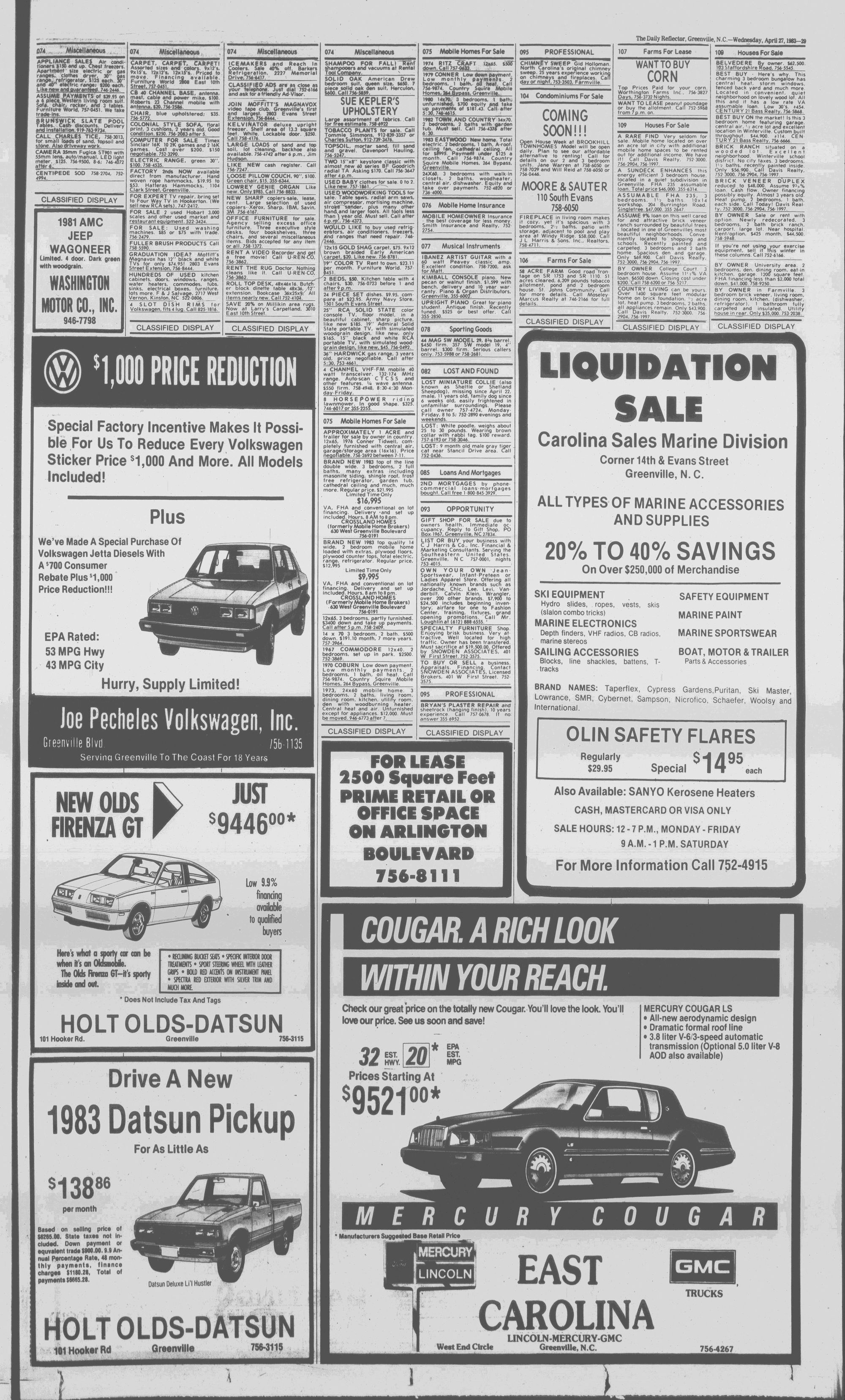 102NDYEAR NO. 100TRUTH IN PREFERENCE TO FICTION GREENVILLE, N.C. WEDNESDAY AFTERNOON, APRIL 27, 1983