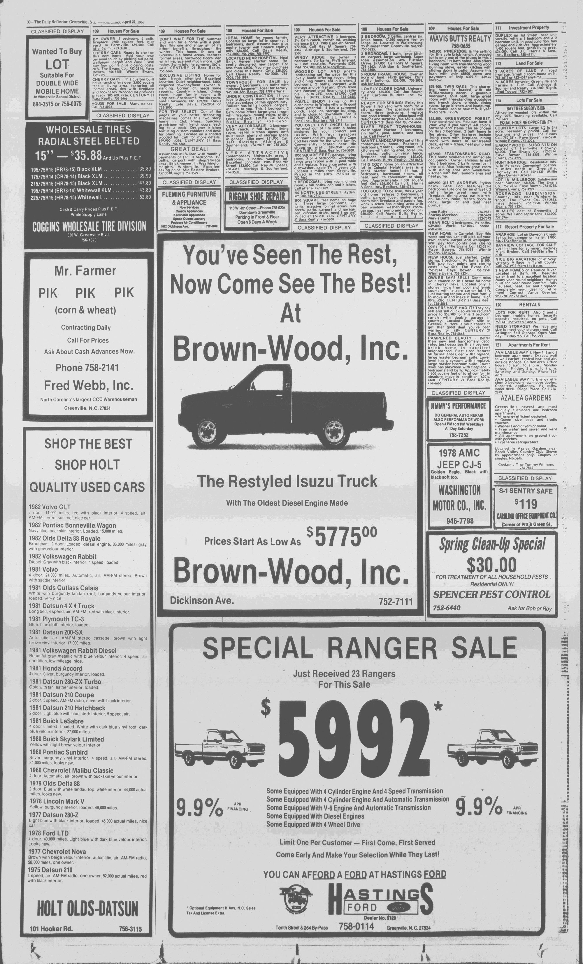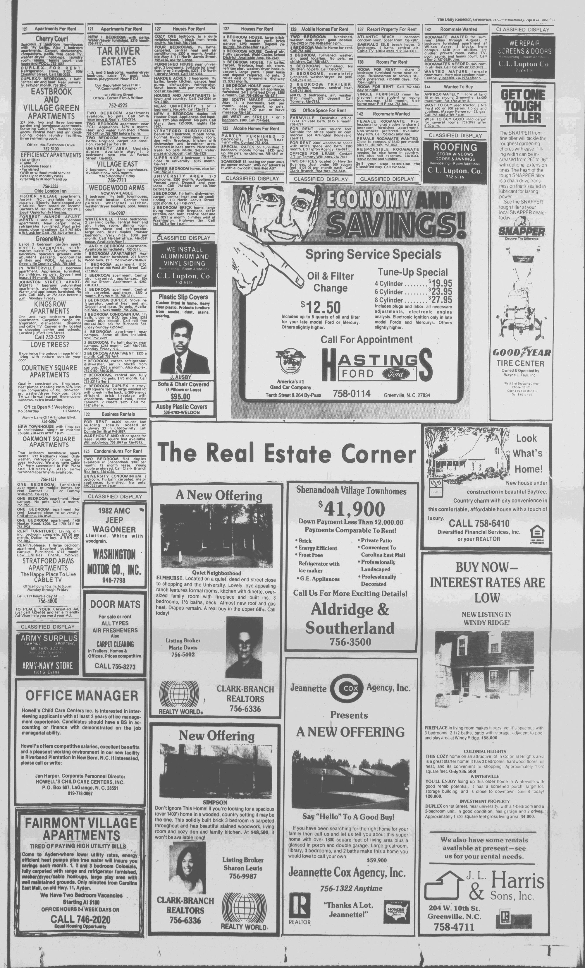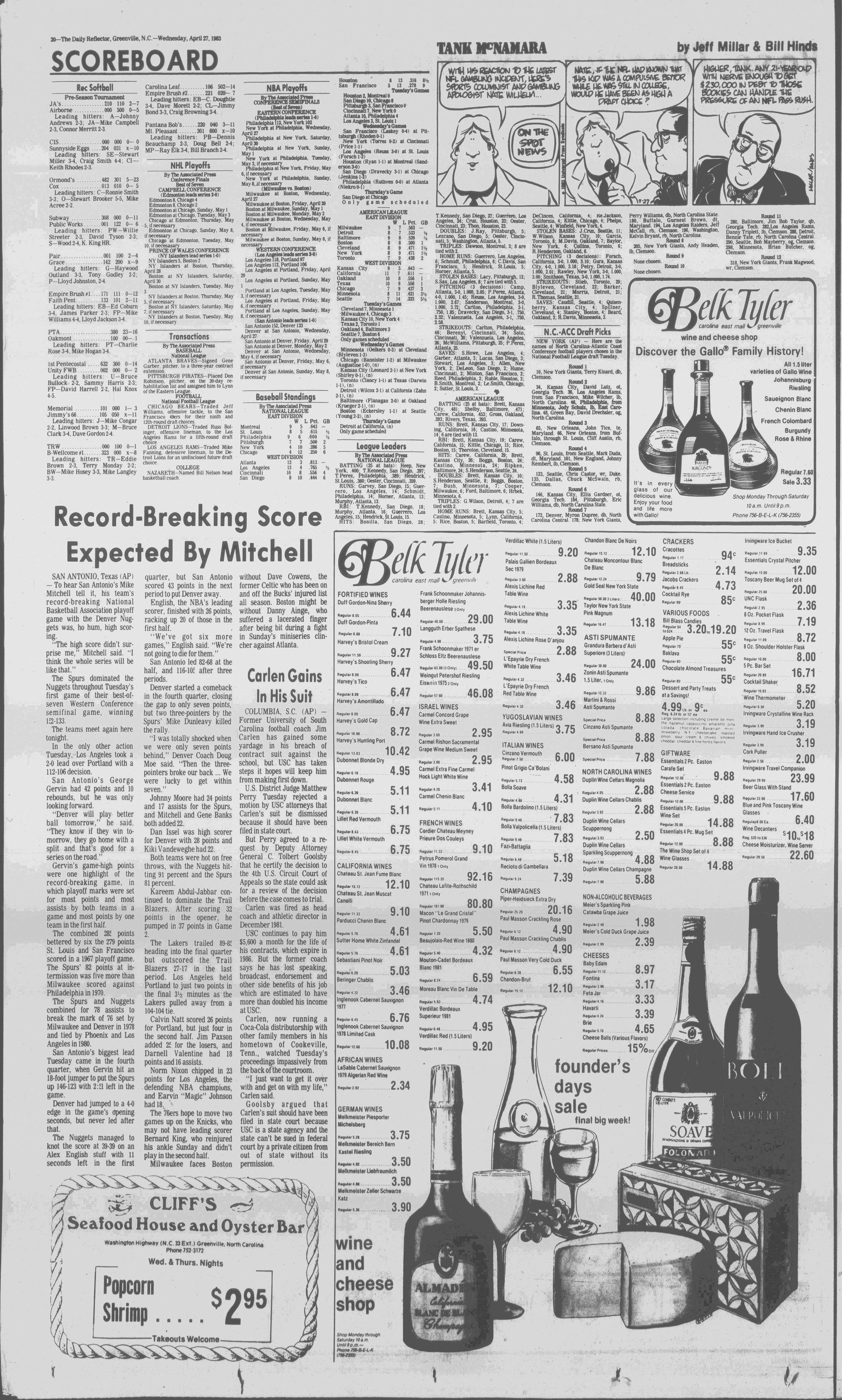 102NDYEAR NO. 100TRUTH IN PREFERENCE TO FICTION GREENVILLE, N.C. WEDNESDAY AFTERNOON, APRIL 27, 1983