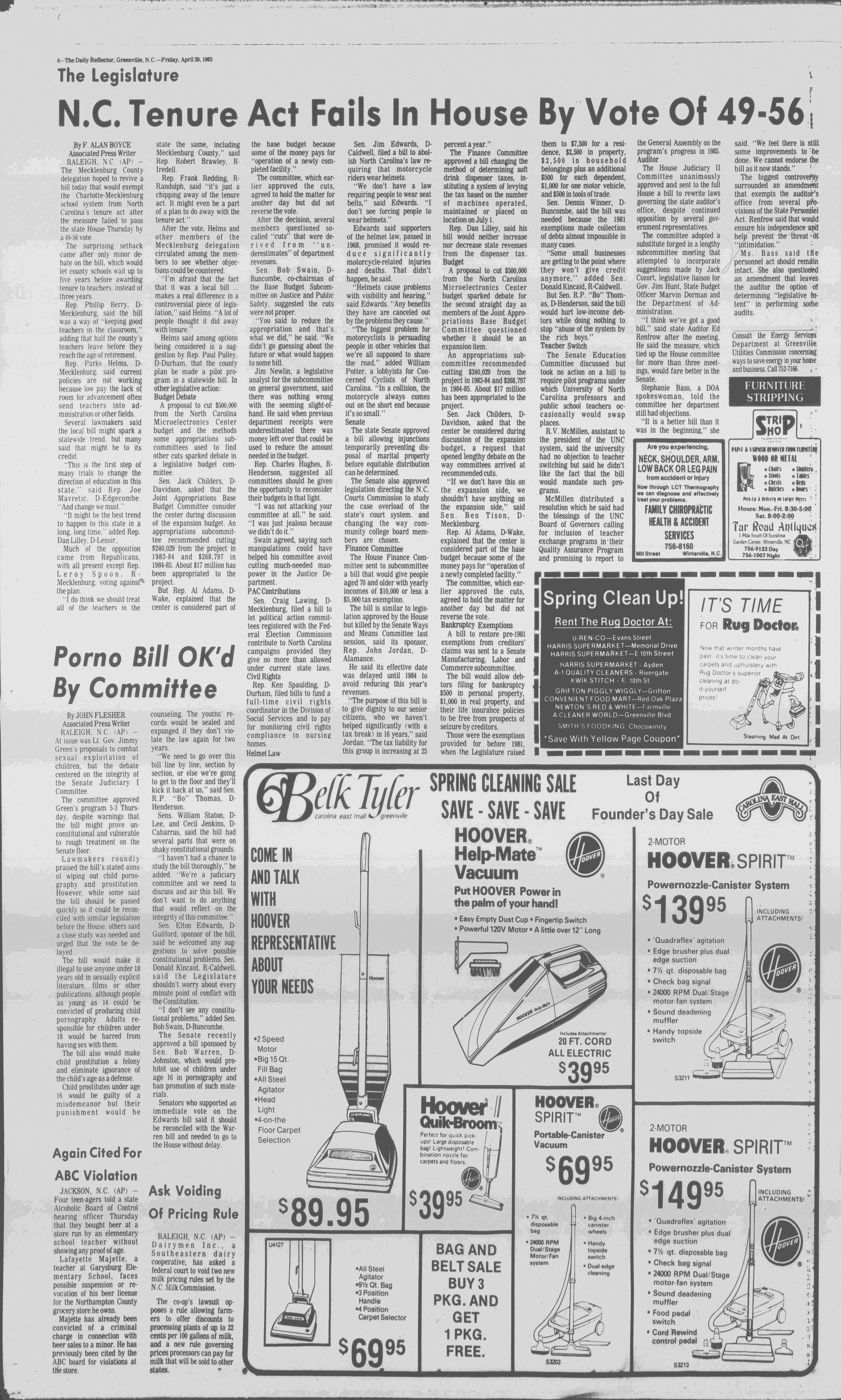 INMI lODAYAfter mirwr debate, Tenure Act given setback in N.C. House; Mecklenburg Countys delegation is working for exemption. (Page 9)( OAAINC; SUNDAY