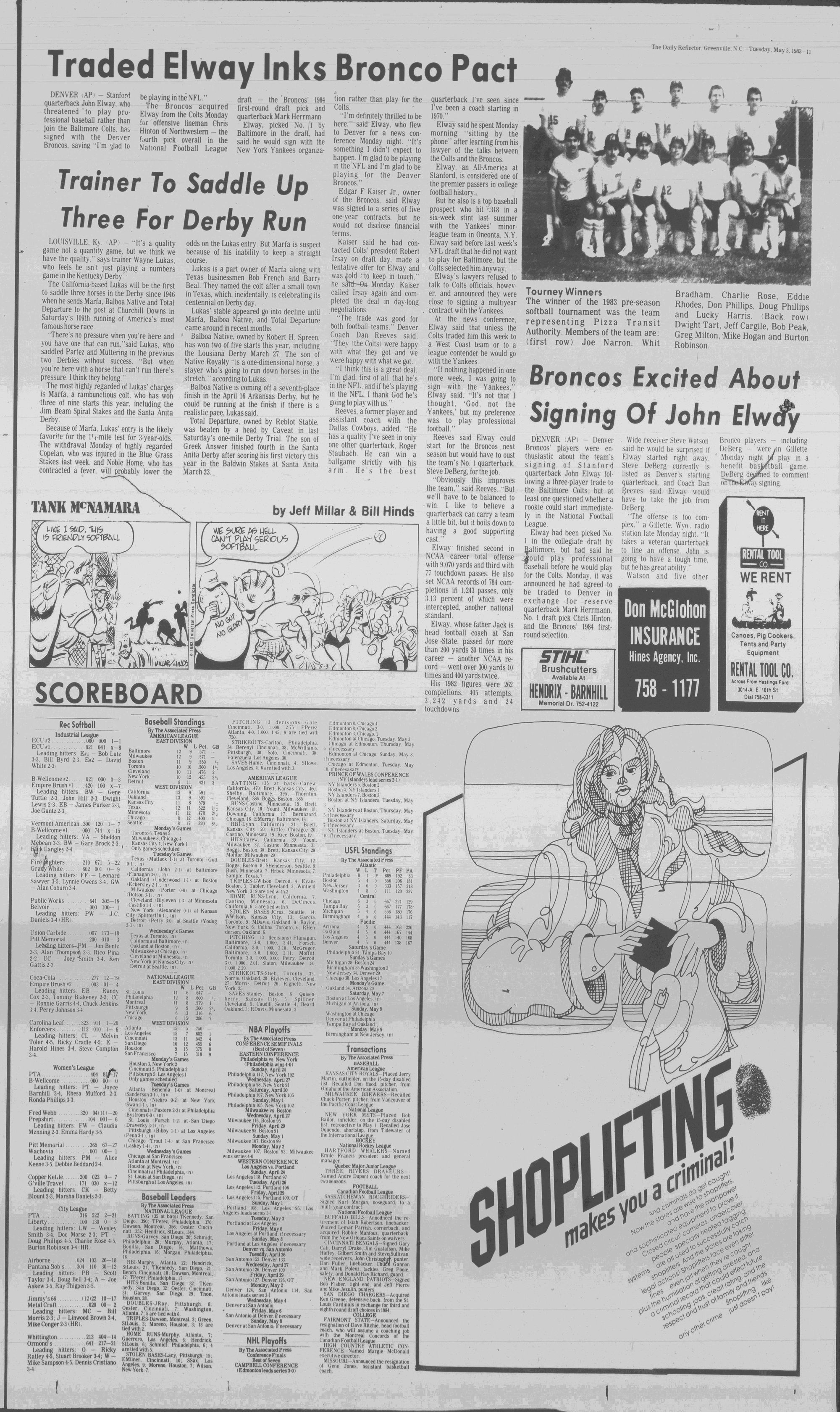 John Elway. was trade?(* by Baltimore to Denver and has signed with the Broncos. (Page 11)THE DAILY REFLECTOR