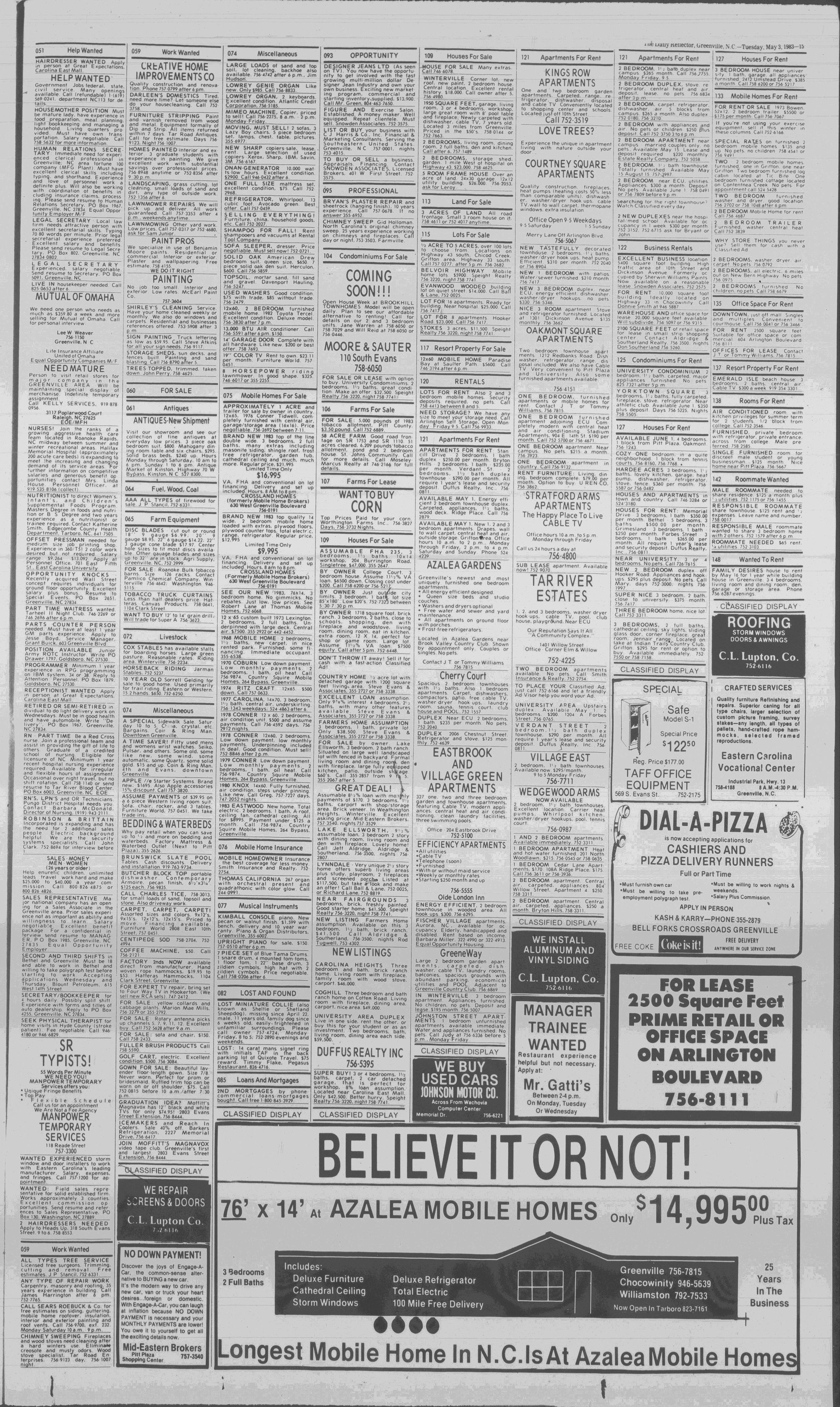 GREENVILLE, N.C. TUESDAY AFTERNOON, MAY 3, 1983