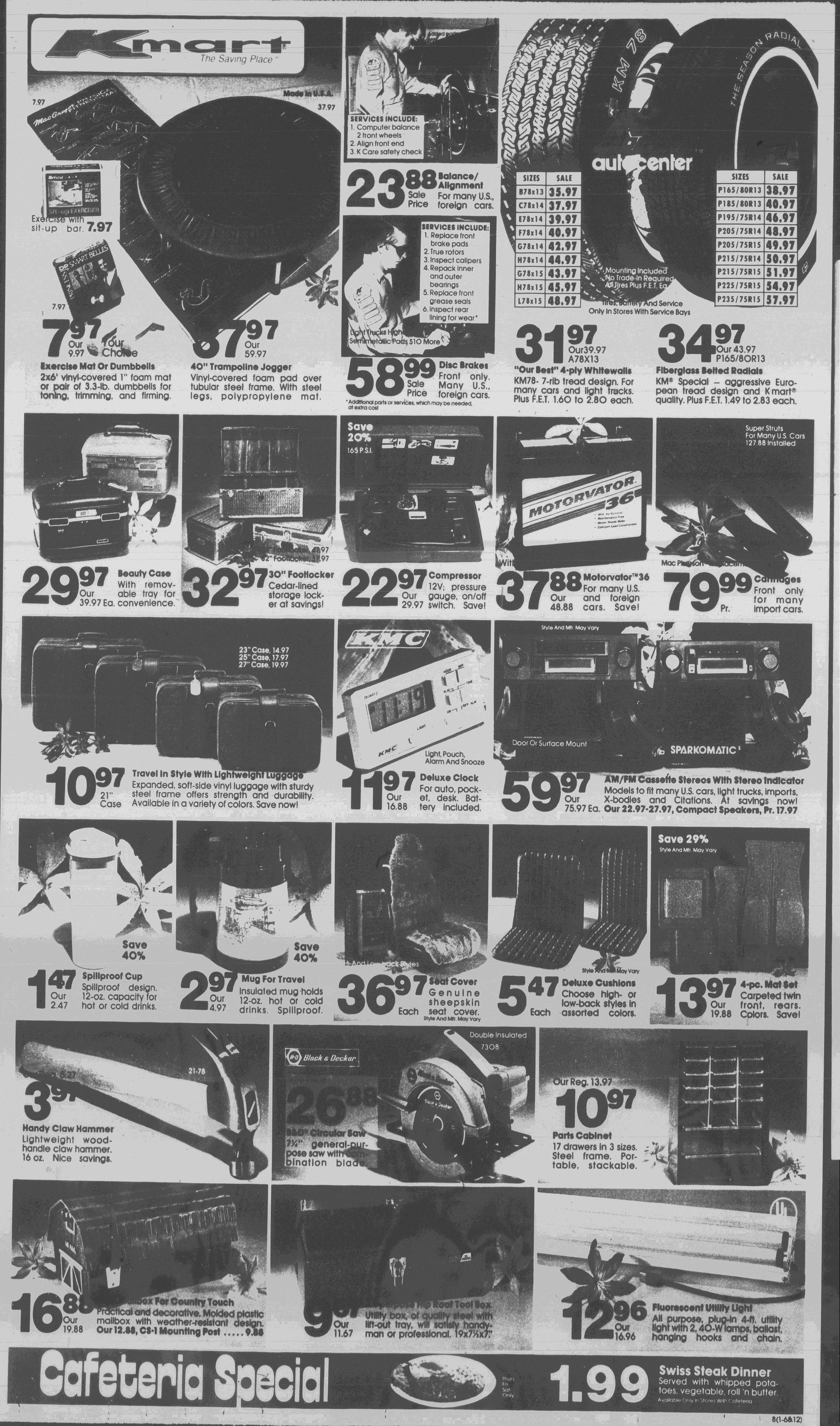 KM Special - aggressive European tread design and Kmart quality. Plus F.E.T. 1.49 to 2.83 each.