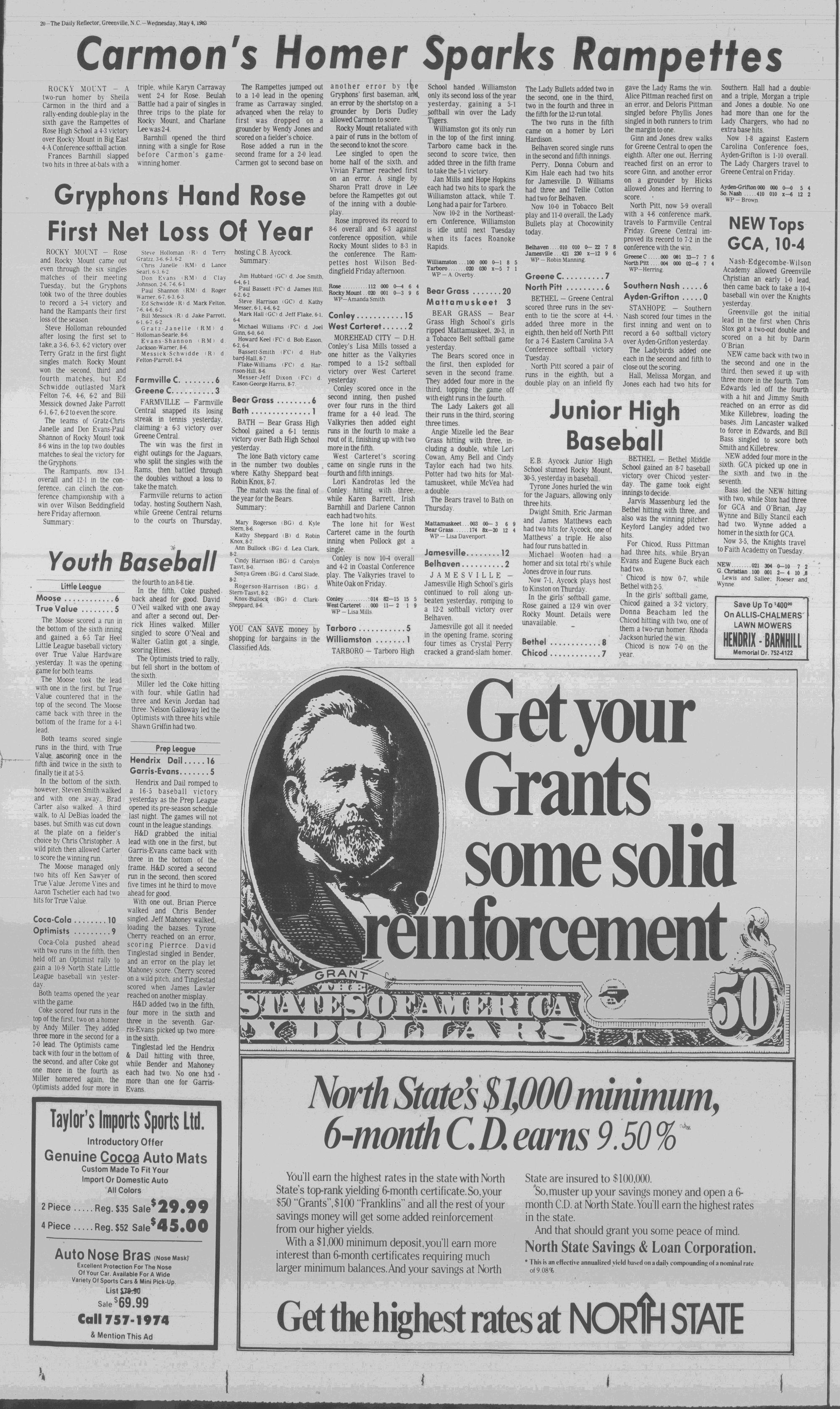 Rose . High School downed Rocky Mount, 12-8, last night to tak^e a firmer grip on the Big East baseball lead. (Page 17)THE DAILY REFLECTOR
