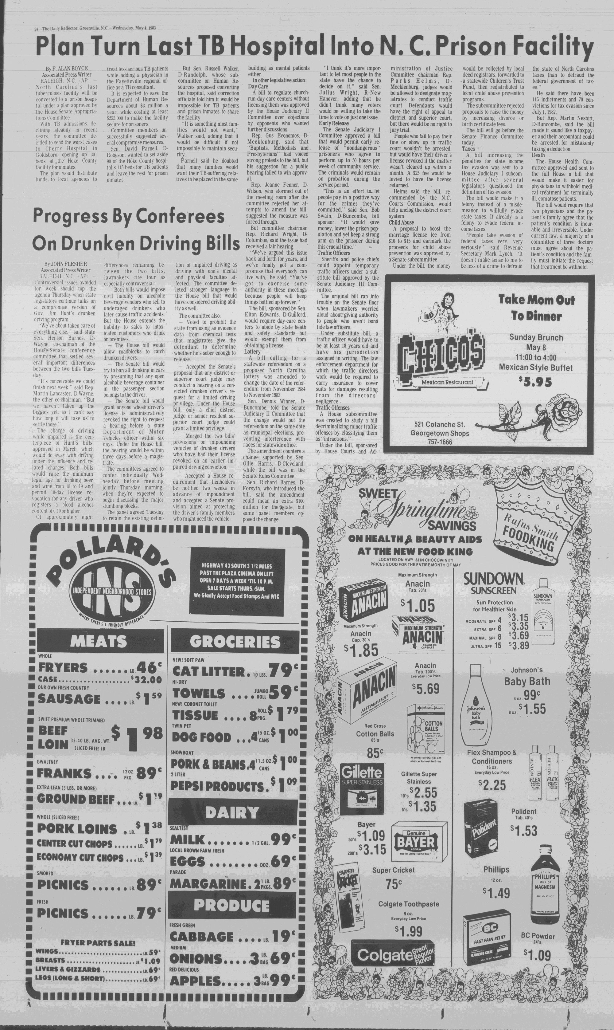 House-Senaf Appropriations Committee plans convert last N.C. tuberculosis facility into a prison hospital (Page 24) ./
