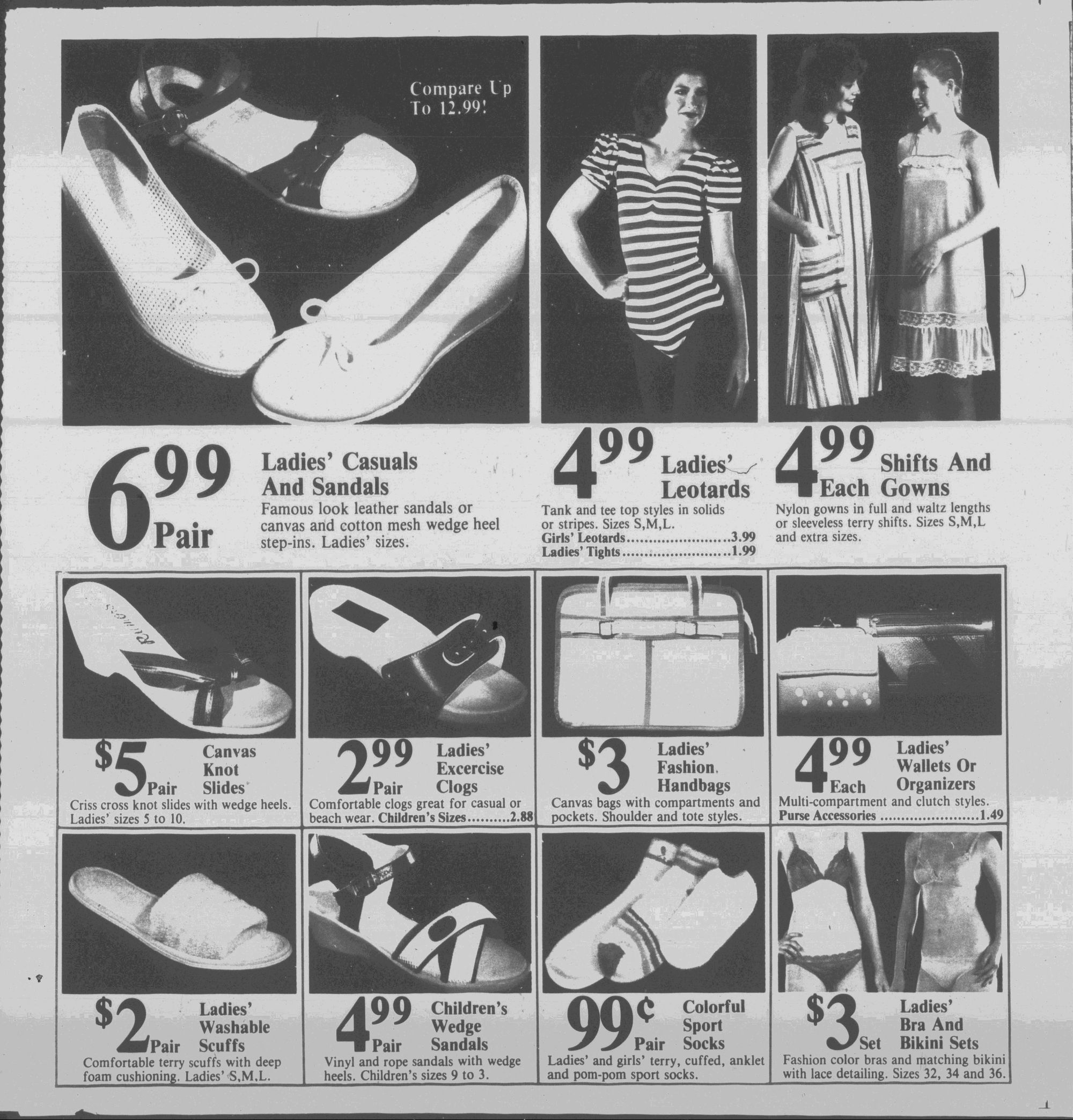 Nylon gowns in full and waltz lengths or sleeveless terry shifts. Sizes S,M,L and extra sizes.