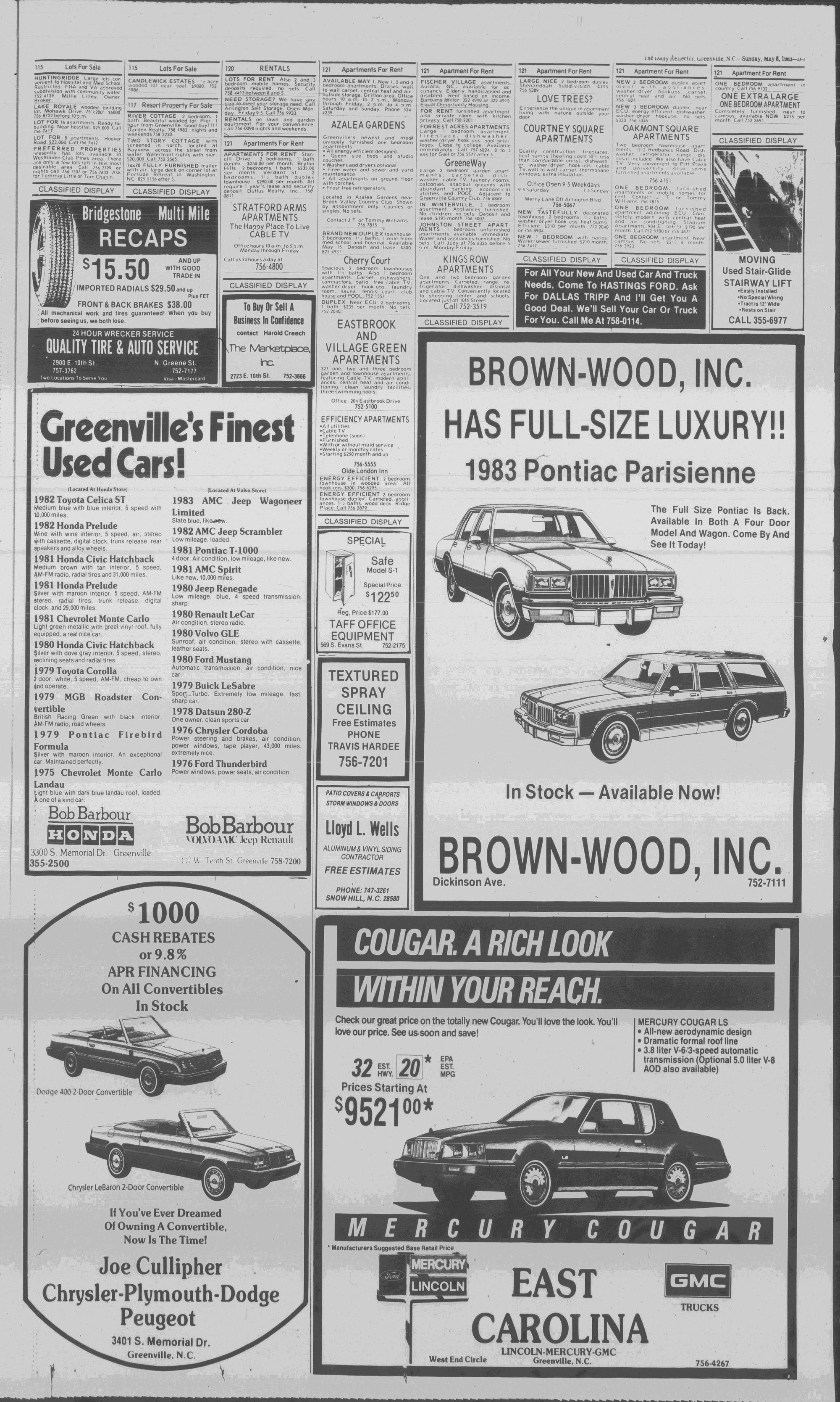 At the Ayden Sport Shop, power boats in the $3,00() to $6,000 range are now the best sellers, while Leon Gibson at the Rag Bag said 18 to 20 foot boats costing about $8,000 seem to be the most popular.