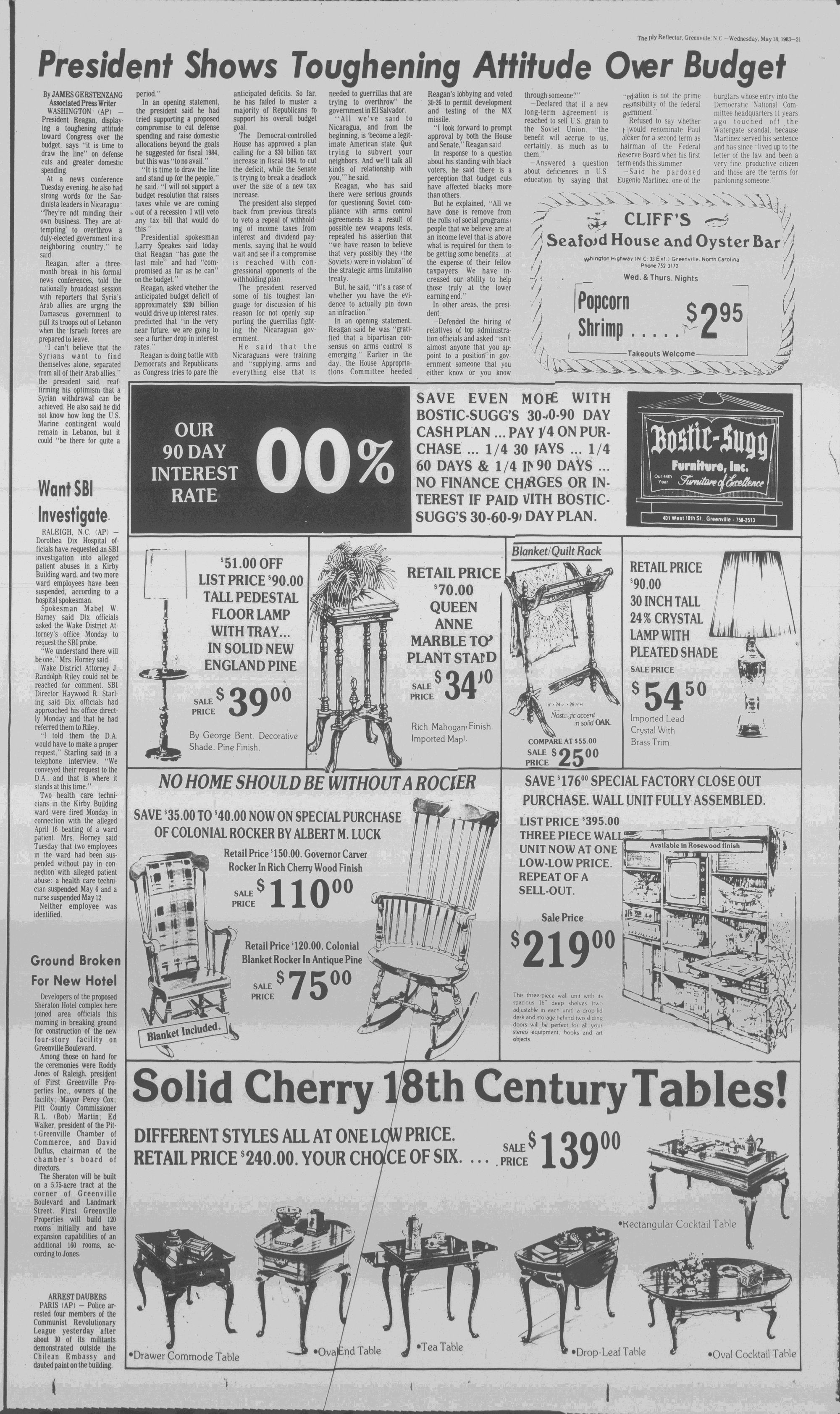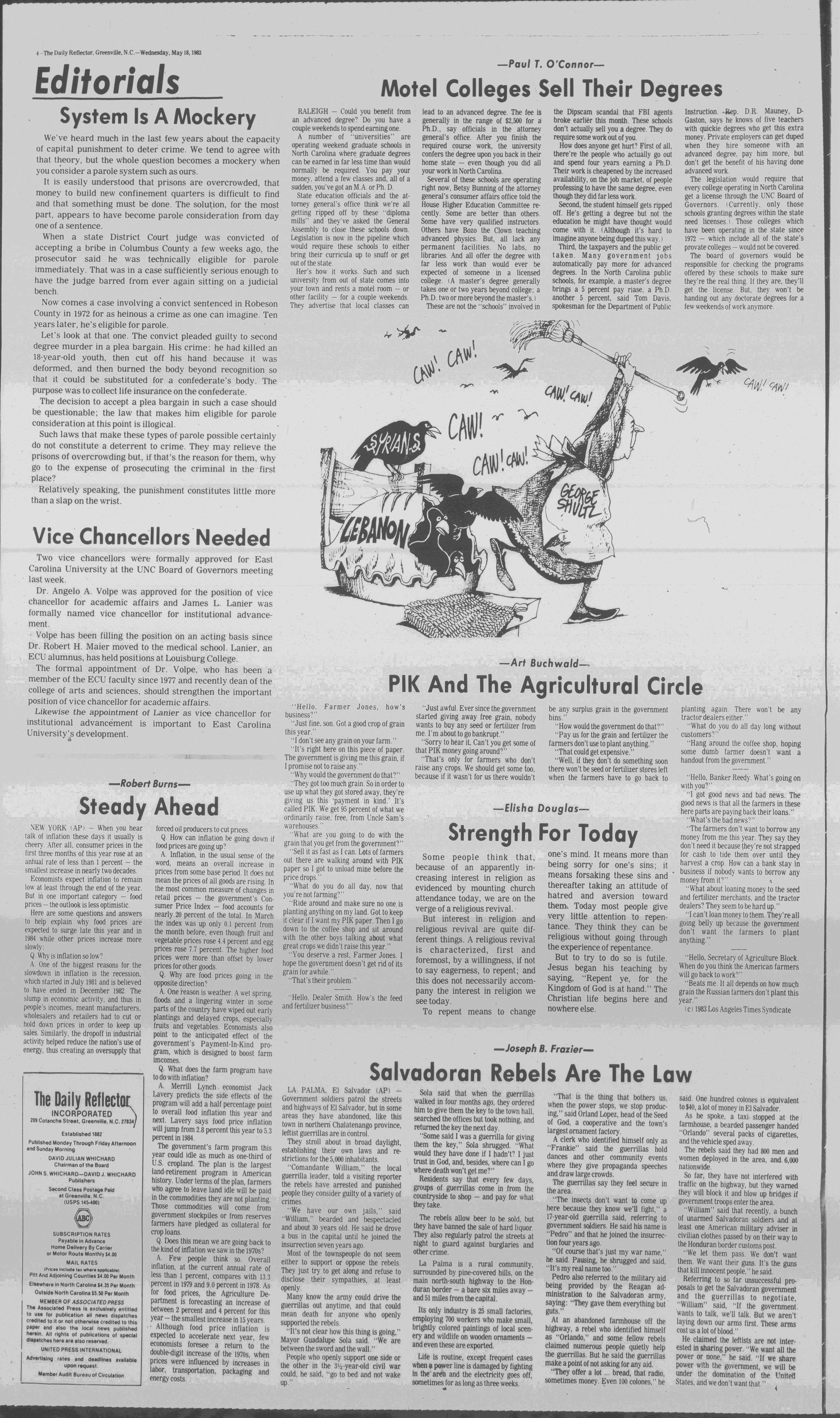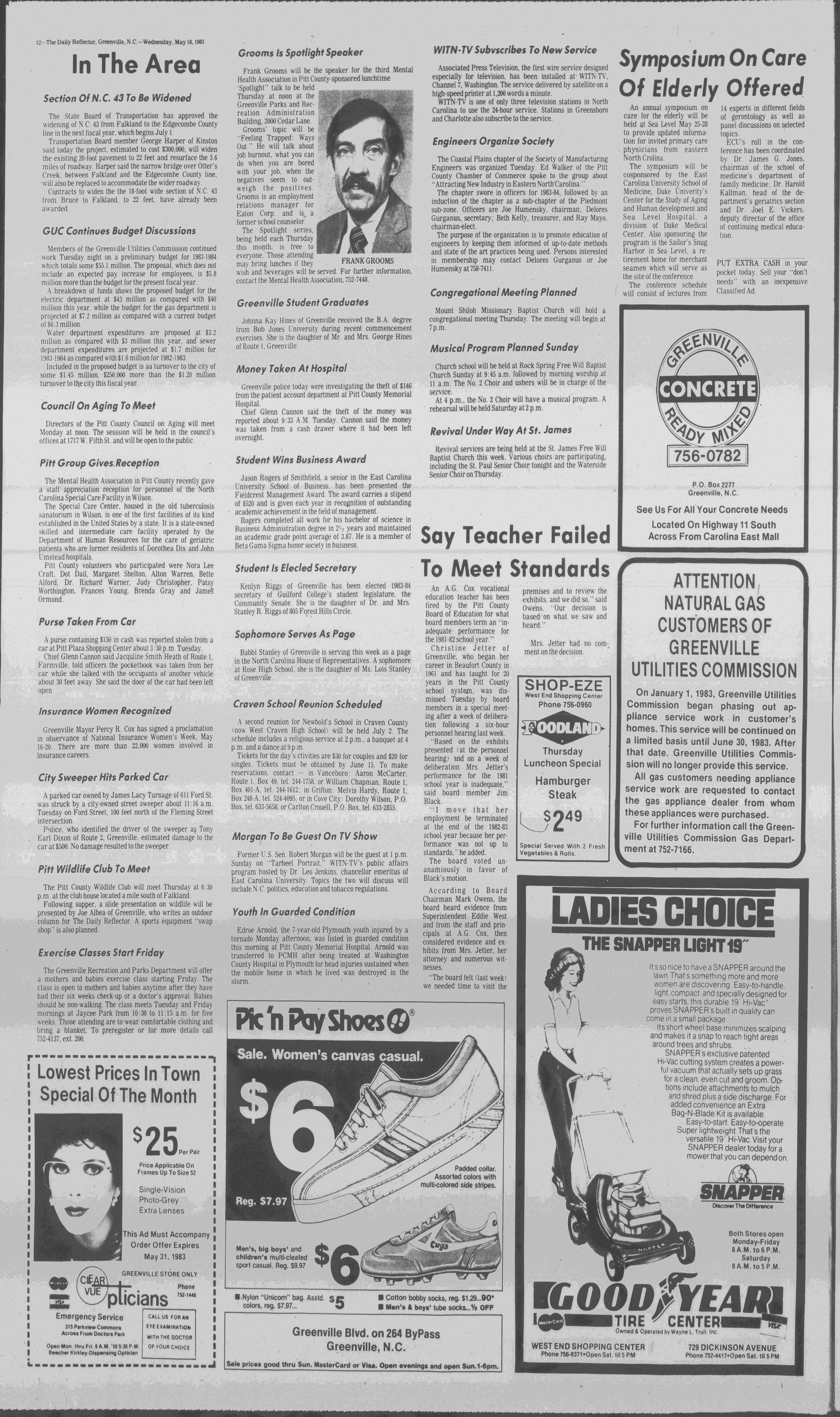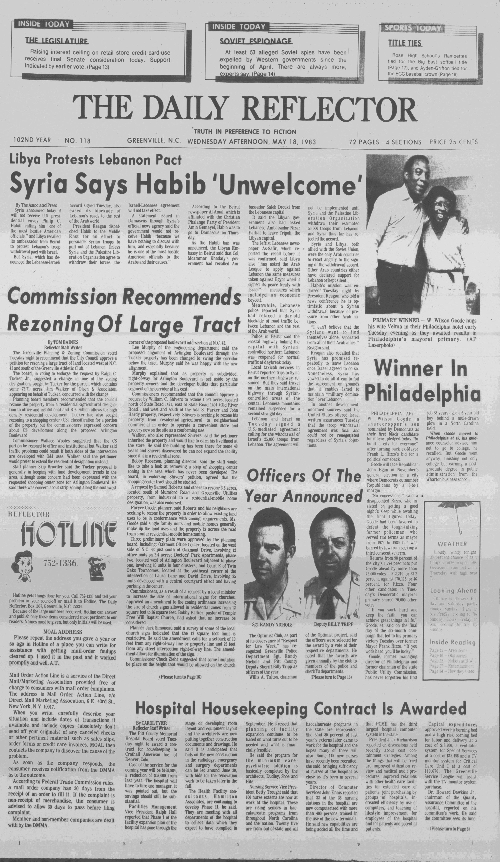 102NDYEAR NO. 118TRUTH IN PREFERENCE TO FICTIONGREENVILLE, N.C. WEDNESDAY AFTERNOON, MAY 18, 1983