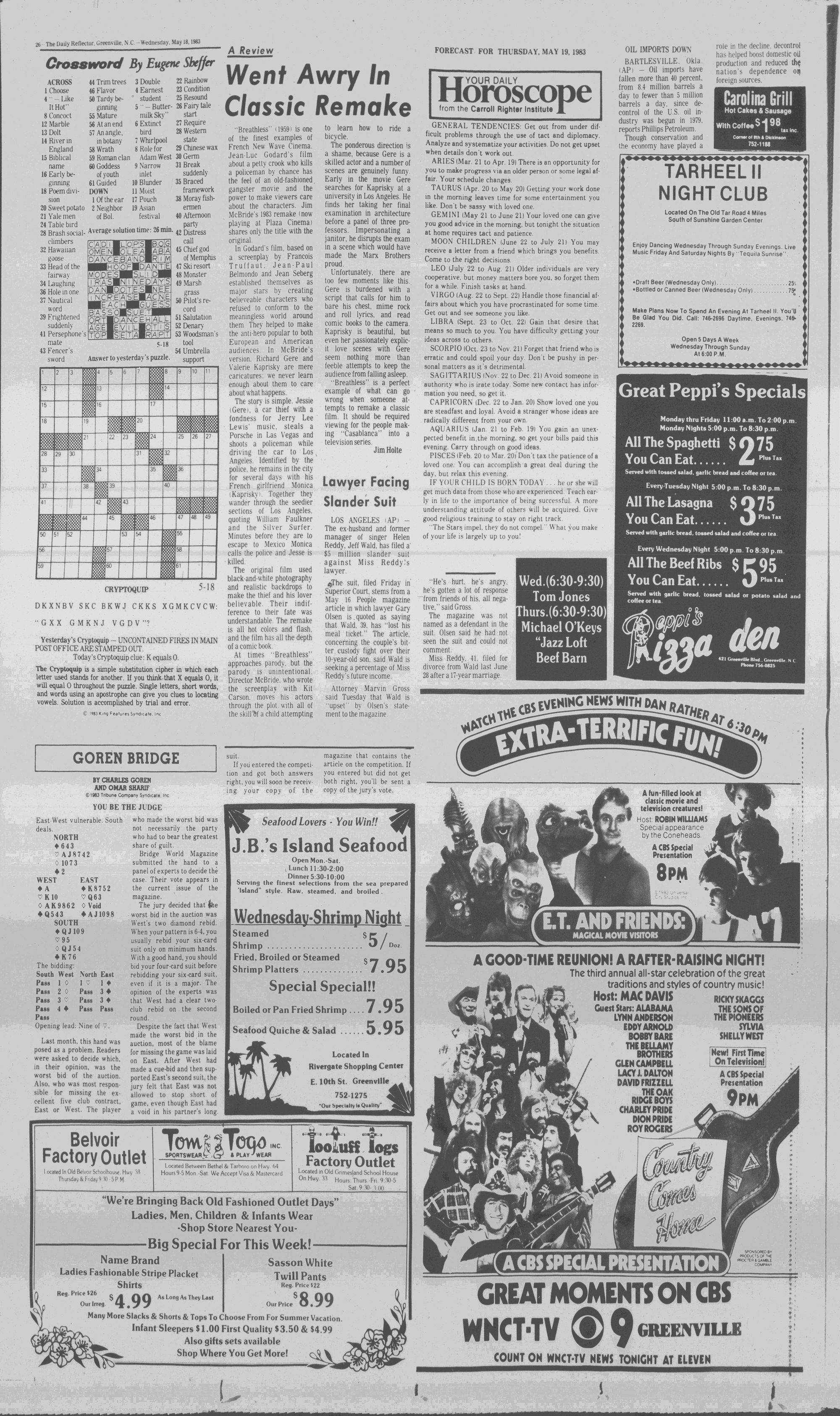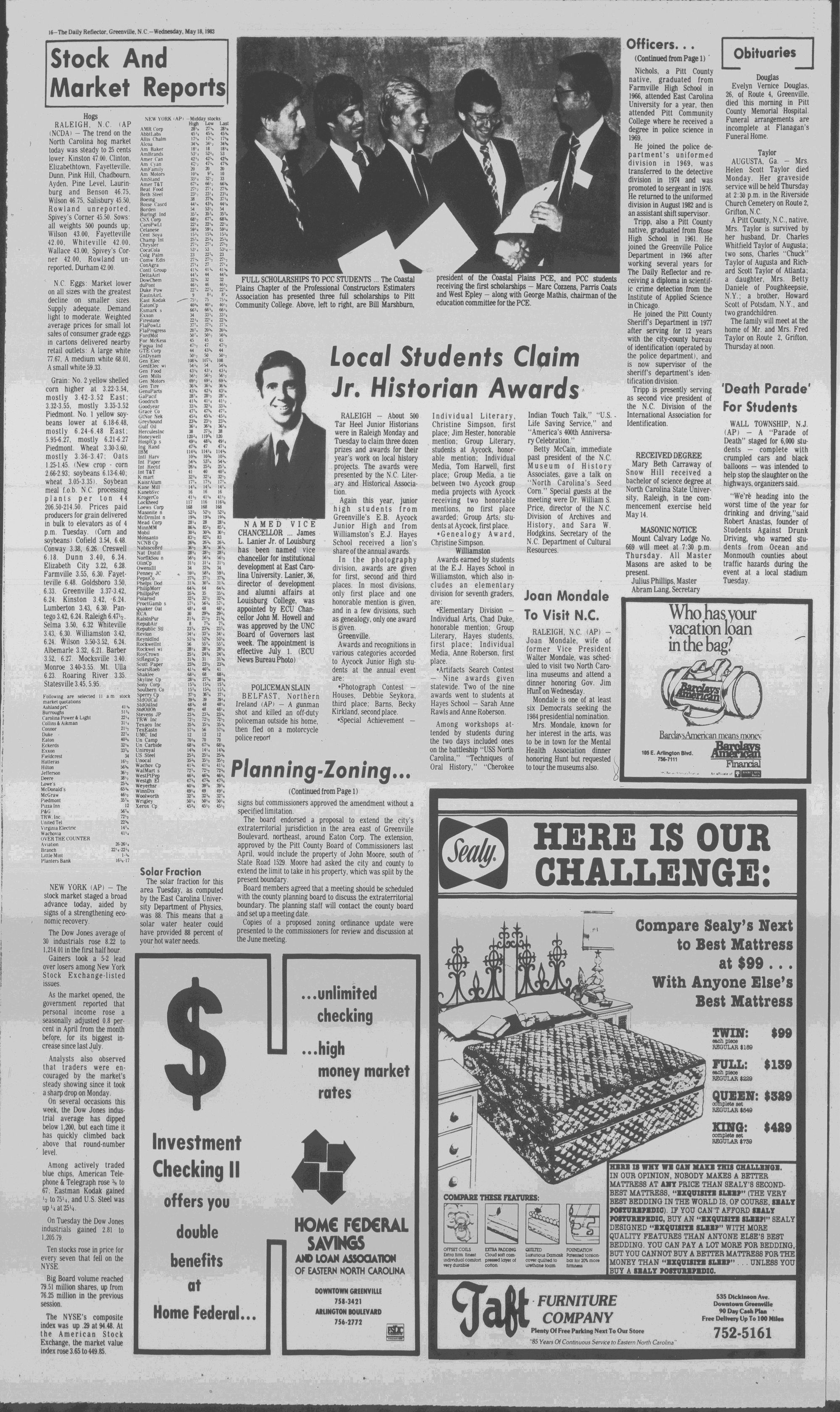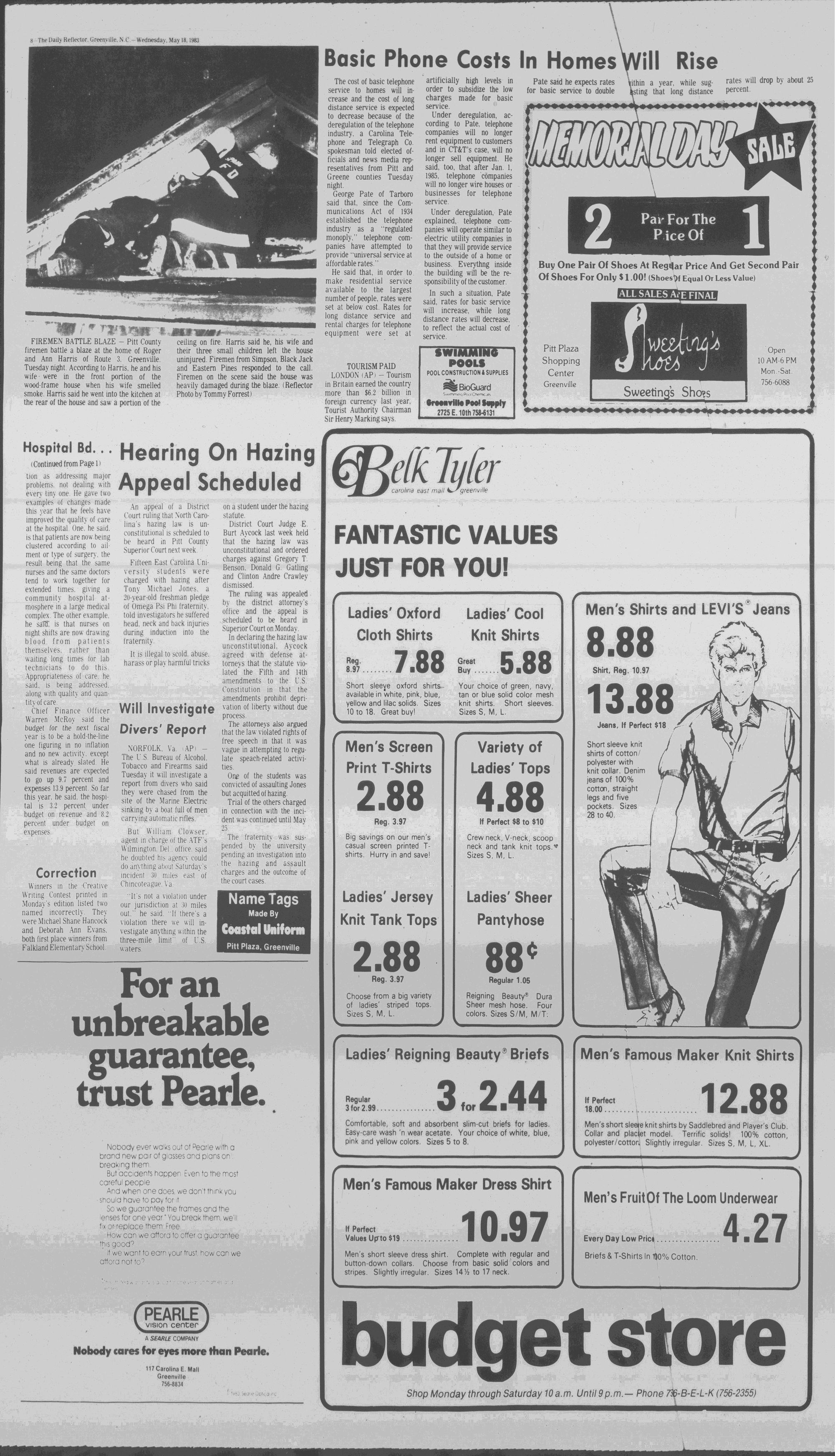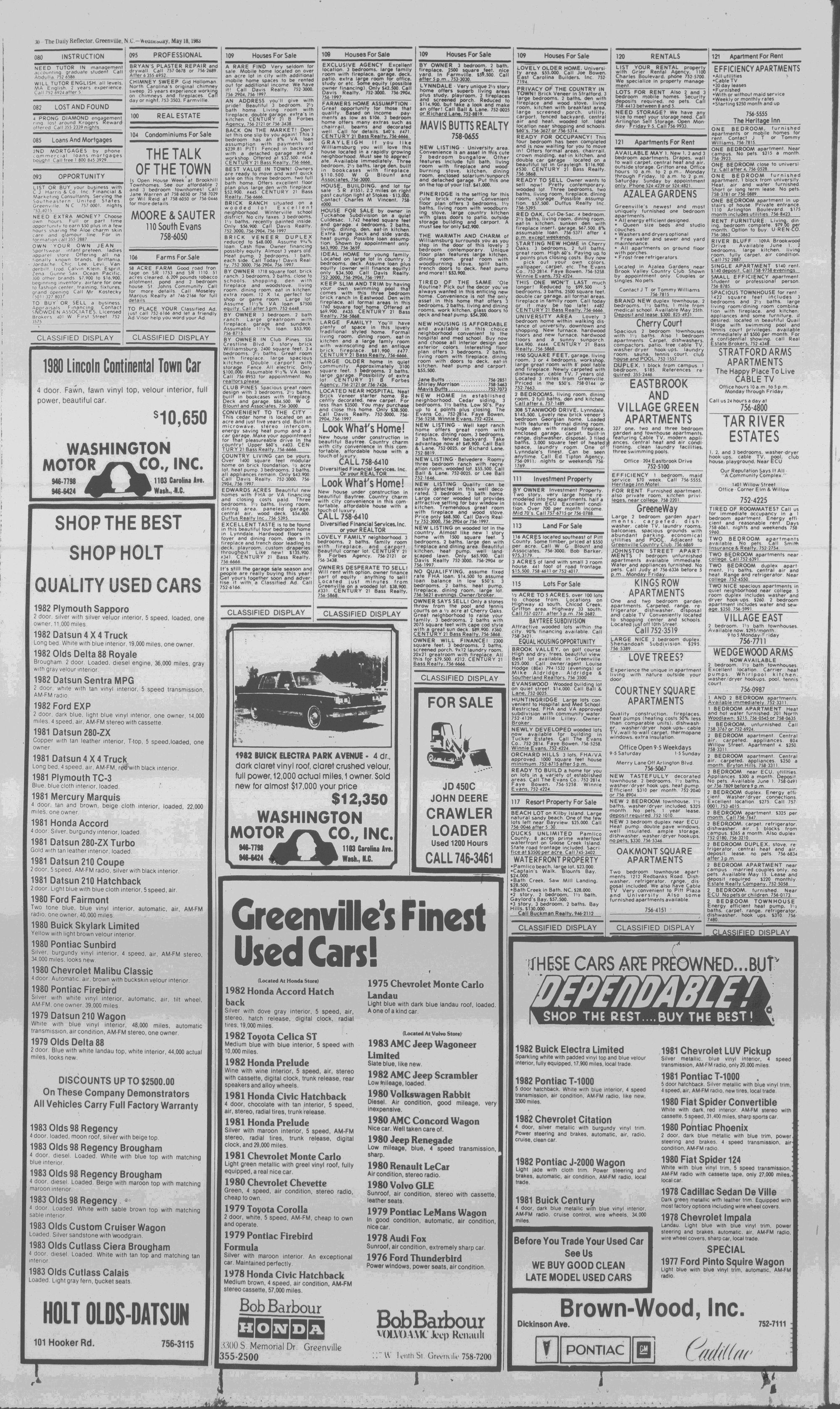102NDYEAR NO. 118TRUTH IN PREFERENCE TO FICTIONGREENVILLE, N.C. WEDNESDAY AFTERNOON, MAY 18, 1983