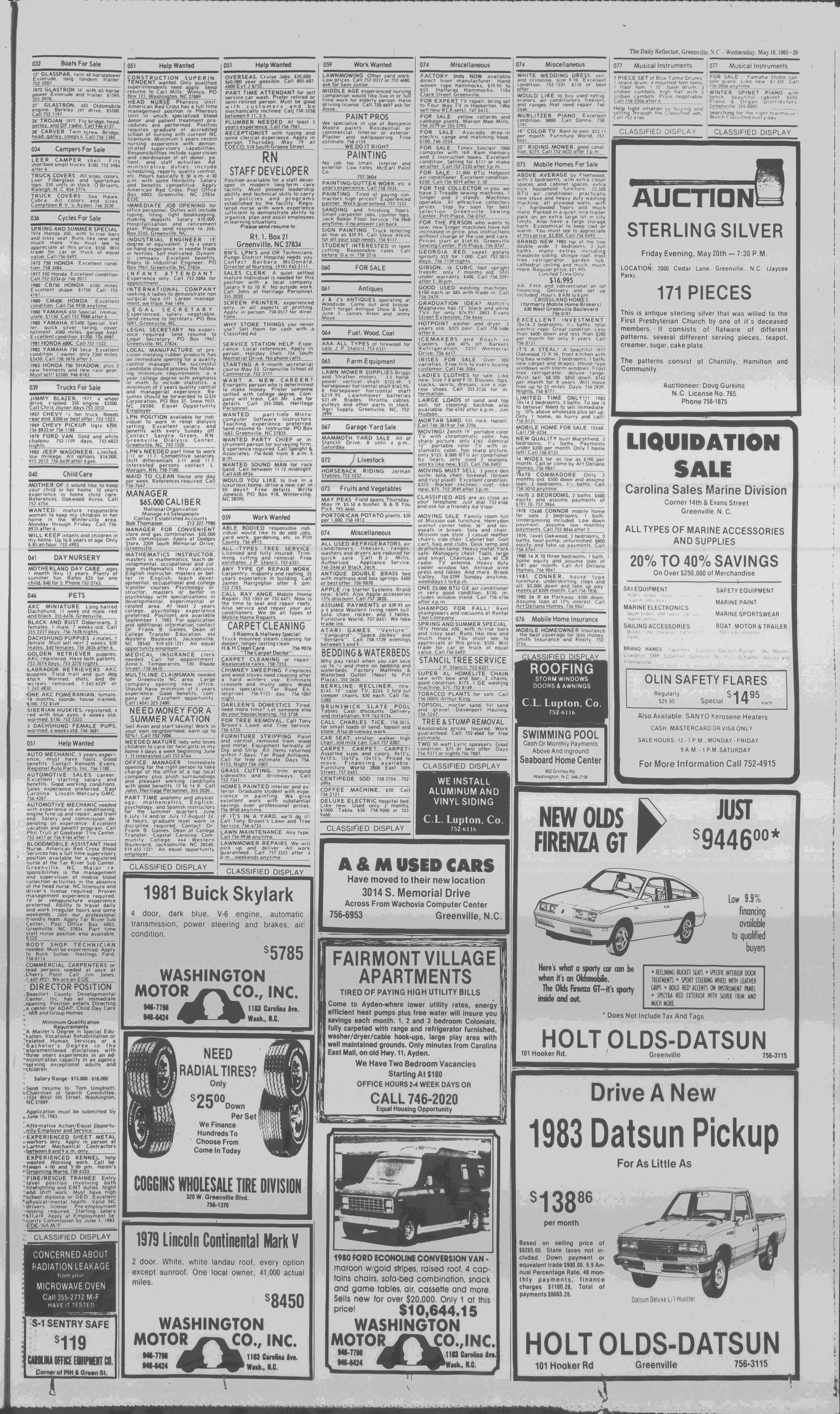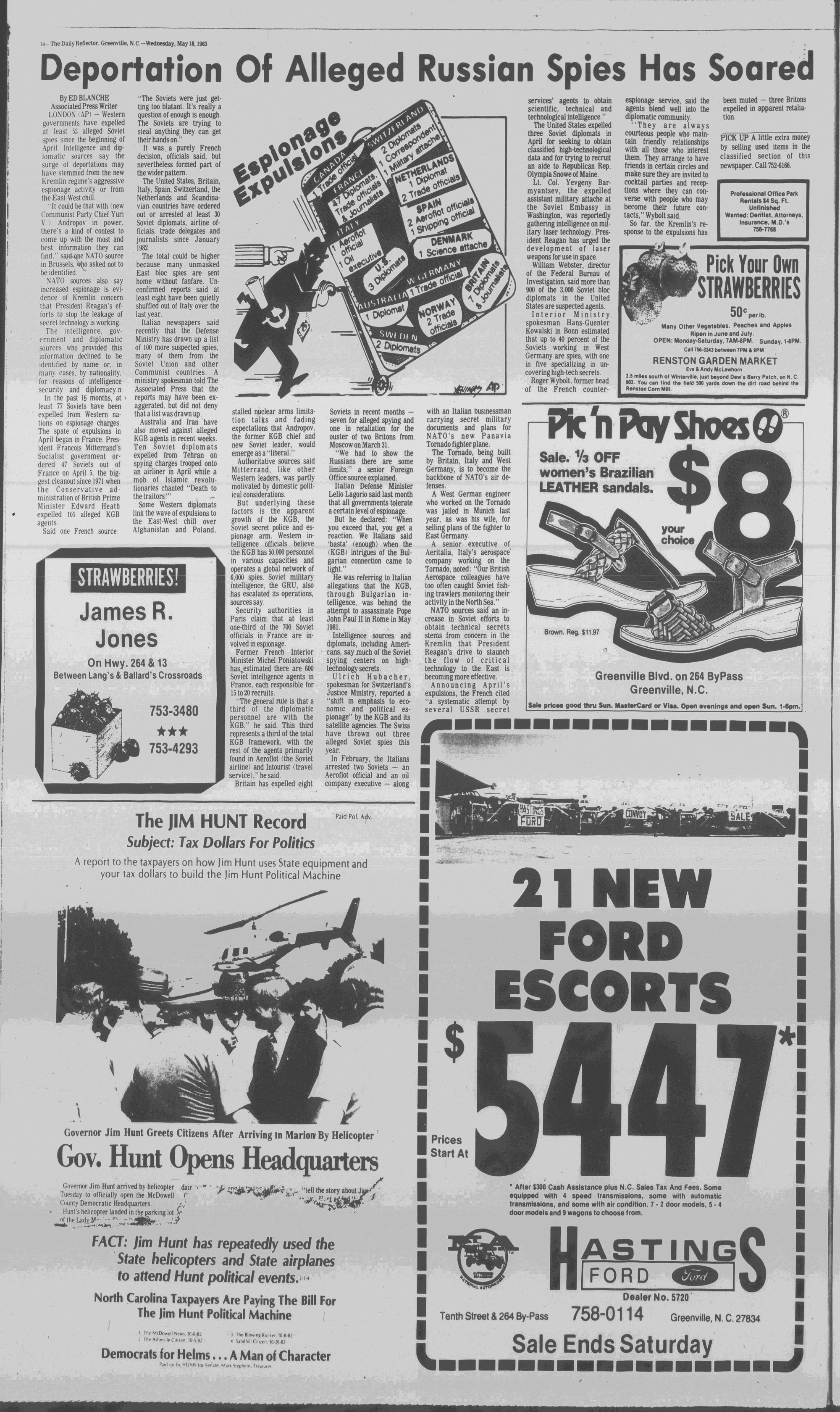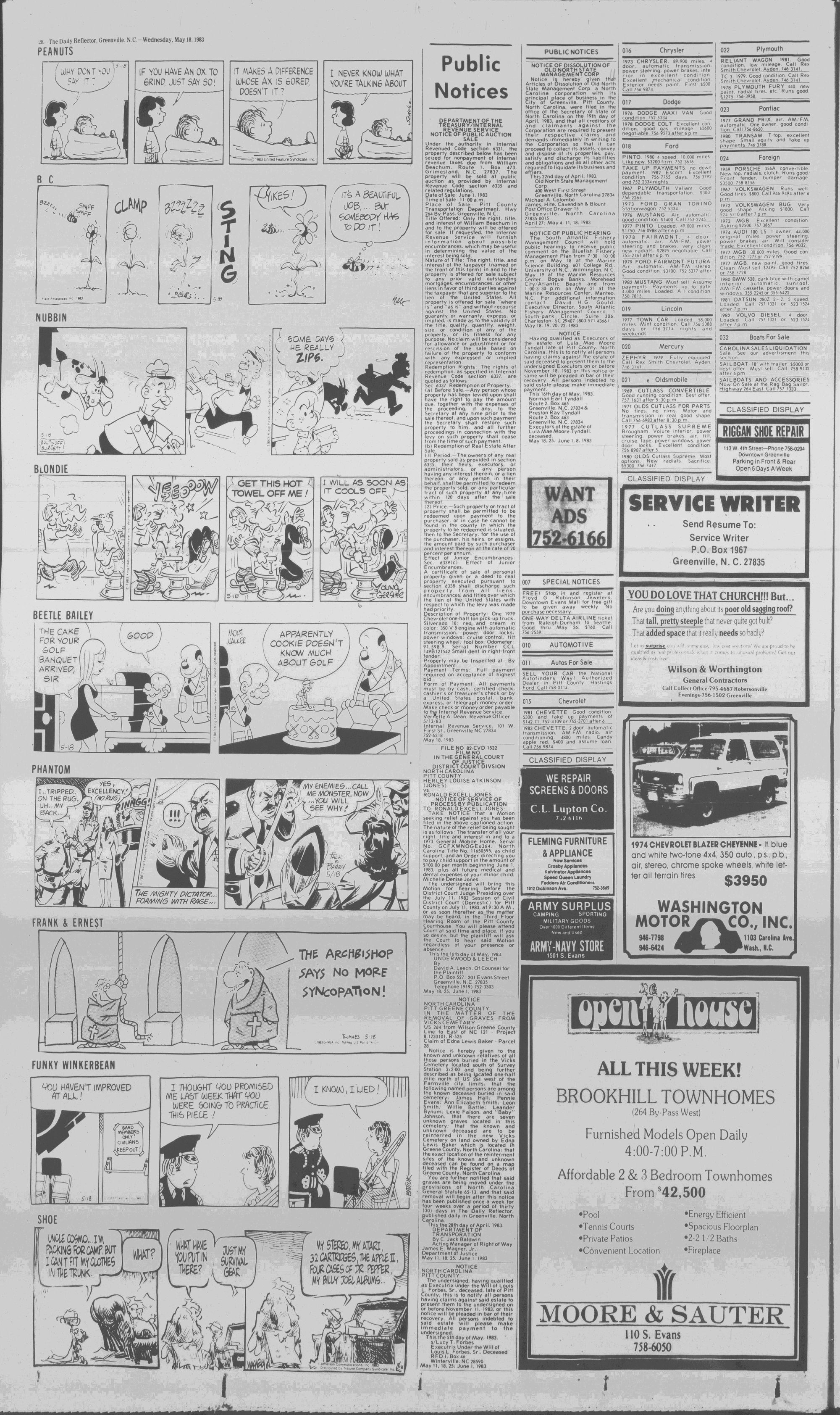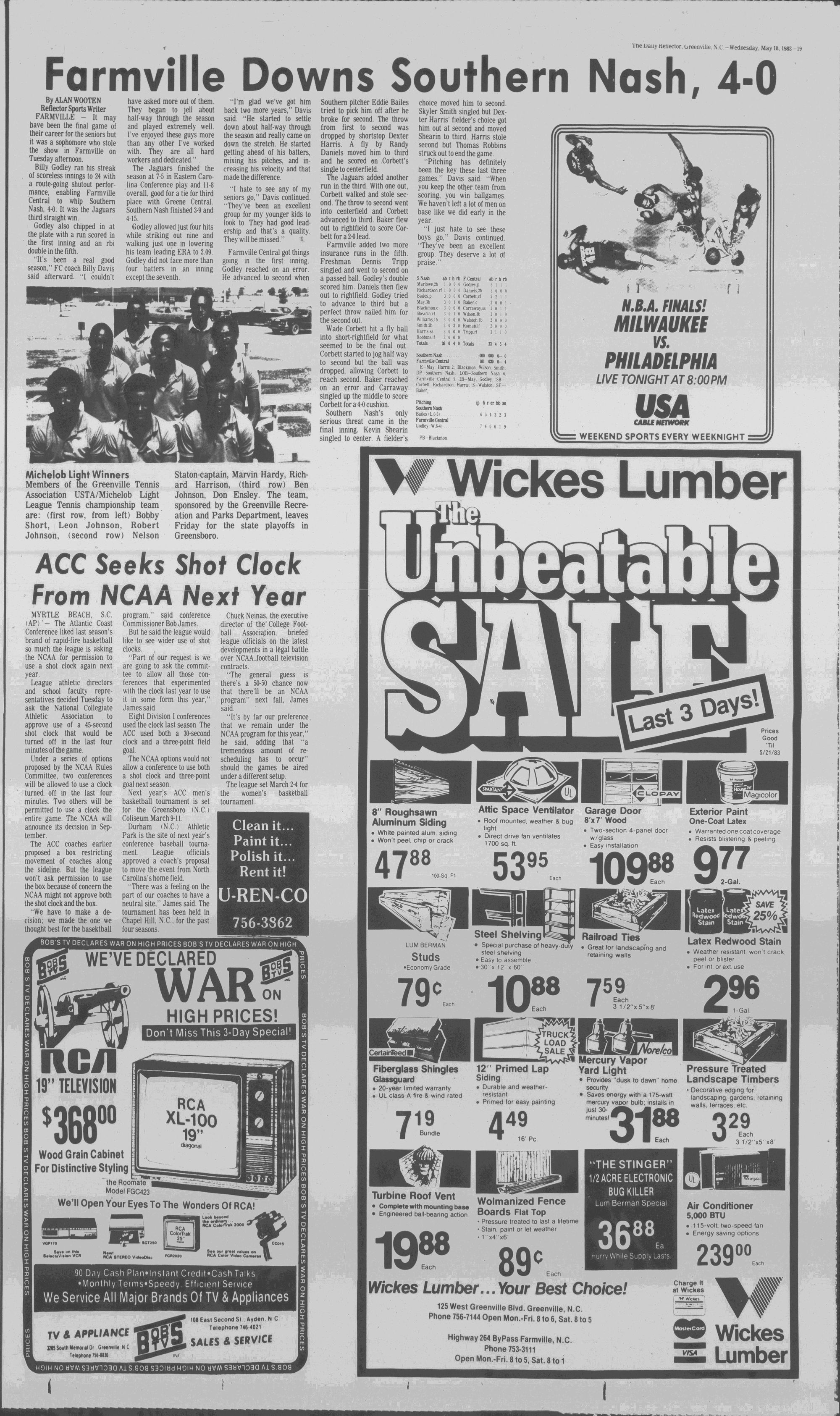 102NDYEAR NO. 118TRUTH IN PREFERENCE TO FICTIONGREENVILLE, N.C. WEDNESDAY AFTERNOON, MAY 18, 1983