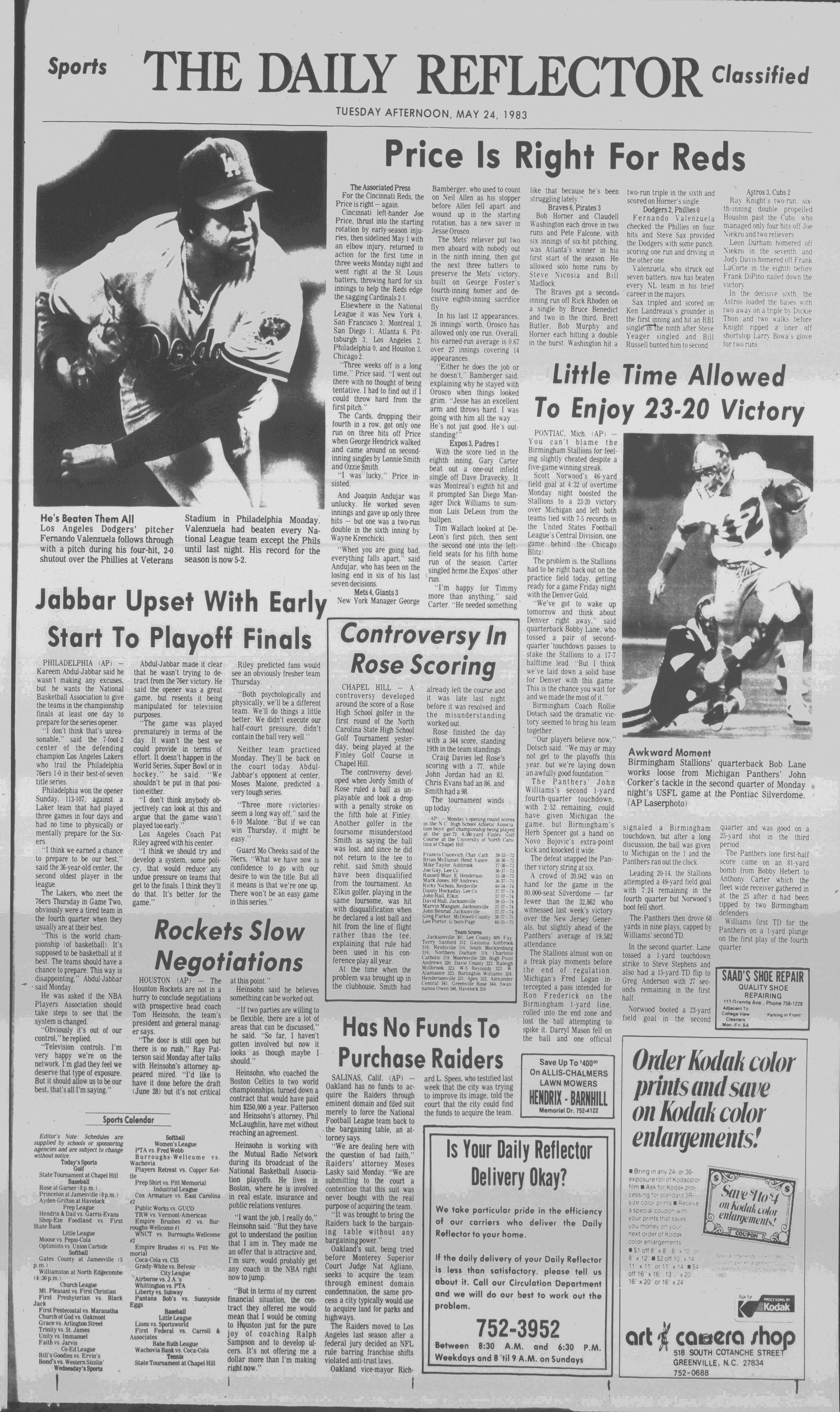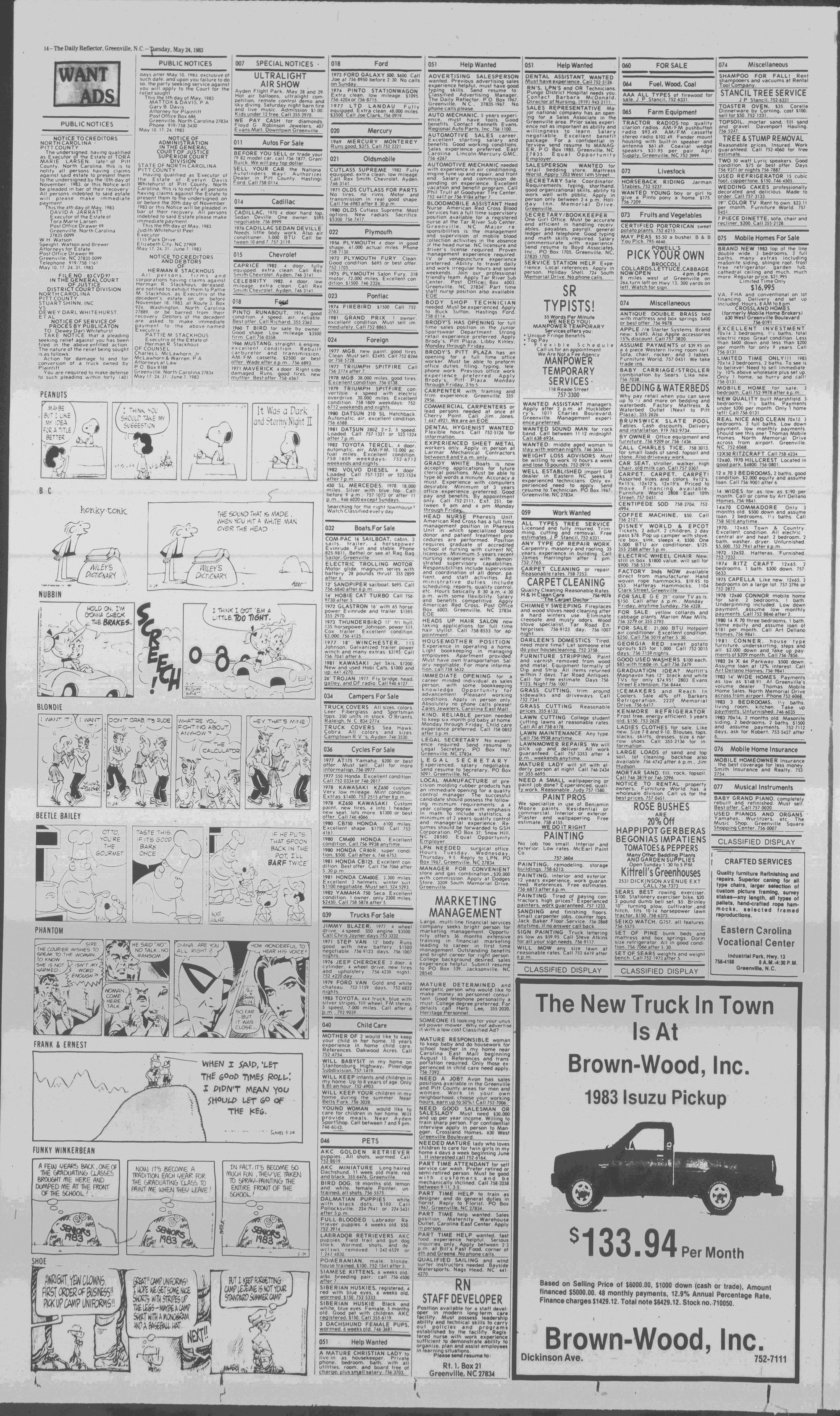 102NDYEAR NO. 105TRUTH IN PREFERENCE TO FICTION GREENVILLE, N.C. TUESDAY AFTERNOOI^ MAY 24, 1983