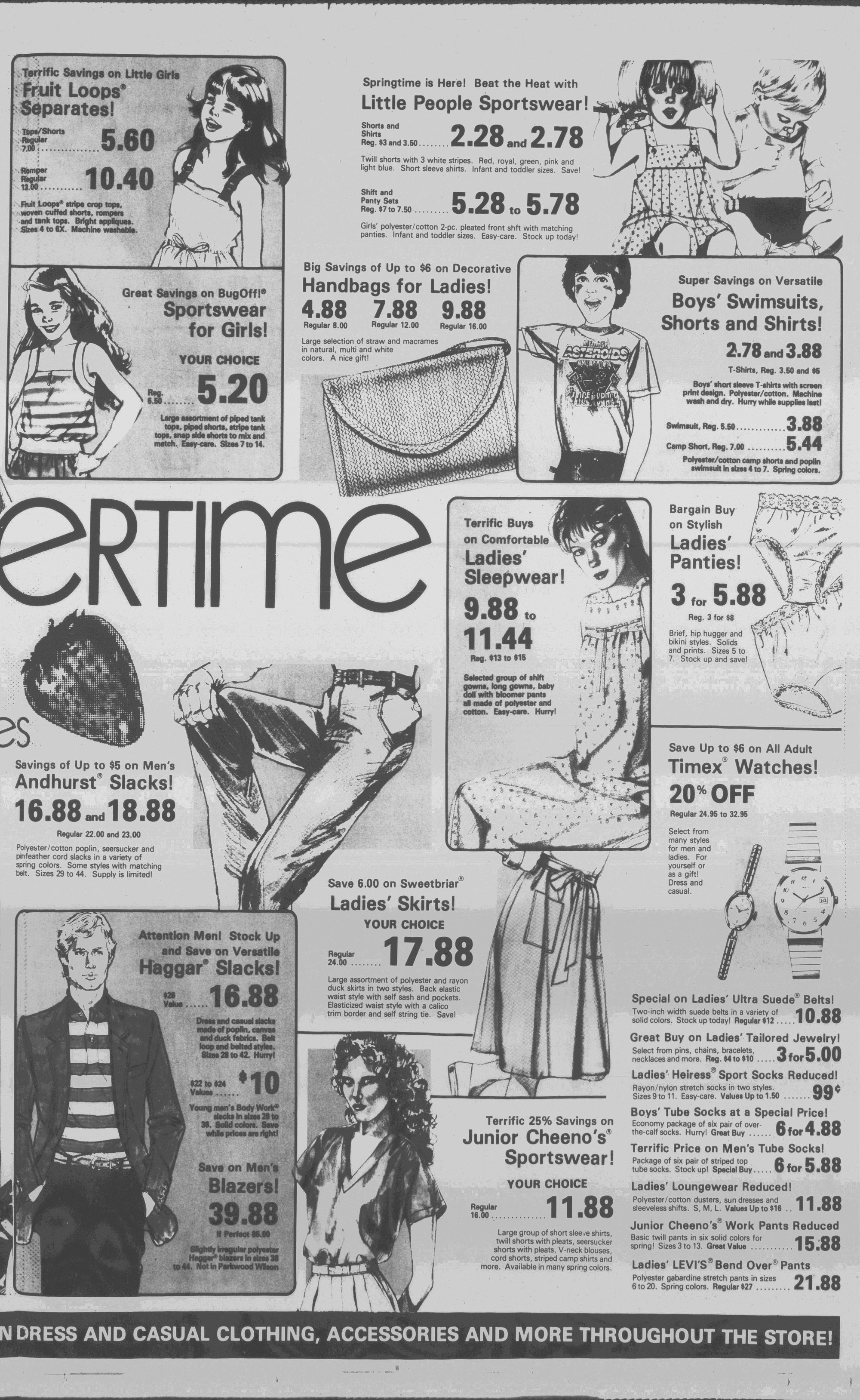 6 to 20. Spring colors. Regular 427 .........m I aOOIMPRESS AND CASUAL CLOTHING, ACCESSORIES AND MORE THROUGHOUT THE STORE!