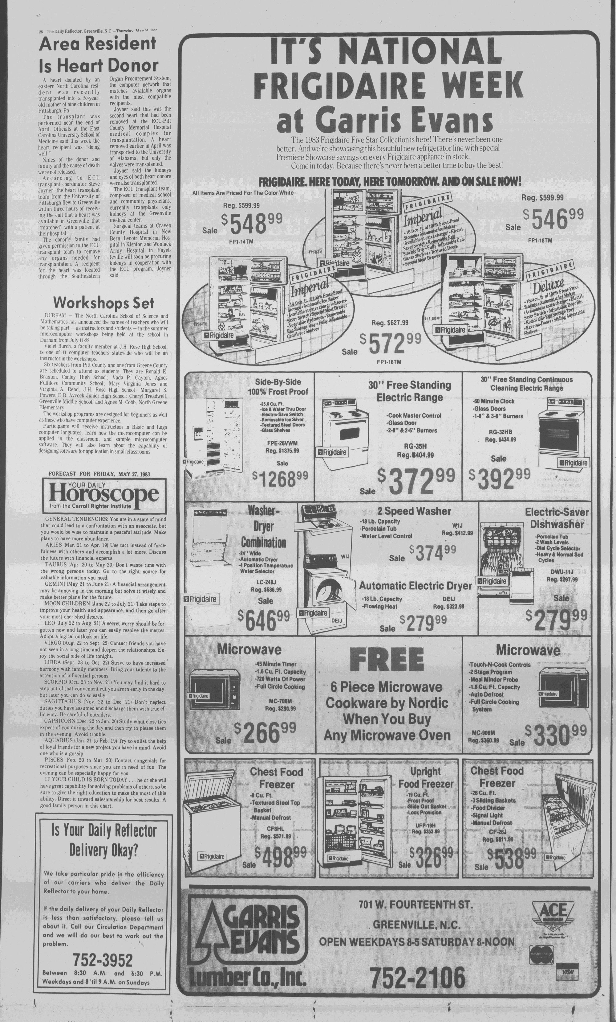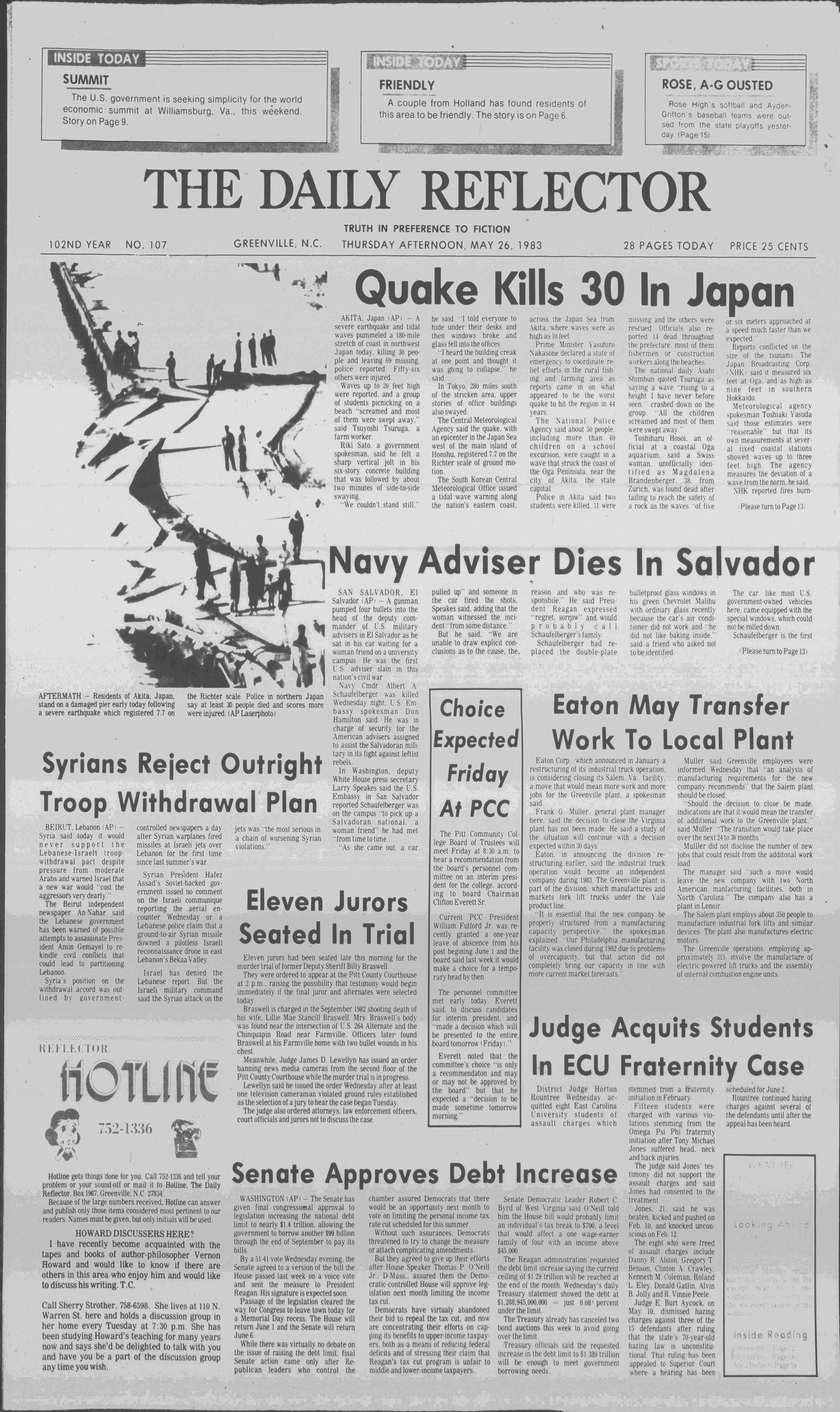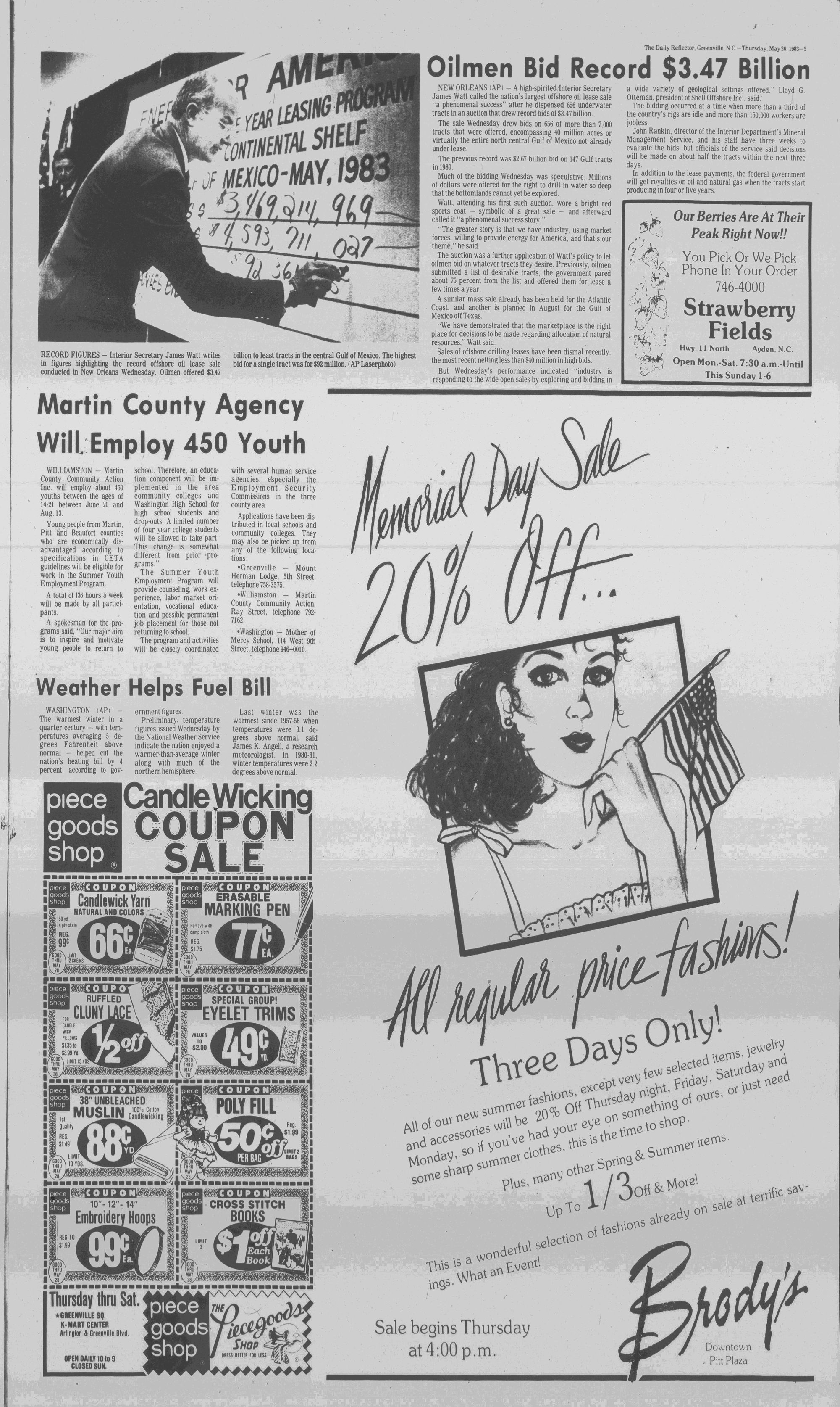 The newspaper was established in 1882, and was originally named the Eastern Reflector. It was founded by Julian Whichard and David Jordan with equipment they purchased from The Greenville Express. On December 10, 1894, it adopted the name The Reflector and began publishing every day. Cox Newspapers acquired The Daily Reflector in 1996. Creator: Daily Reflector (Greenville, N.C.) - 30462