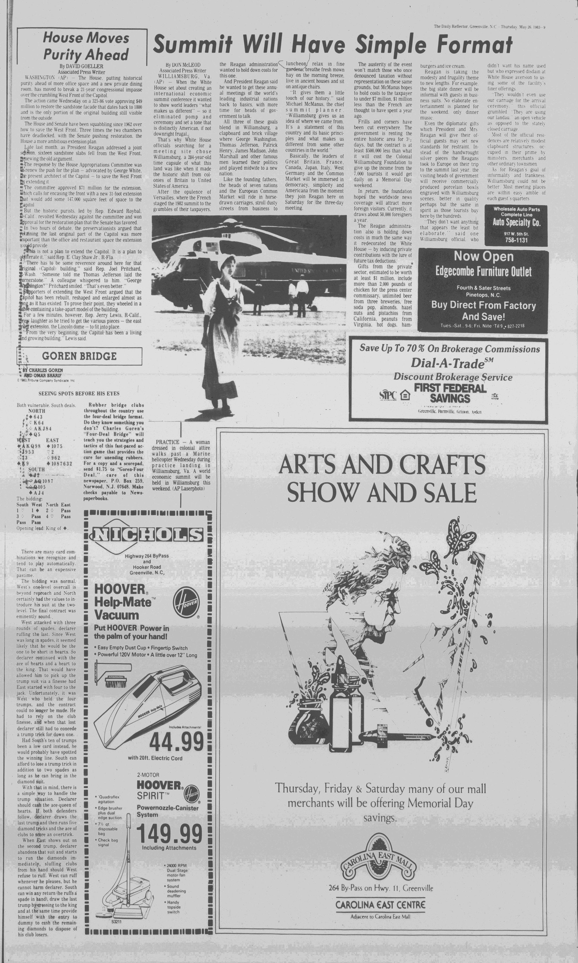 The U.S. government is seeking simplicity for the world economic summit at Williamsburg, Va., this weekend. Story on Page 9.