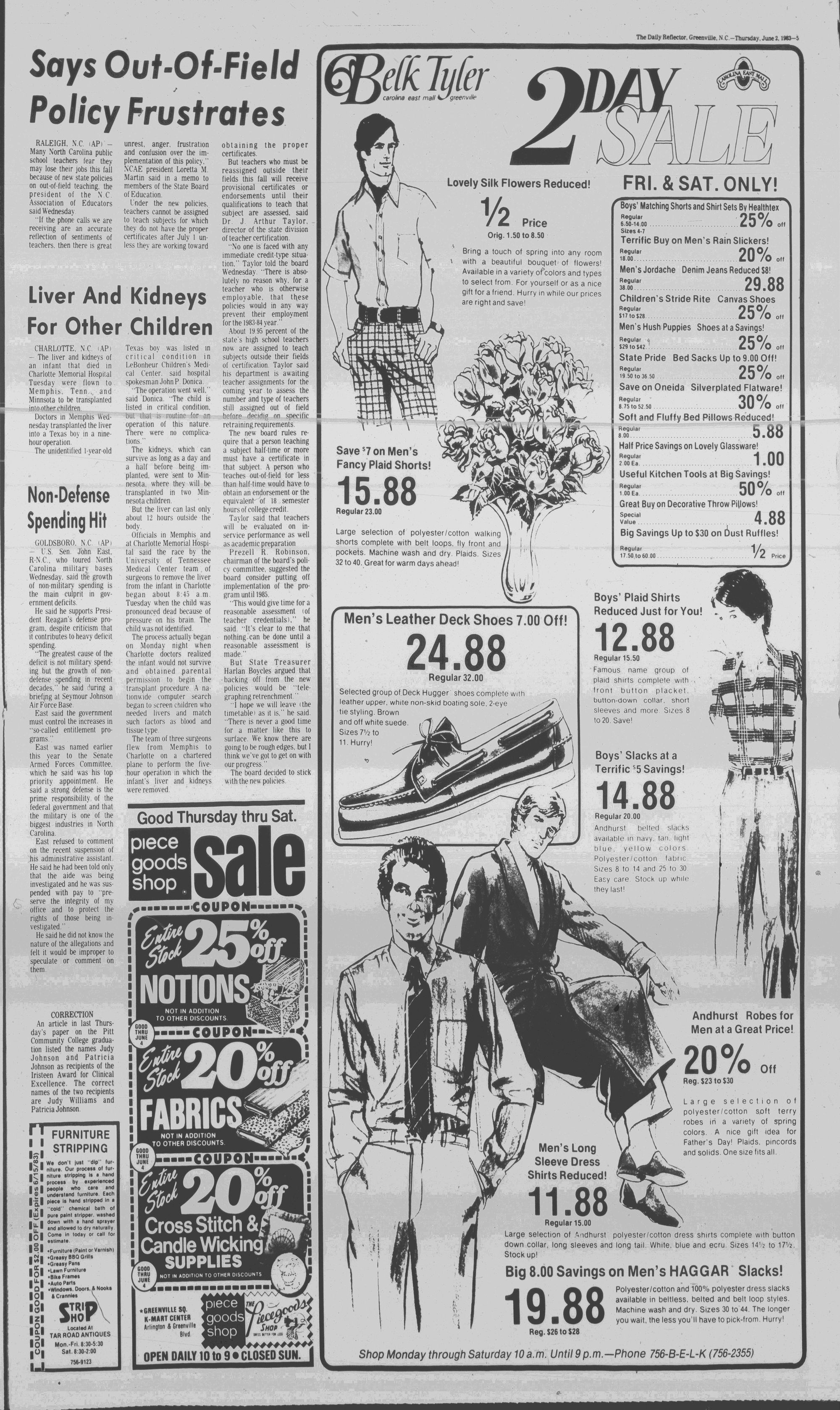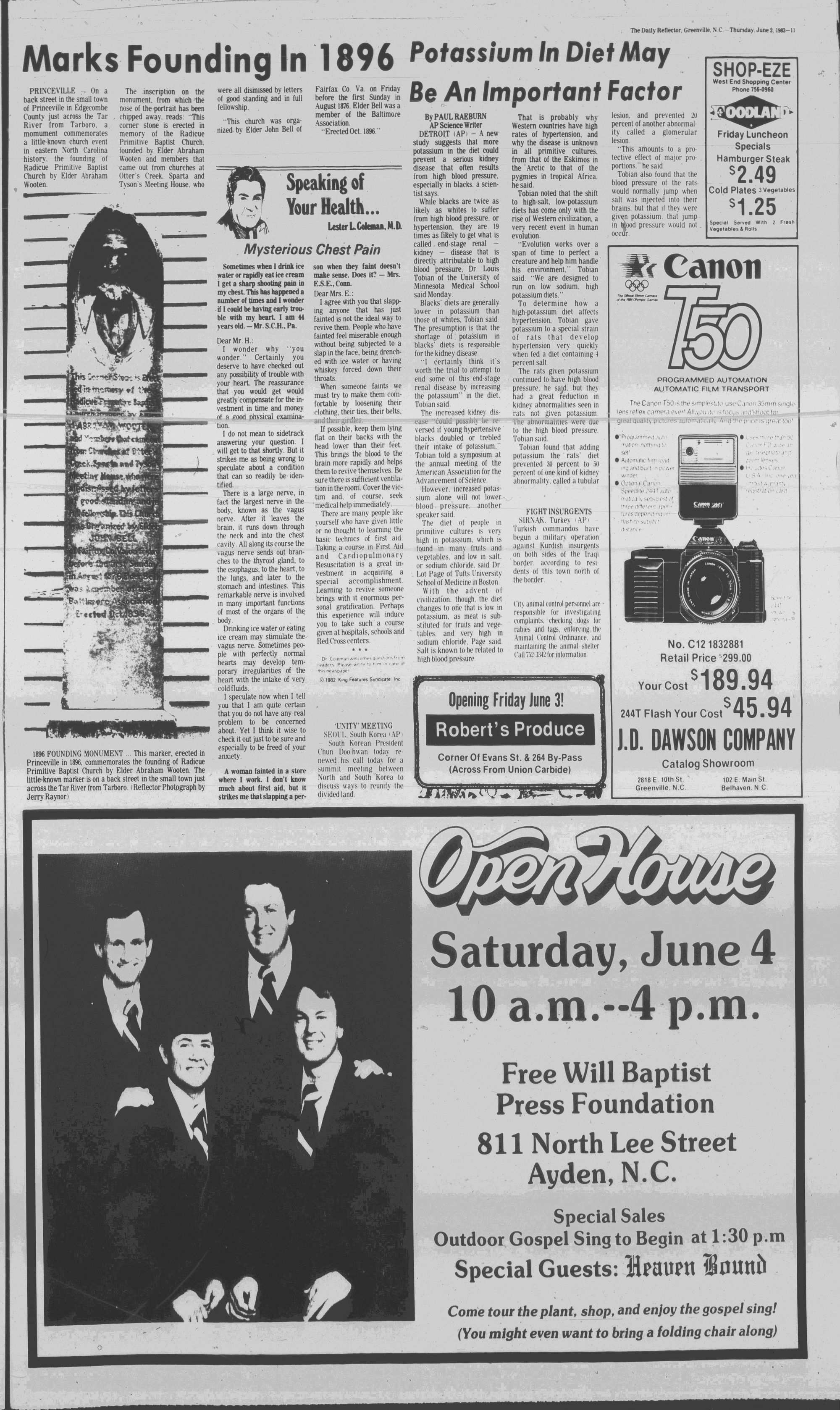 The newspaper was established in 1882, and was originally named the Eastern Reflector. It was founded by Julian Whichard and David Jordan with equipment they purchased from The Greenville Express. On December 10, 1894, it adopted the name The Reflector and began publishing every day. Cox Newspapers acquired The Daily Reflector in 1996. Creator: Daily Reflector (Greenville, N.C.) - 30469