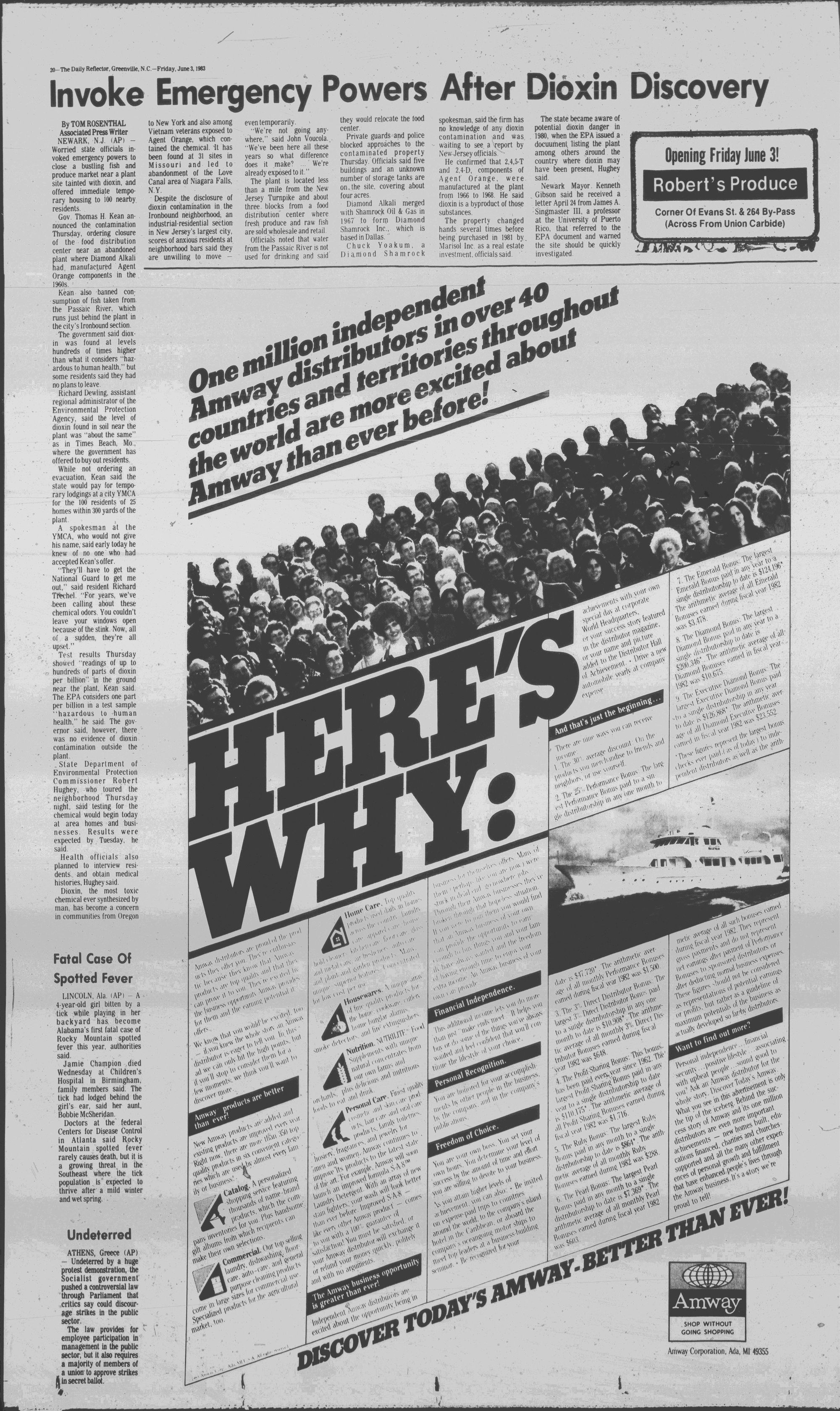 20-The Dally Reflector, GreenvUle, N.C.-Friday, June 3,1983Invoke Emergency Powers After Dioxin