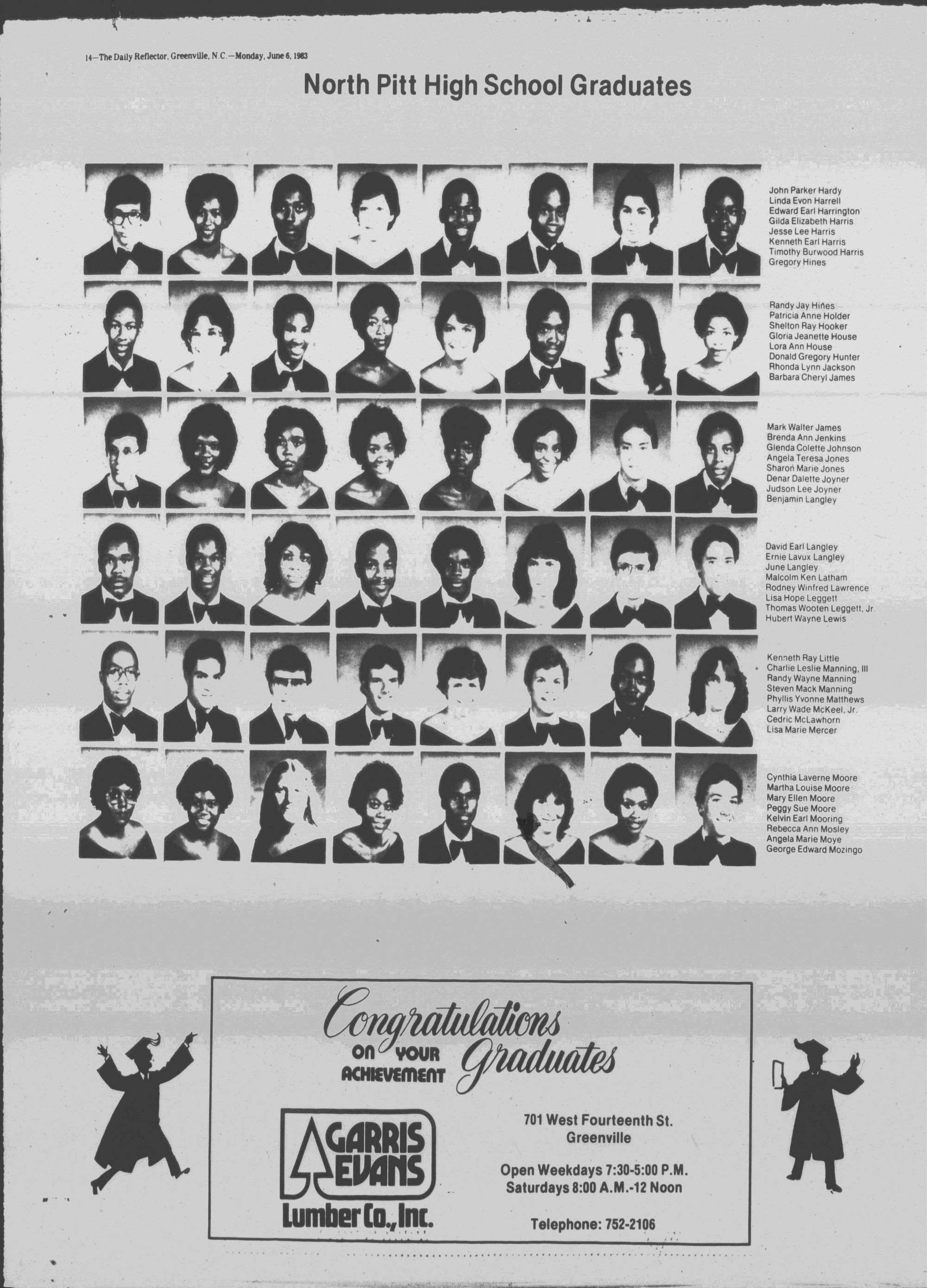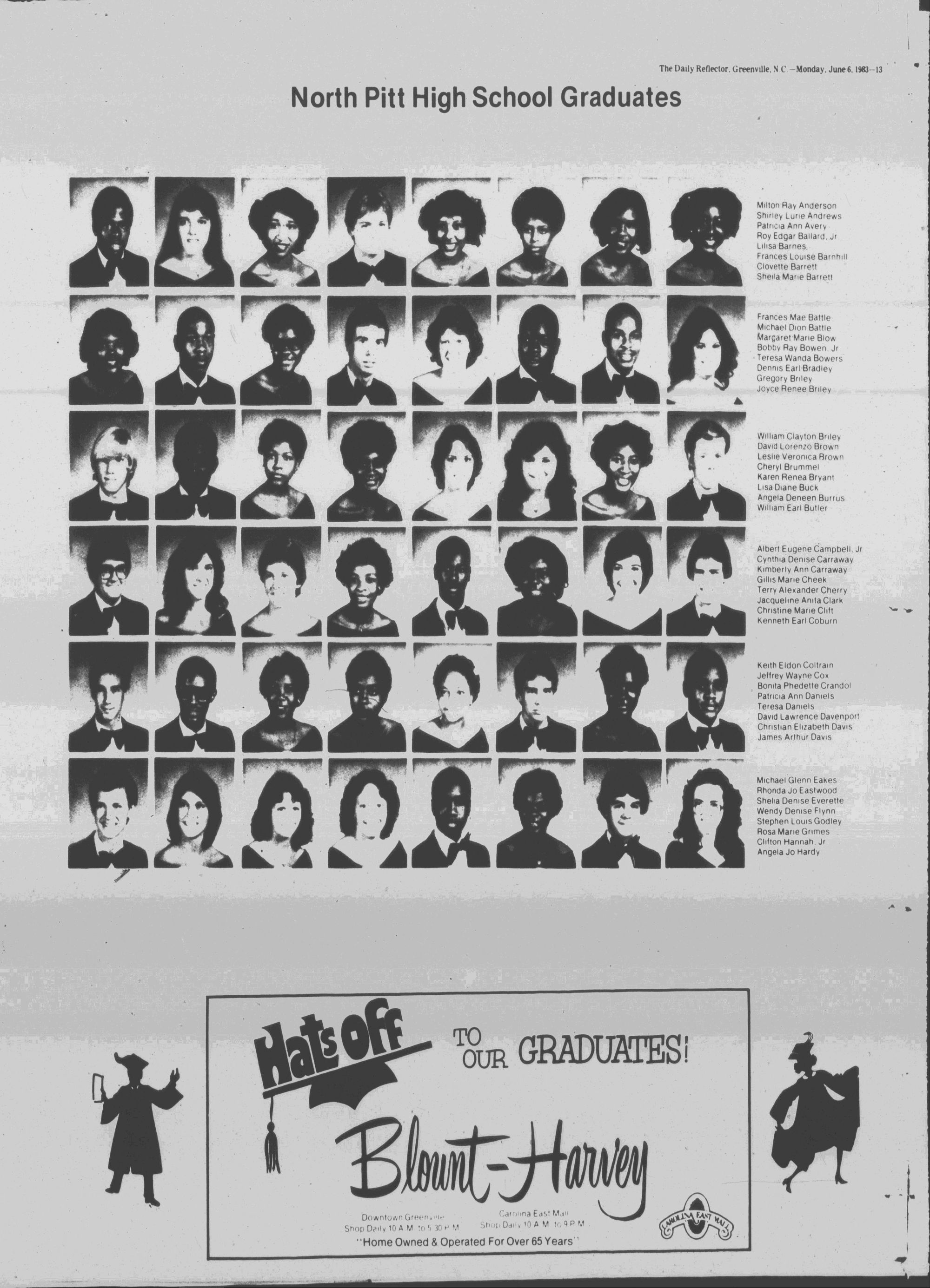 Elizabeth Ross Barton Charles Ellis Best Marvin Key Blount. Ill Calvin Earl Bradley Alvin Levon Clemons Thomas Ray Cooper Thomas Earl Dixon Helen Louise Gray Alice Marie Harrison Ricky Lee Harrison Eric Tyrone Johnson Elaine Joyner Kimberly Sue Lainhart Rhonda Lloyd Michael Andrew Lockamy William Frank Malvaso Lisa Lavett Moore Ora Ann Ross Raymond Thomas Shirley Harrison Thompson Clinton Gray Tucker Silvester Lorenzo Whitehurst Ked Adams Woodley Kevin Dale Worthington Wanda Carol Worthington