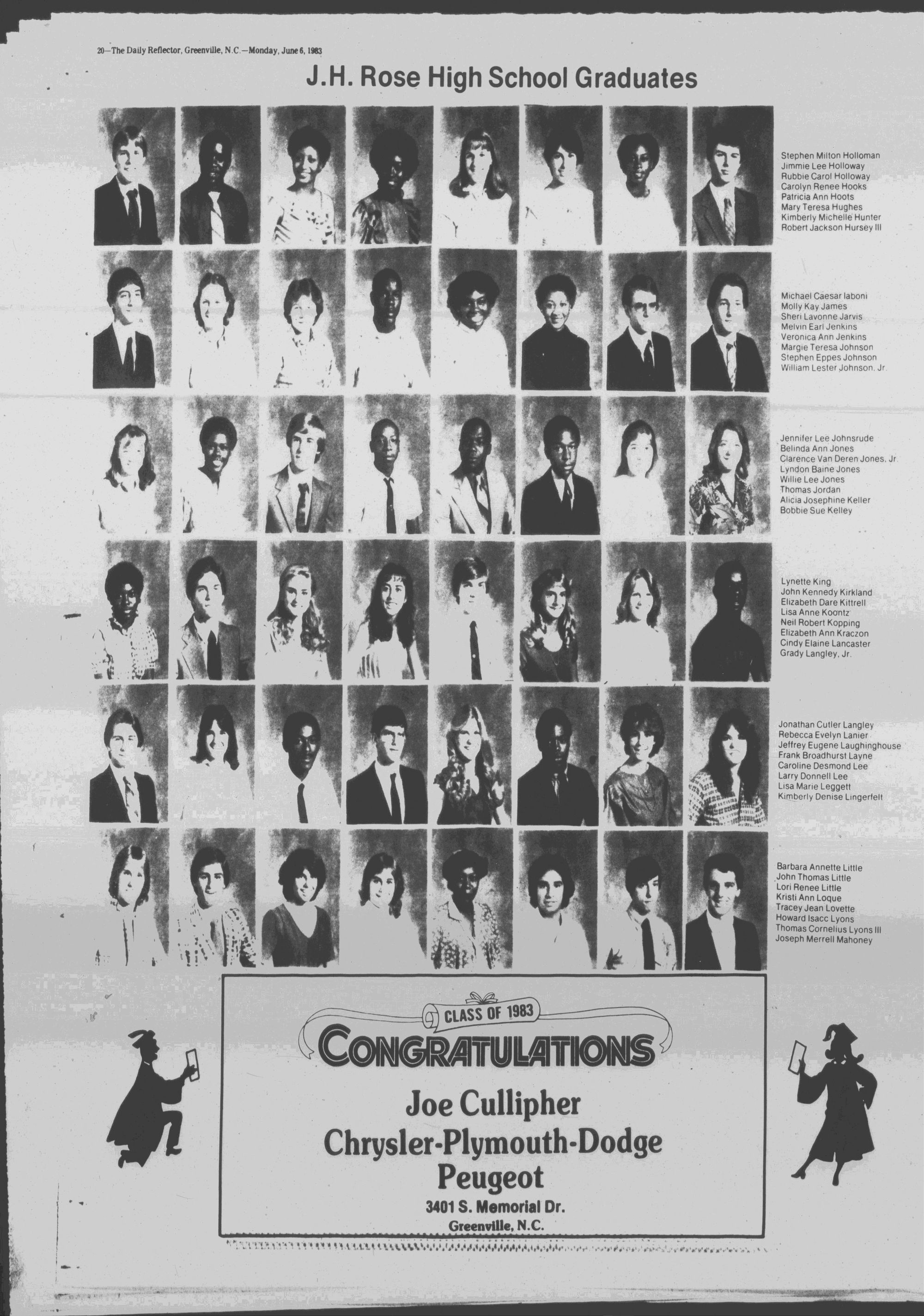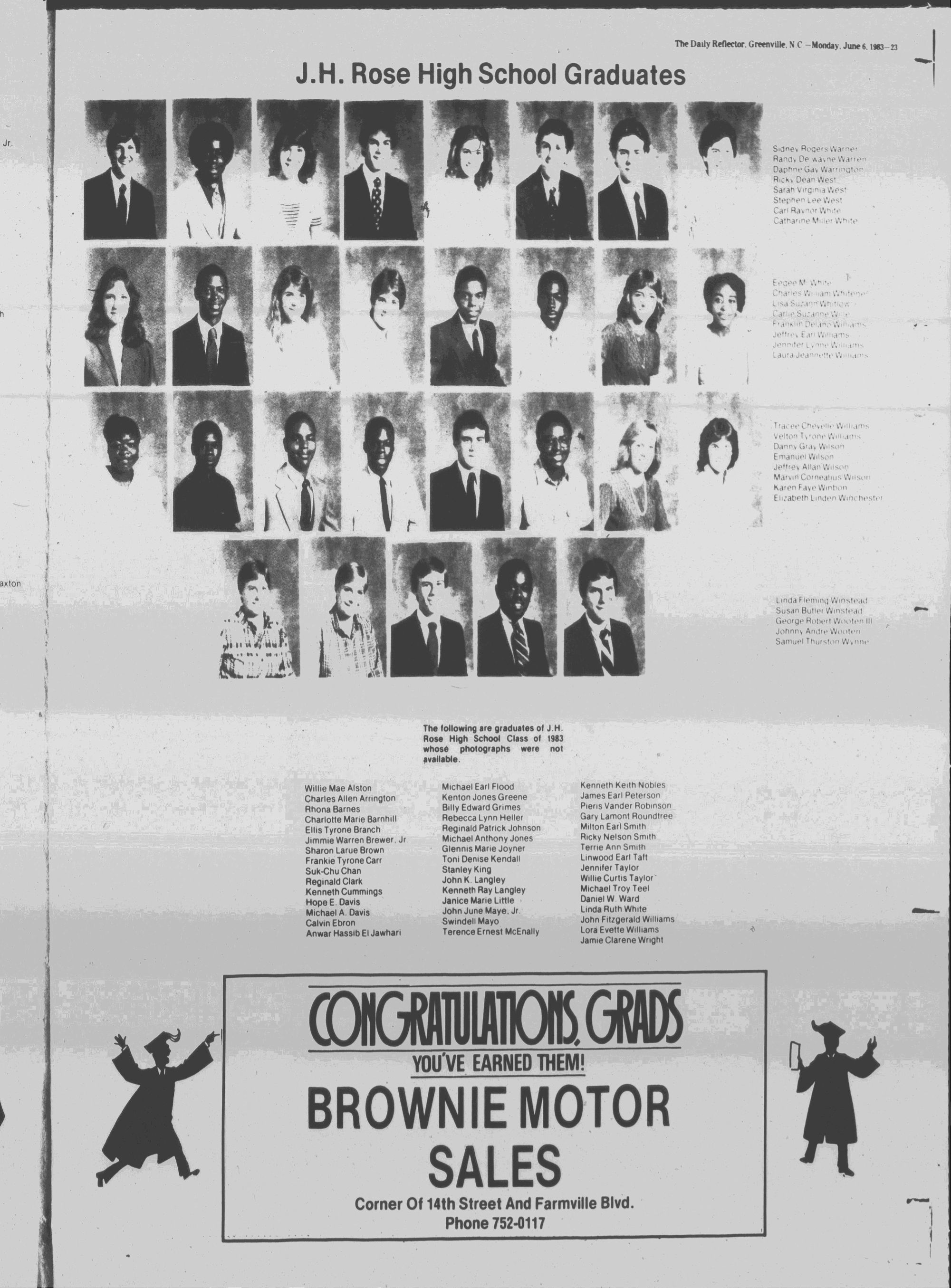 The following are graduates of D.H Conley High School Class of 1983 whose photographs were not available.