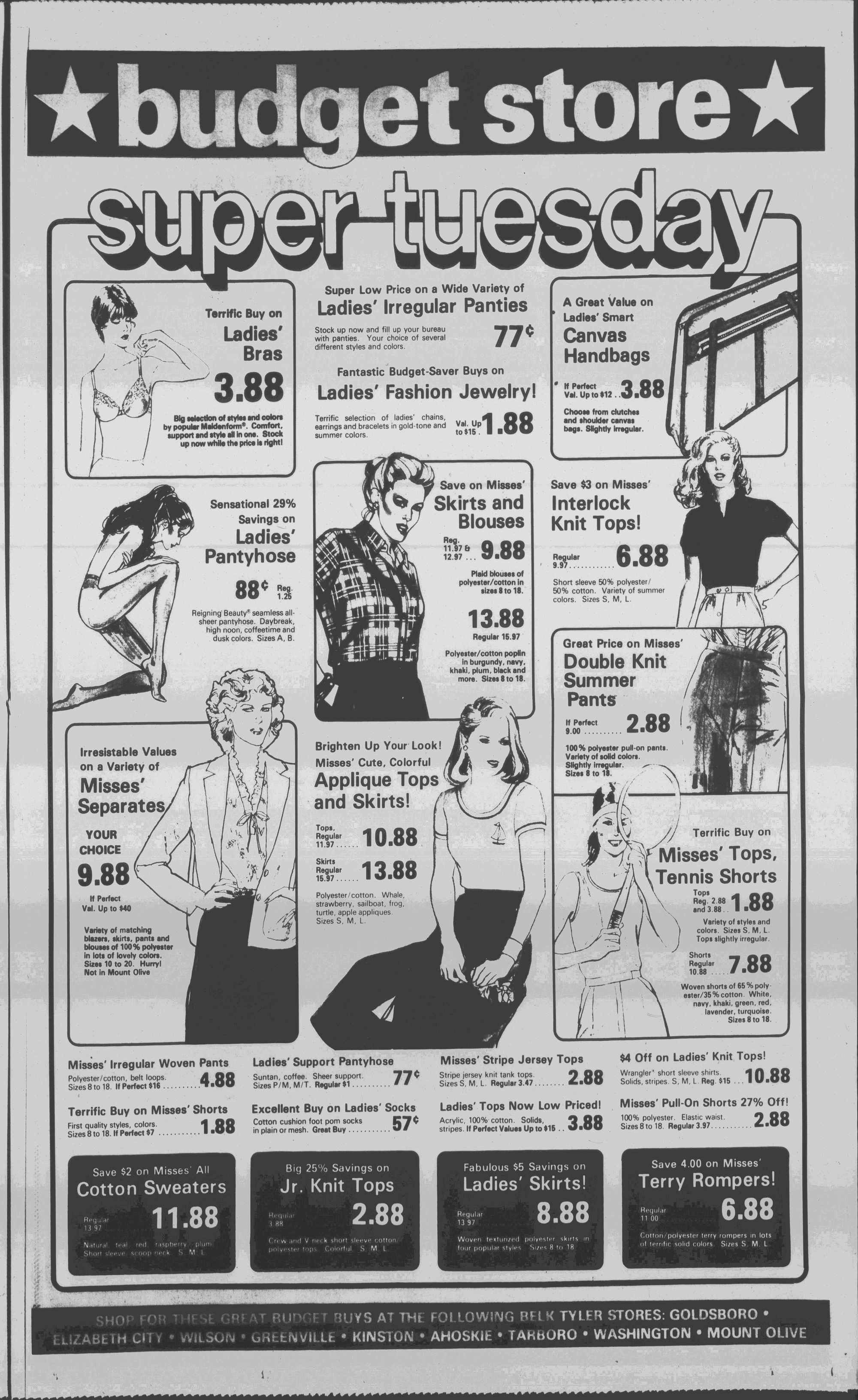 Polyester/cotton print wrap skirt which reverses to solid. Sizes 7 to 14. Easy-care. Hurry while our limited supplies last and stock up!