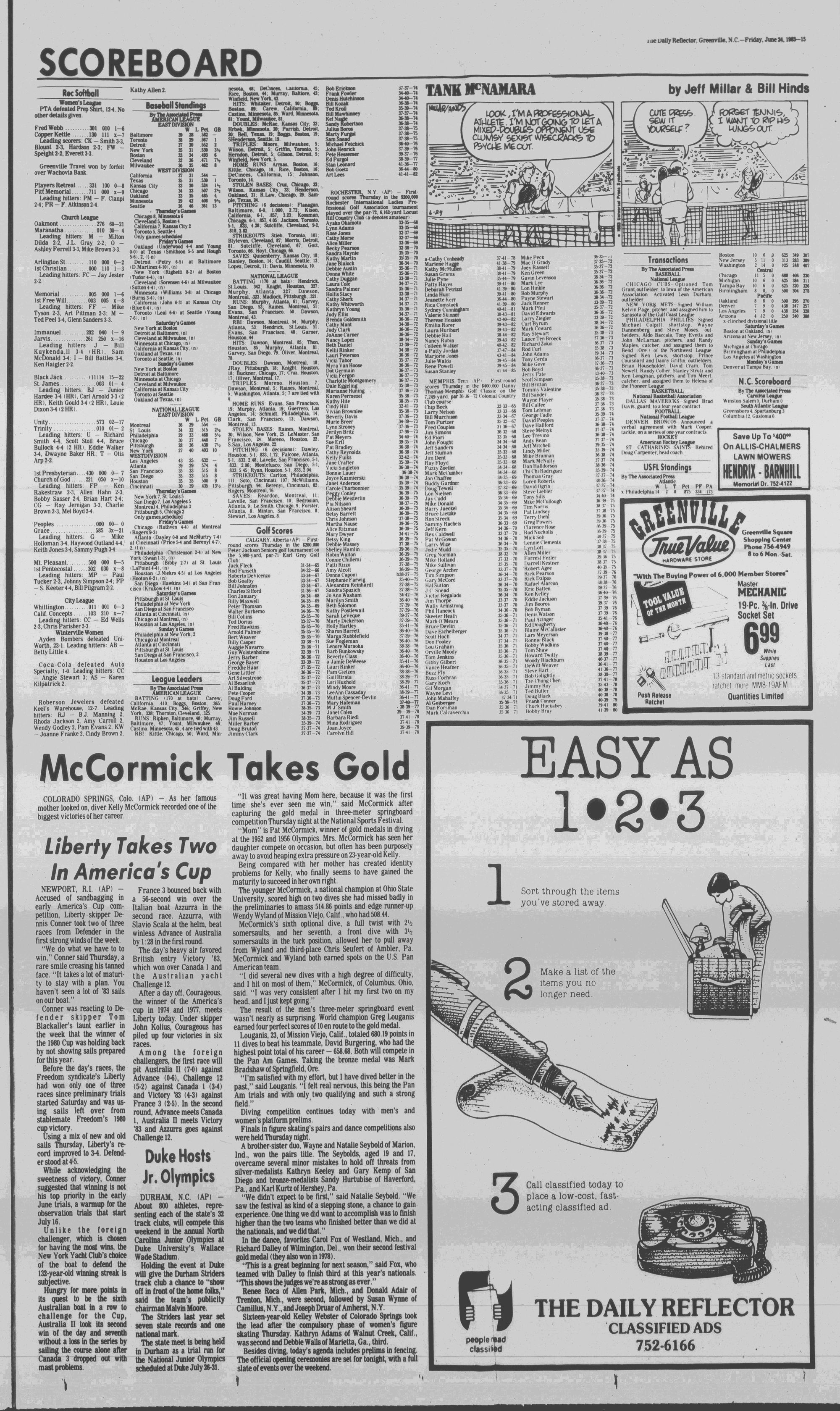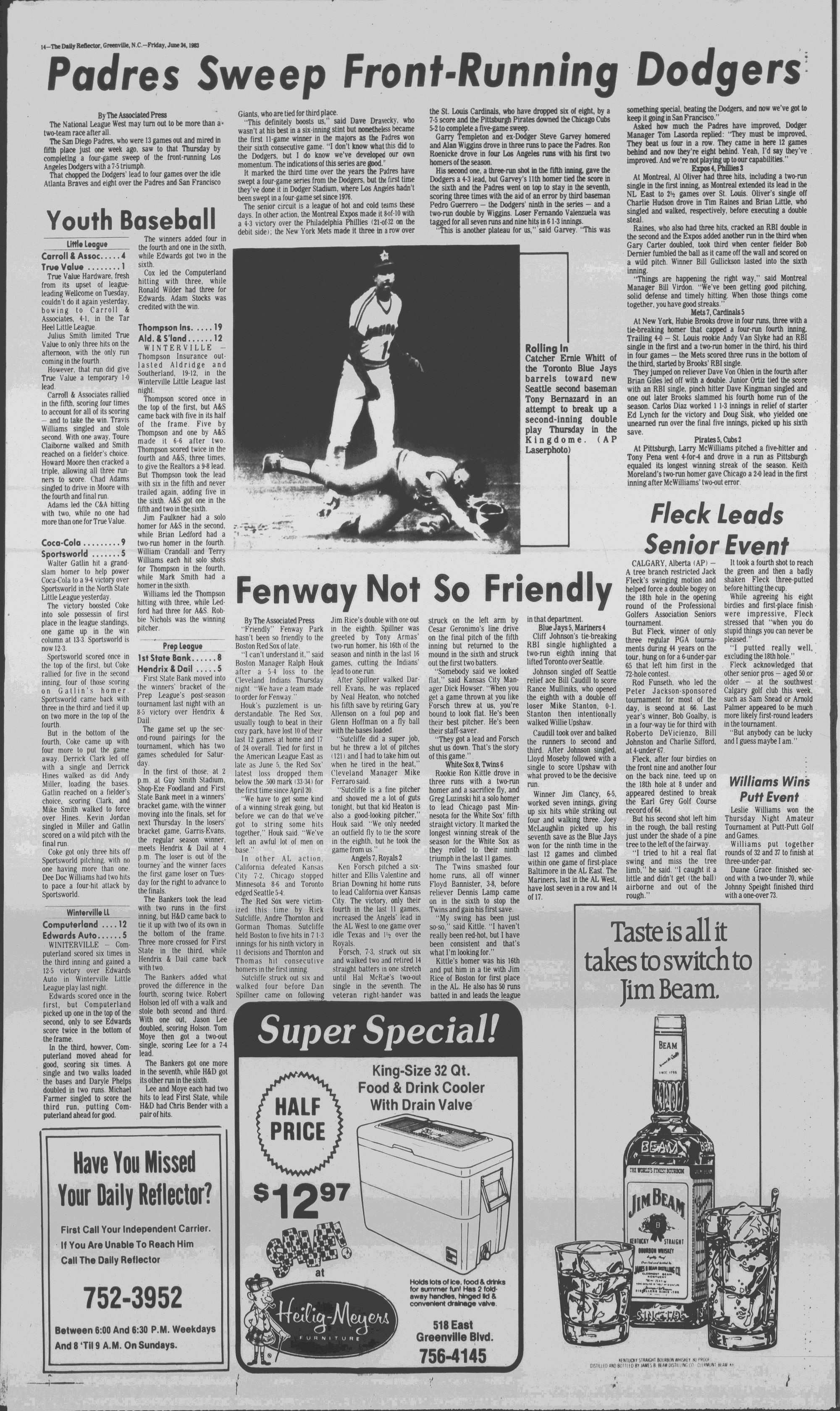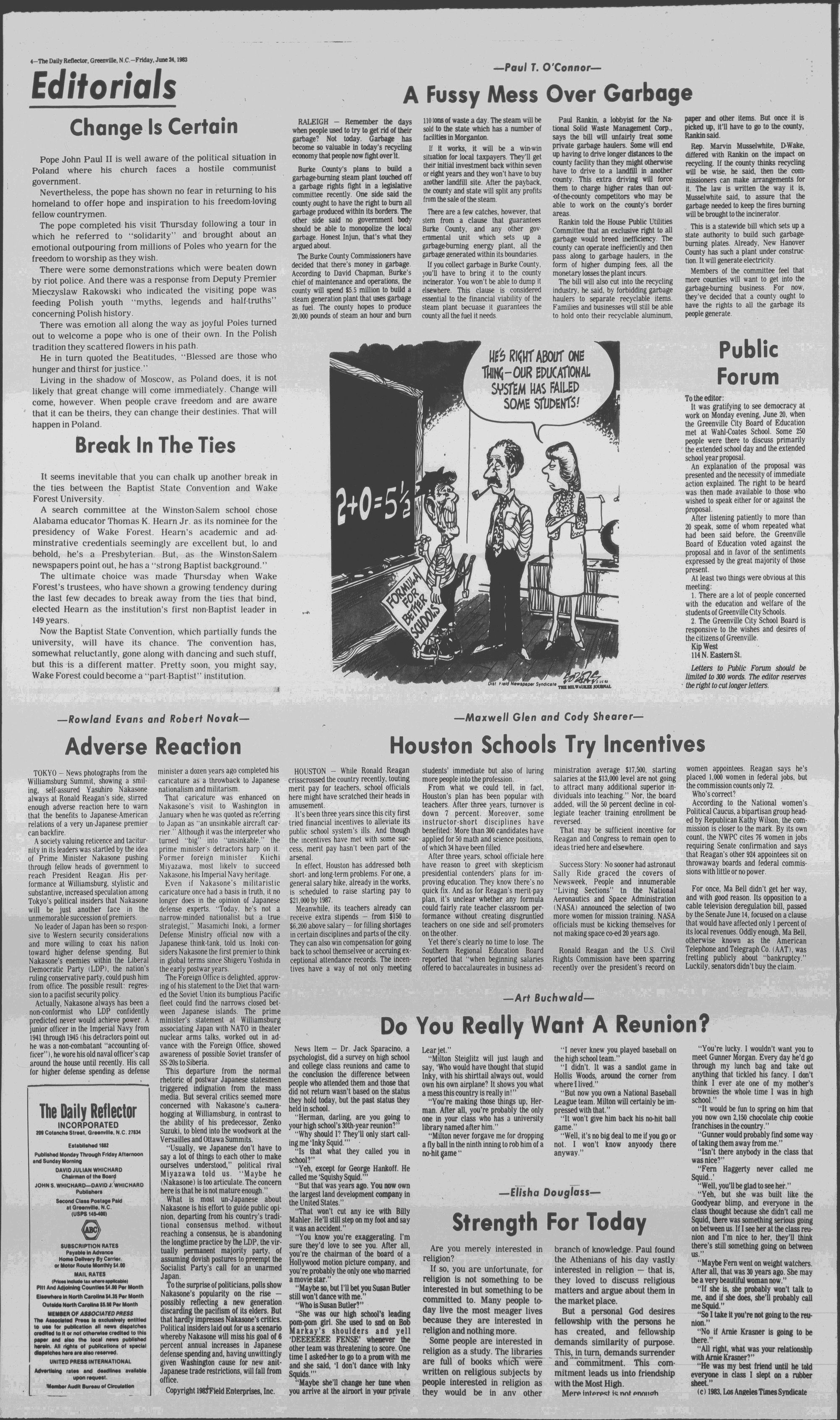 Tempers flared, curses were muttered and racquets flew as court decorum crumbled at Wimbledon yesterday. (Page 13)THE LiOISLATUREN.C. Senate expected to enact limitations on high rise conetruction on mountain ridges today, just 3 months after its introduction. (Page 24) City Council candidates preview their plans for the November elections. A pictorial look at the demolition of the former First Presbyterian Church. Pitt County schools wrap up Project Exodus. a program for GT students.THE DAILY REFLECTOR
