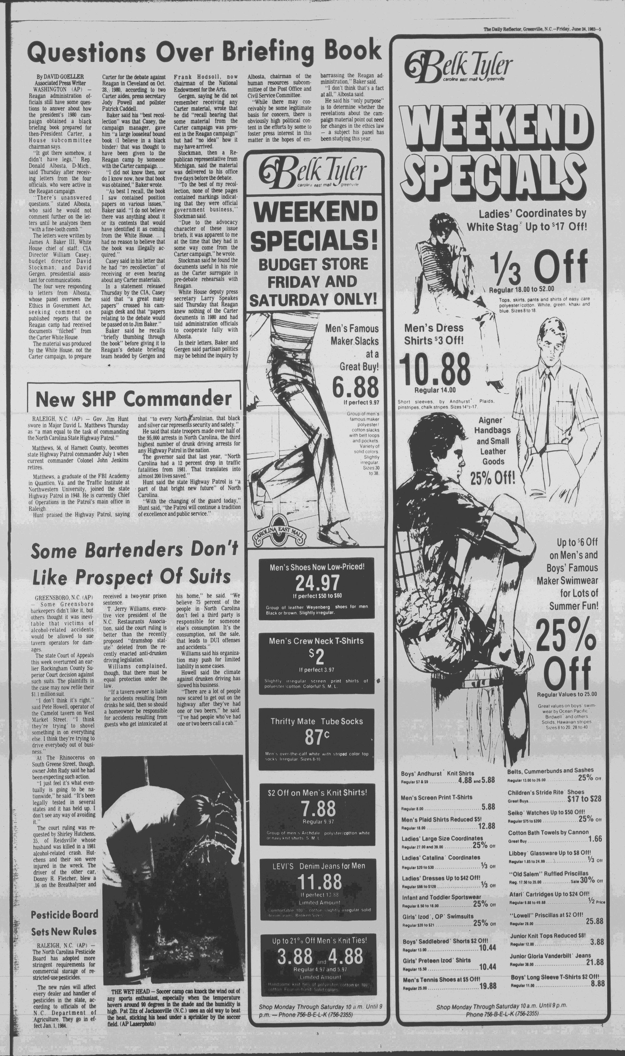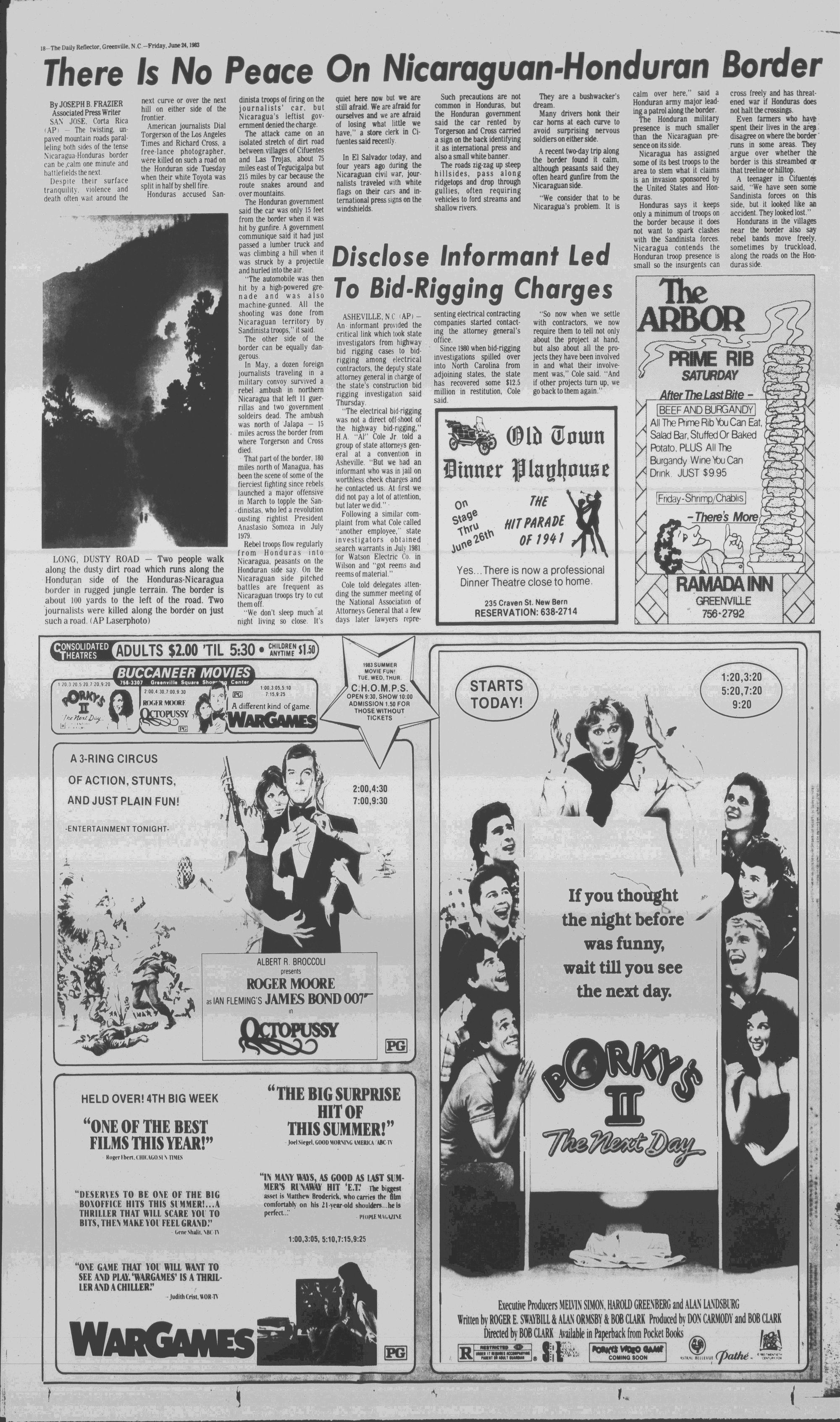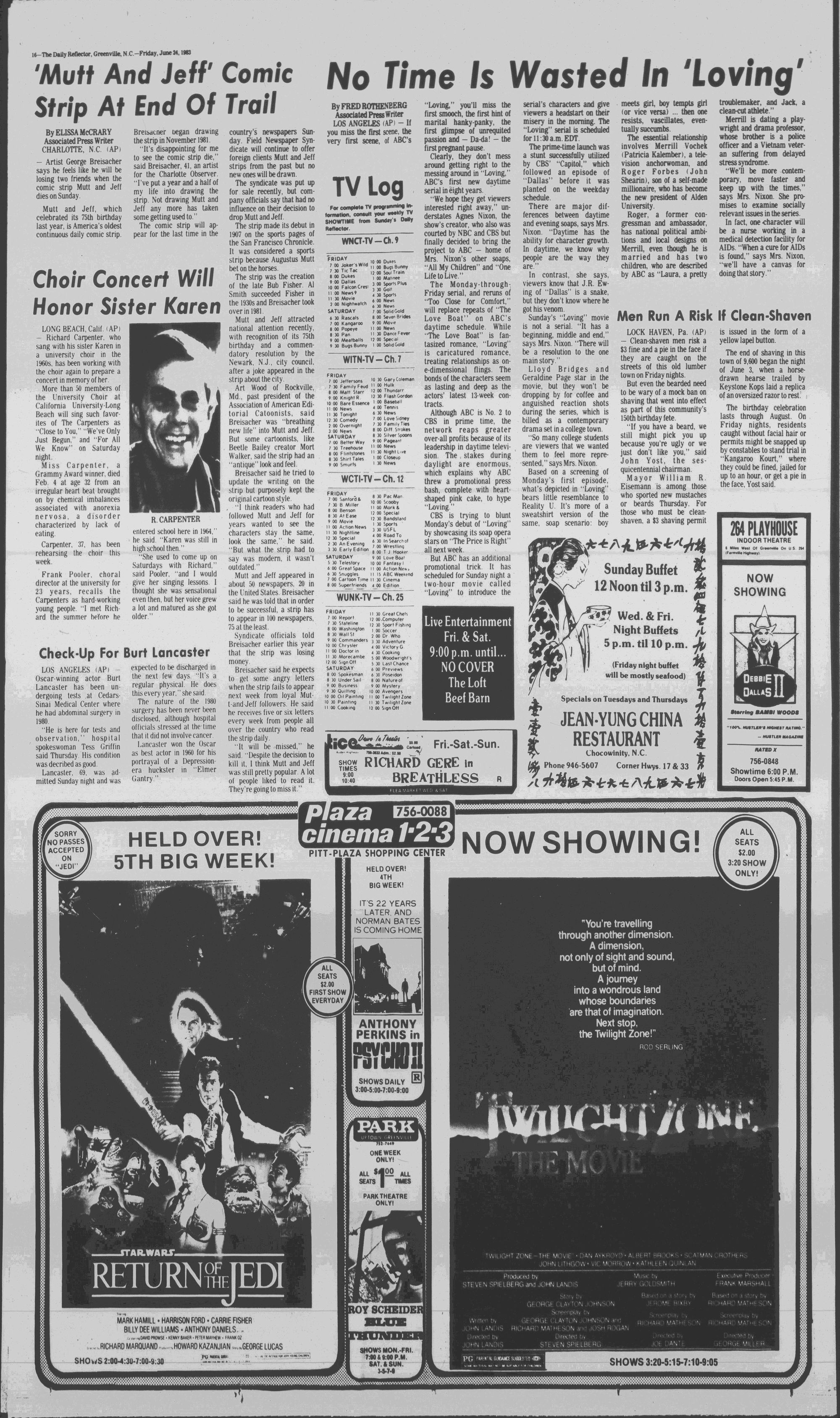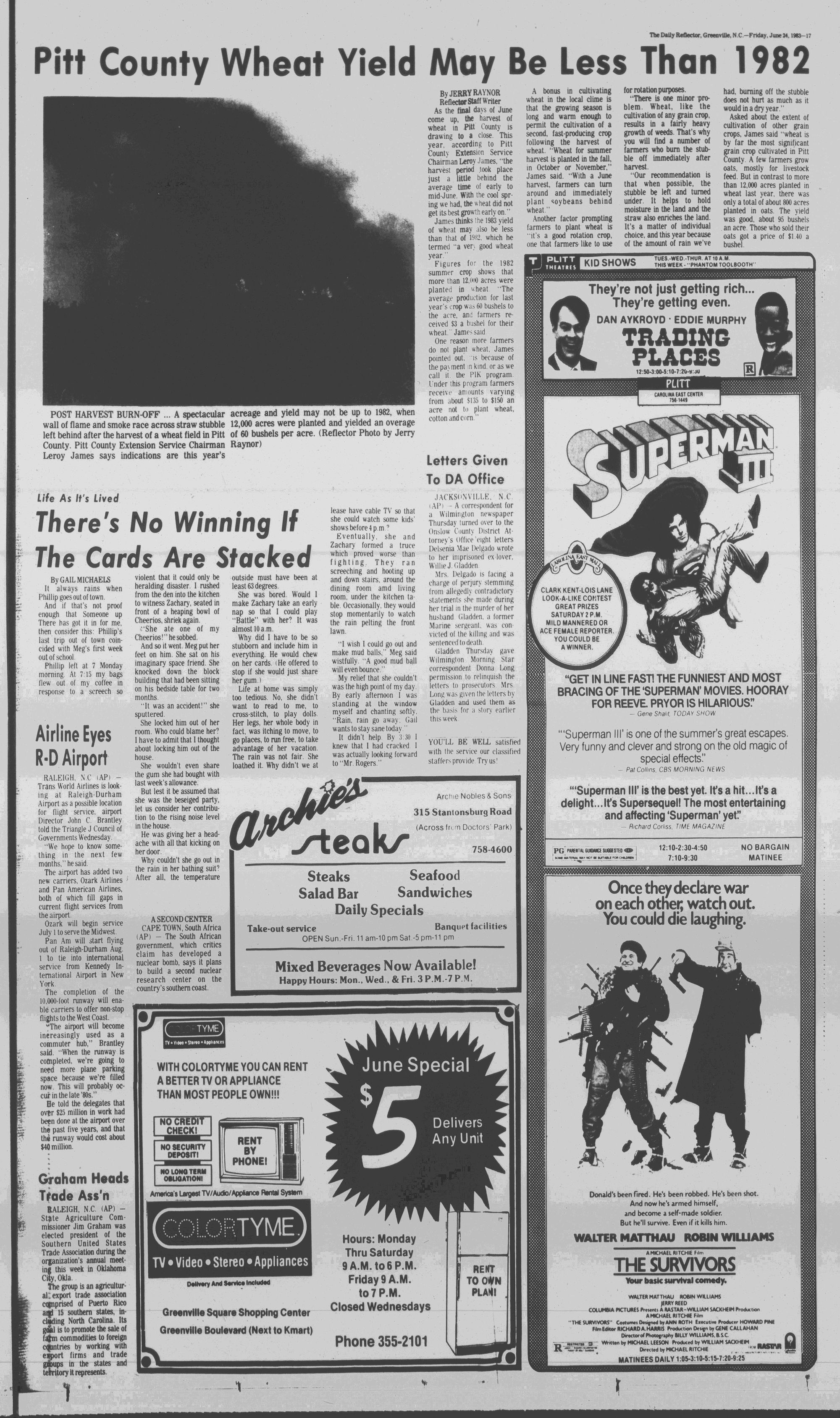 Tempers flared, curses were muttered and racquets flew as court decorum crumbled at Wimbledon yesterday. (Page 13)THE LiOISLATUREN.C. Senate expected to enact limitations on high rise conetruction on mountain ridges today, just 3 months after its introduction. (Page 24) City Council candidates preview their plans for the November elections. A pictorial look at the demolition of the former First Presbyterian Church. Pitt County schools wrap up Project Exodus. a program for GT students.THE DAILY REFLECTOR