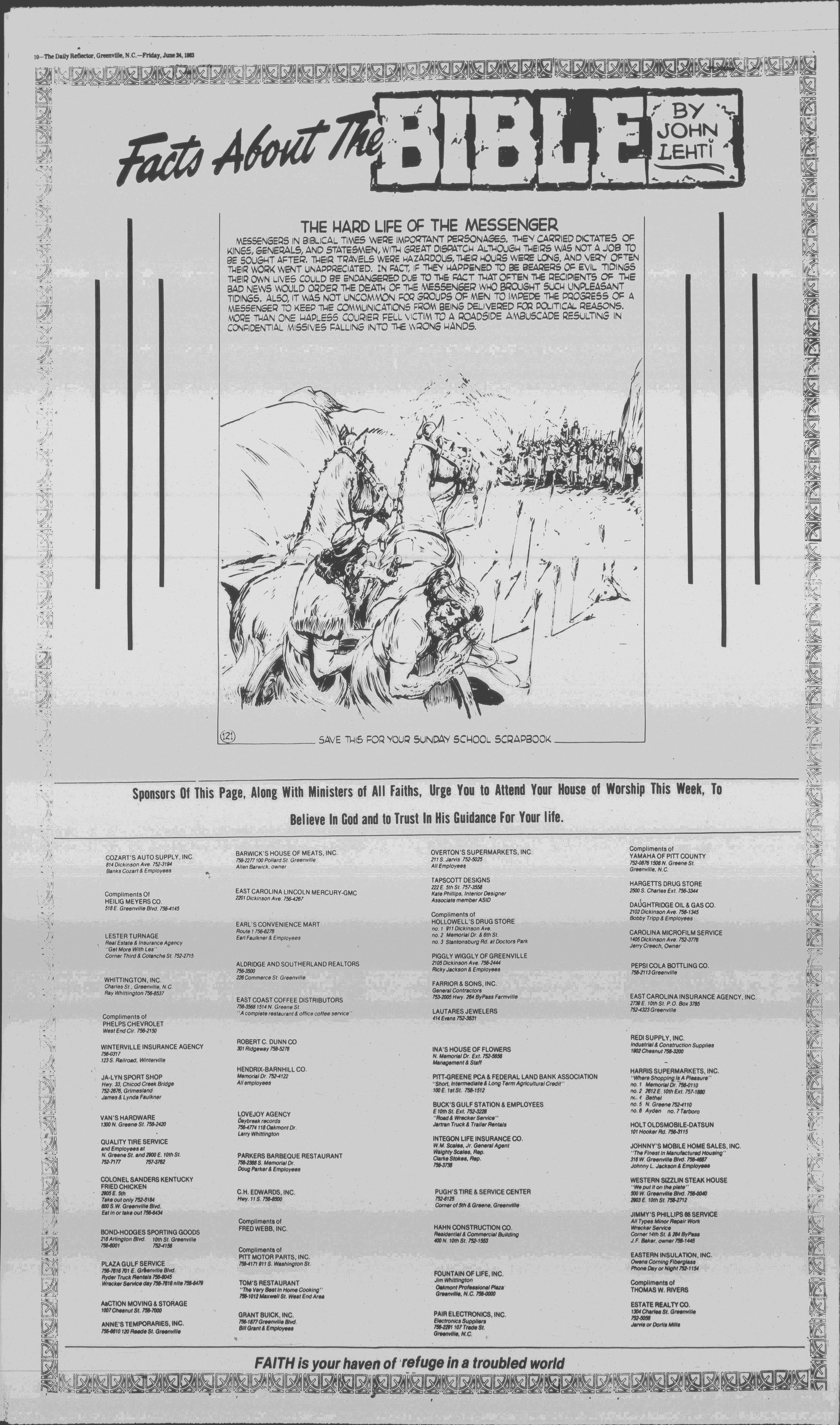 A letter received in May by West from Cato C. De Vane (Please turn to Page 12)