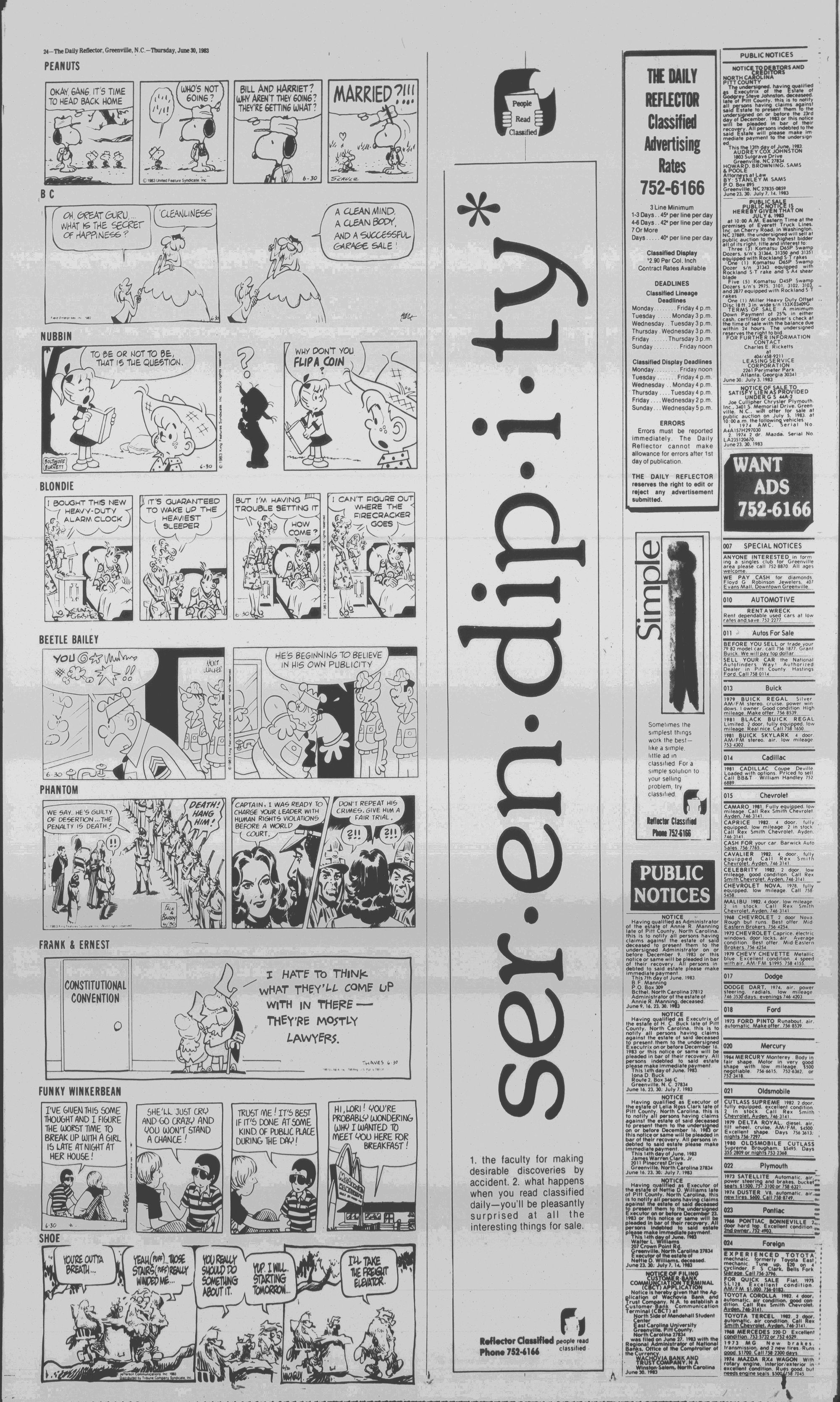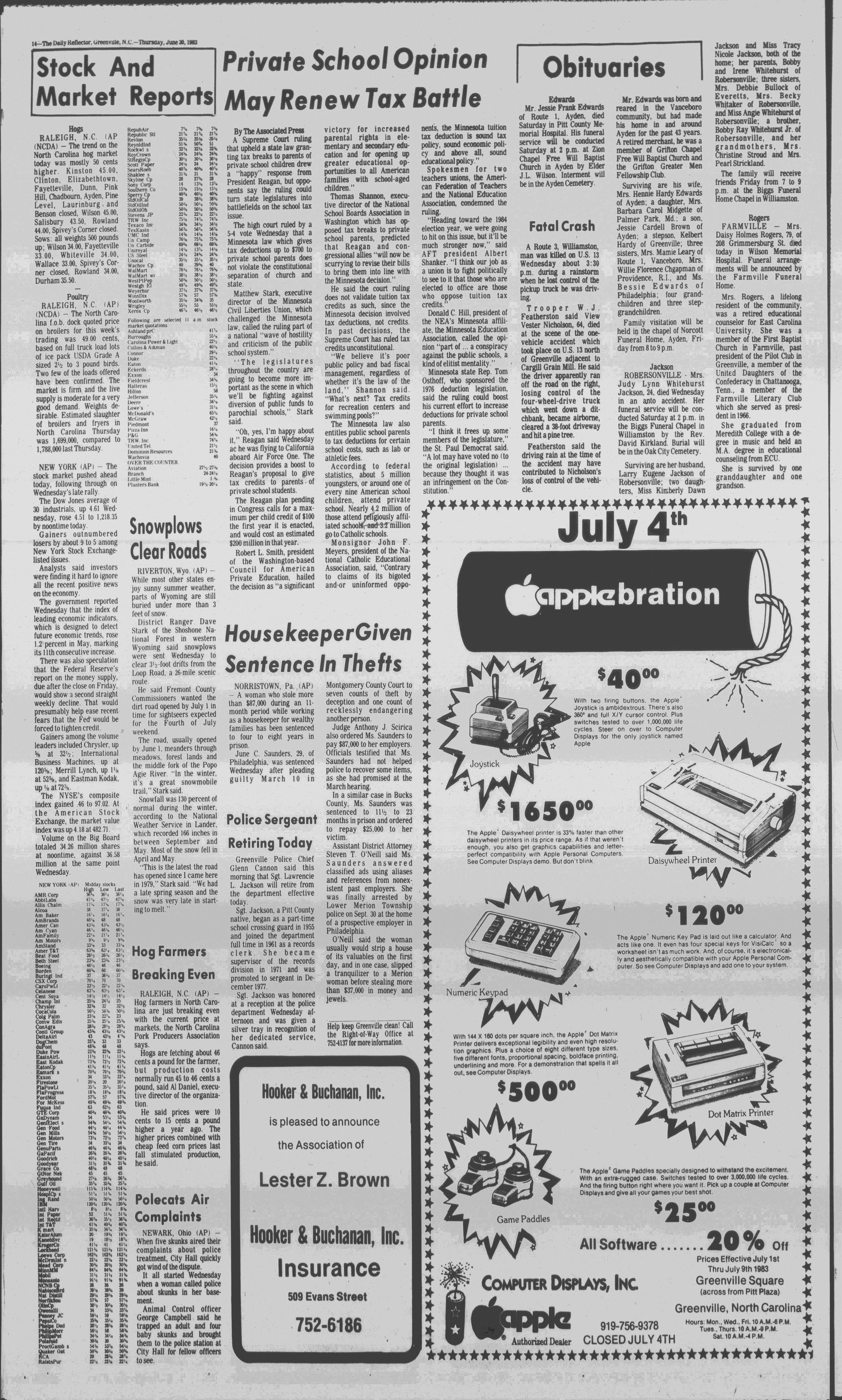 GREENVILLE, N.C. THURSDAY AFTERNOON, JUNE 30,1983