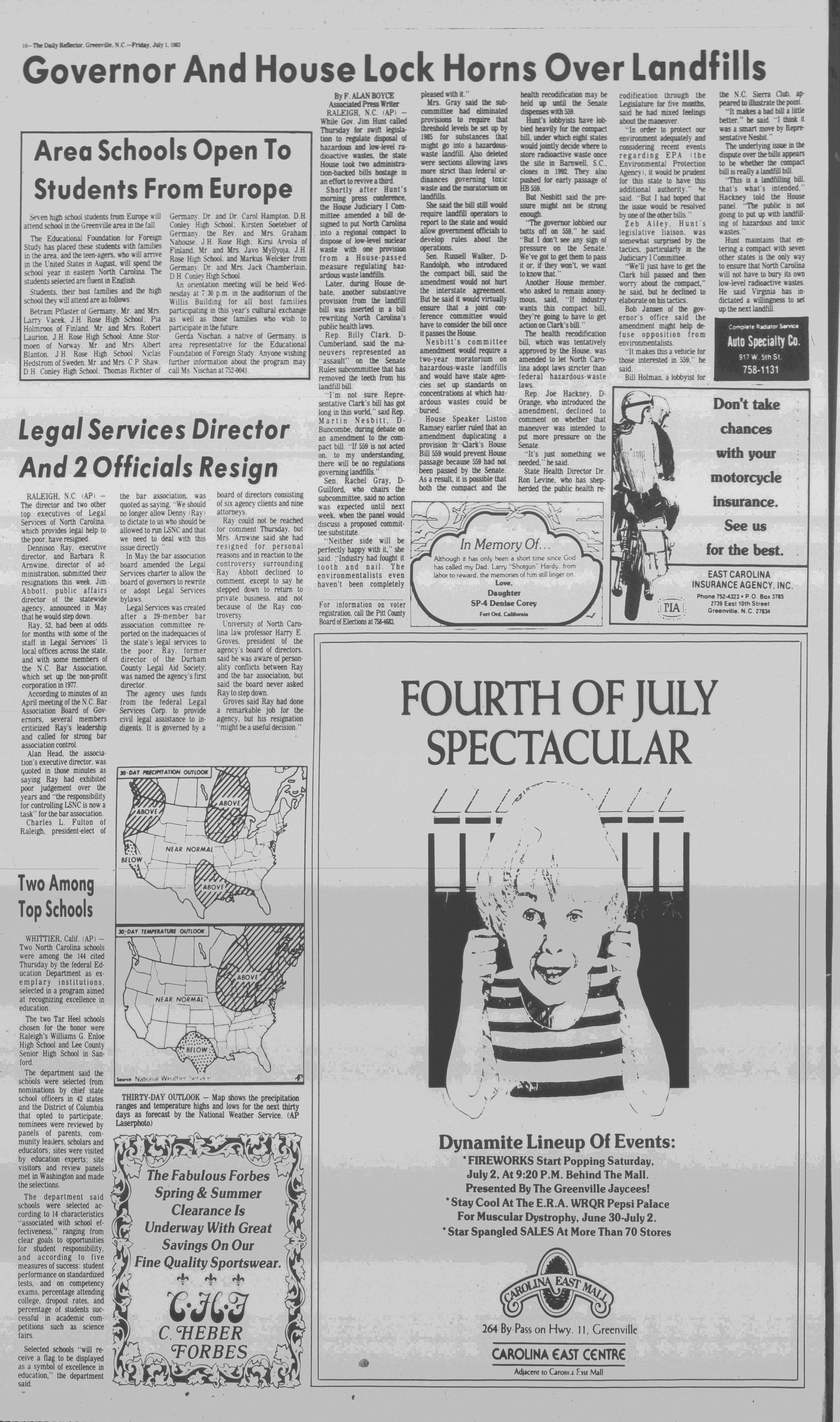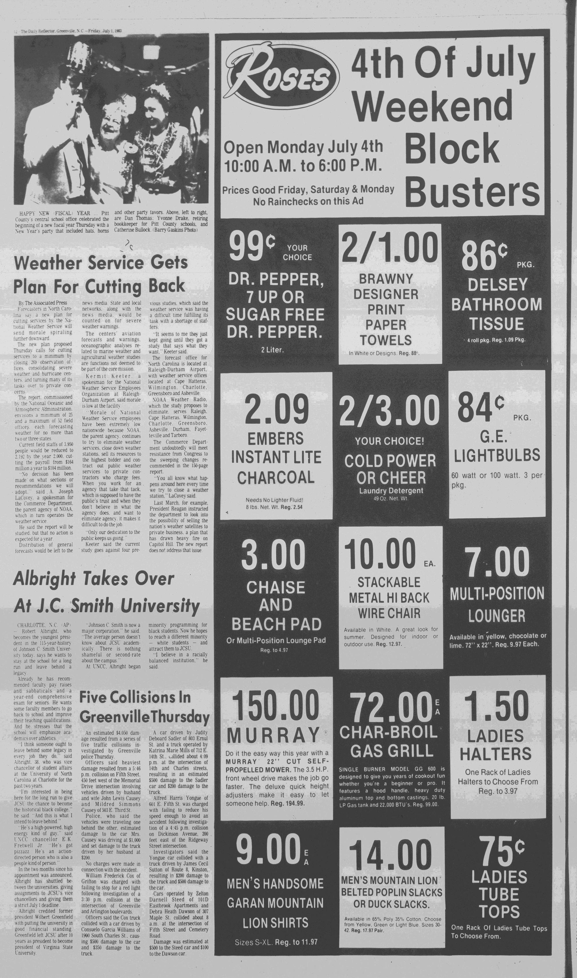 The following item was incorrectly published in our Thursday, June 30th edition. The Daily Reflector apologizes for any inconvenience this may have caused.