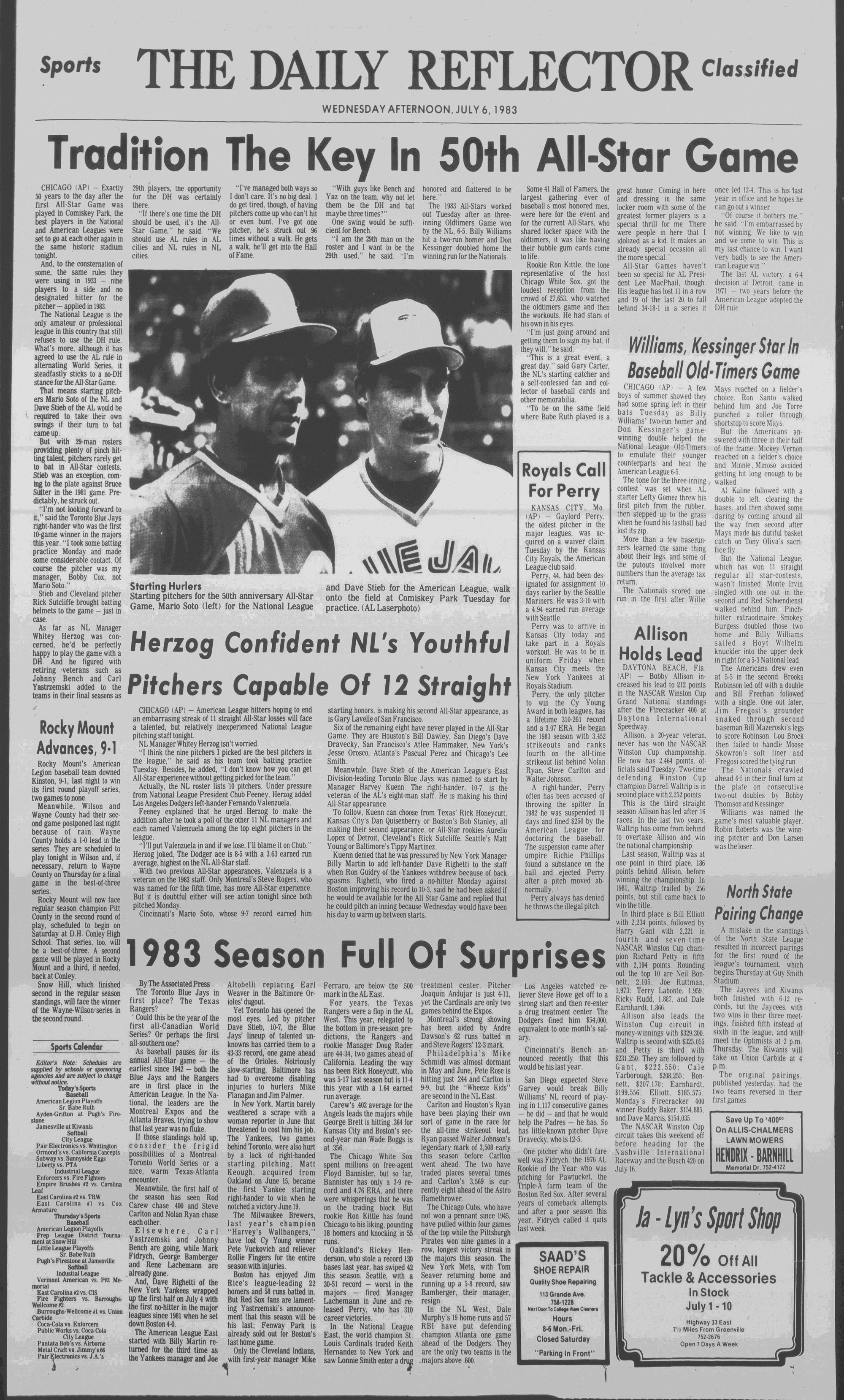The American League will be out to snap the National League's win streak in the annual All-Star game tonight. (Page 15)THE DAILY REFLECTOR