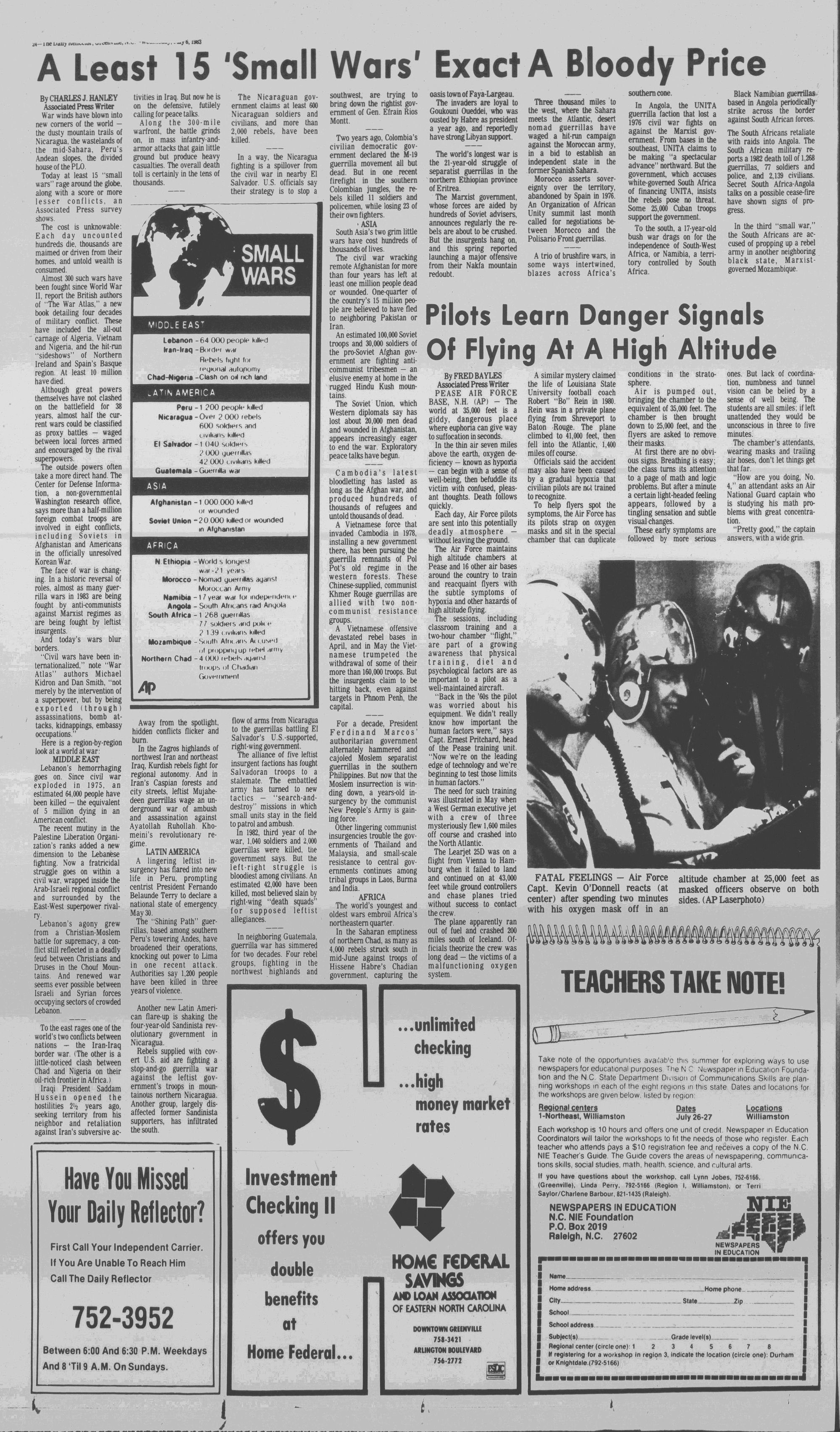 At least fifteen small wars are raging around the globe today and a score or more lesser conflicts are underway. The price: incalculable. (Page 24)SPORTS TODAY