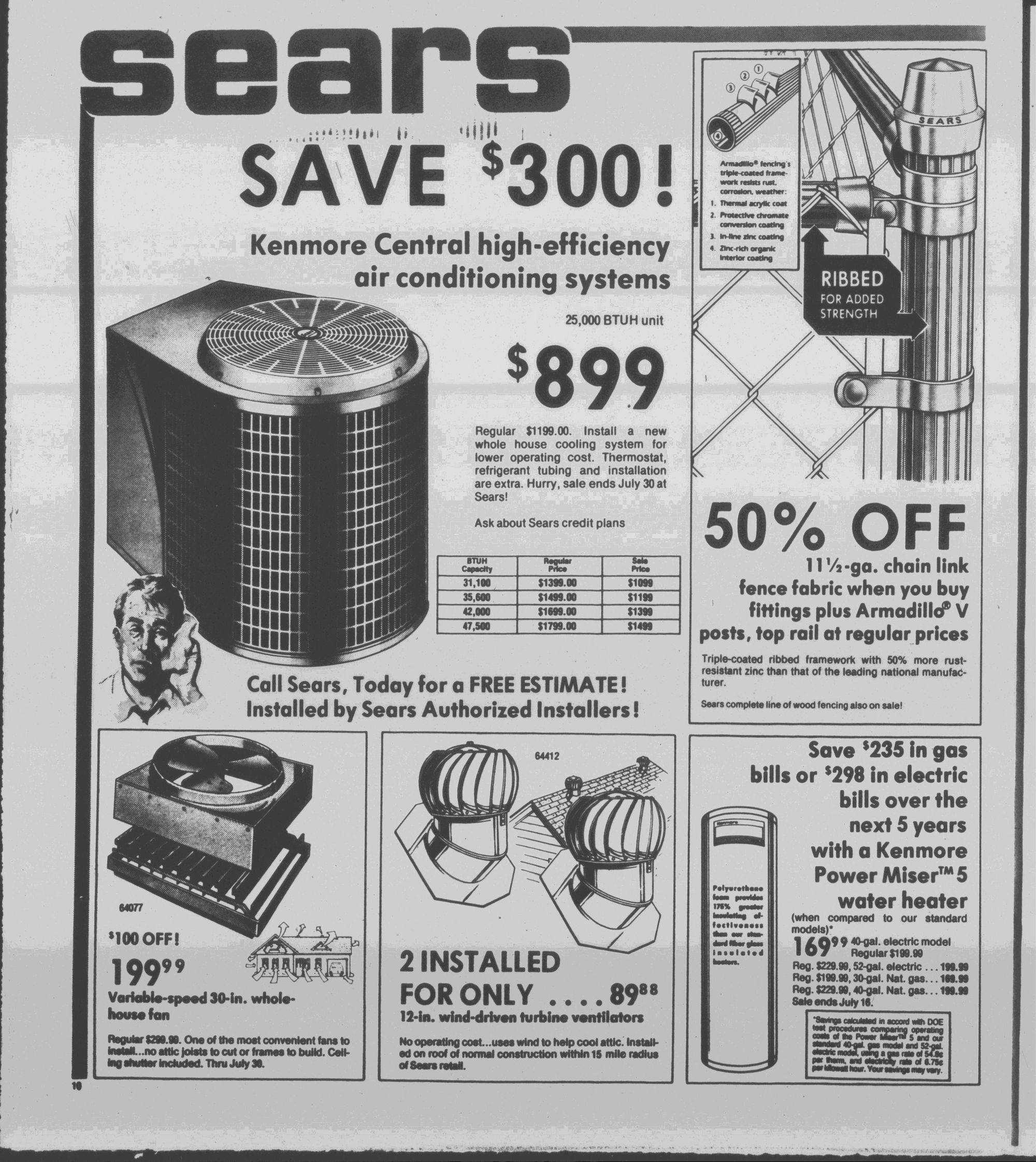 Regular $1199.00. Install a new whole house cooling system for lower operating cost. Thermostat, refrigerant tubing and installation are extra. Hurry, sale ends July 30 at Sears!