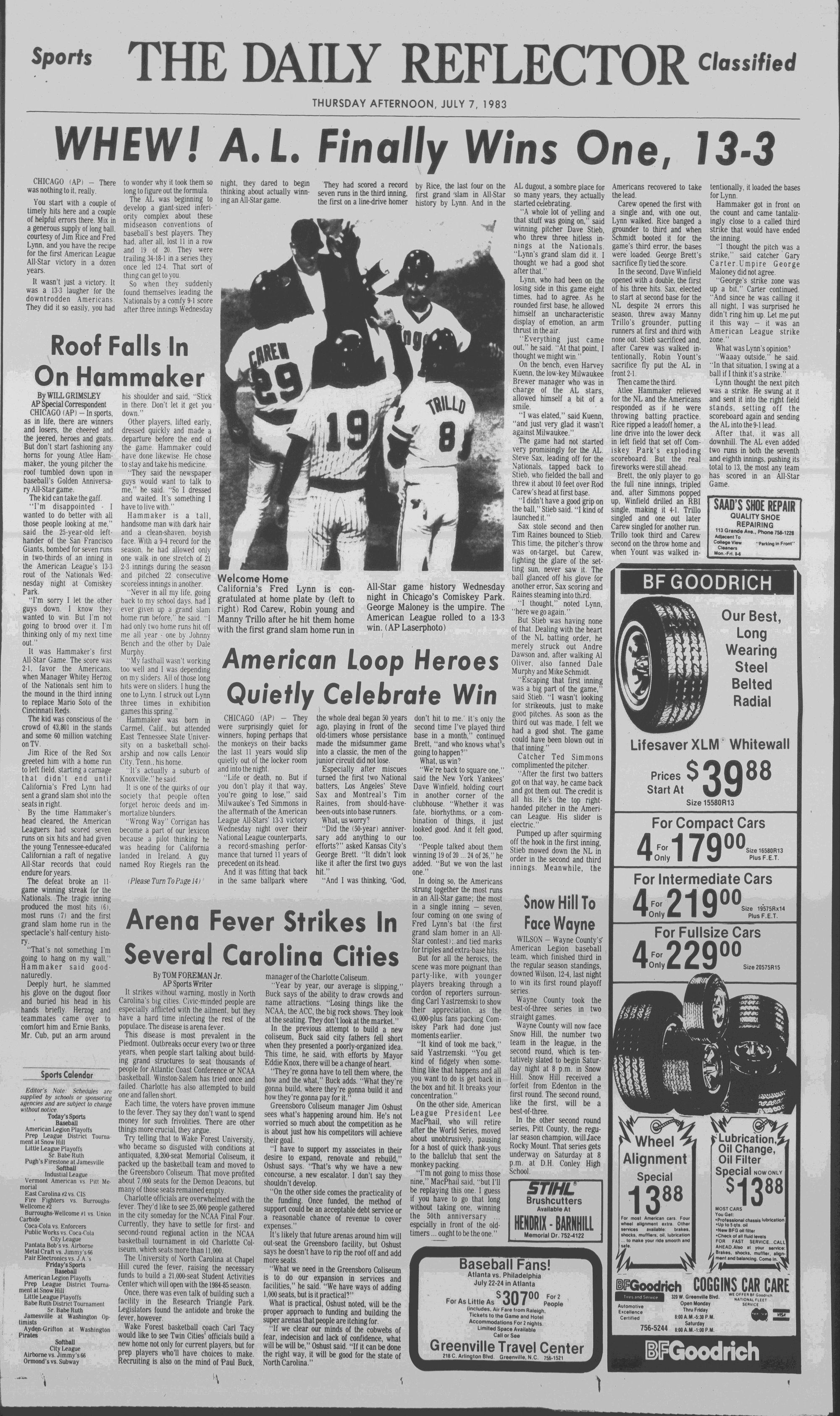 The American Legion snapped its All-Star Game jinx last night with a 13-3 romp over the National League. (Page 13)THE DAILY REFLECTOR