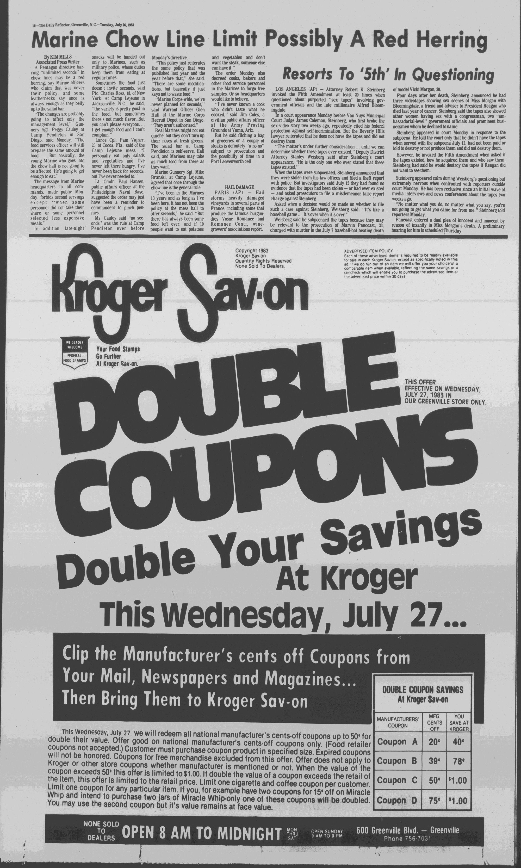 Double Your 8^"9*This Wednesday, July 27...Clip the Manufacturer's cents off Coupons from Your Mail, Newspapers and Magazines... ' Then Bring Them to Kroger Sav-on