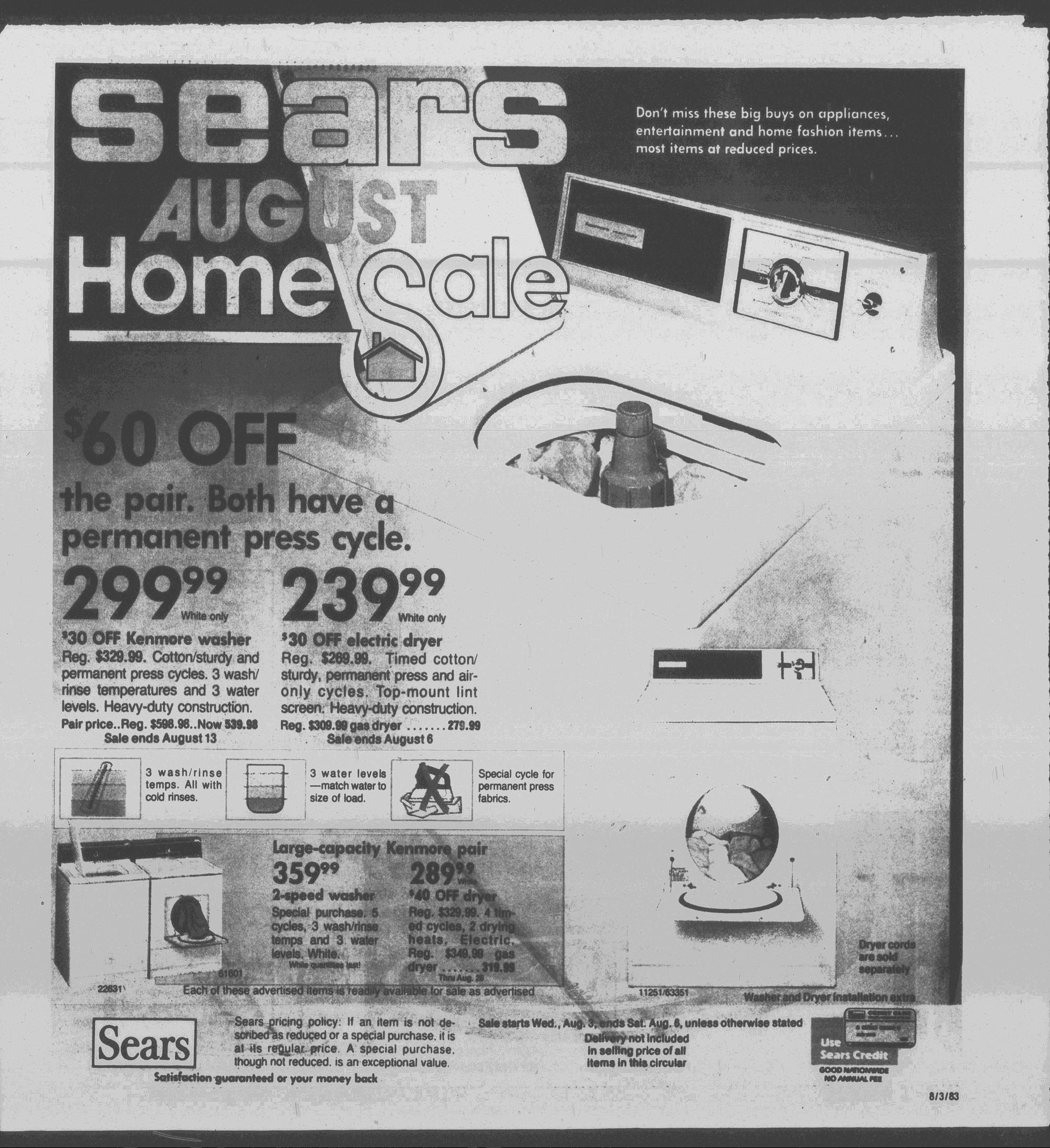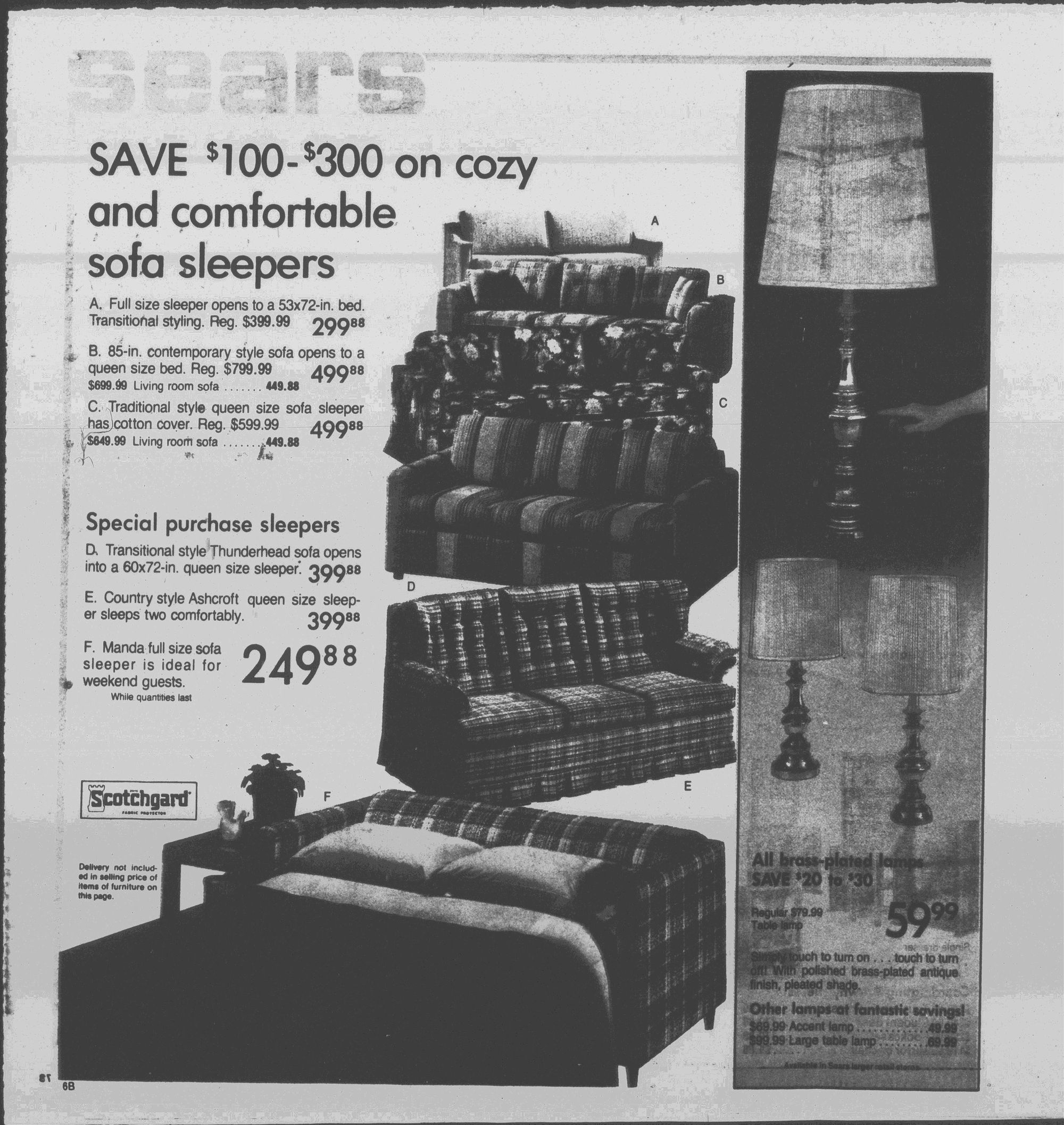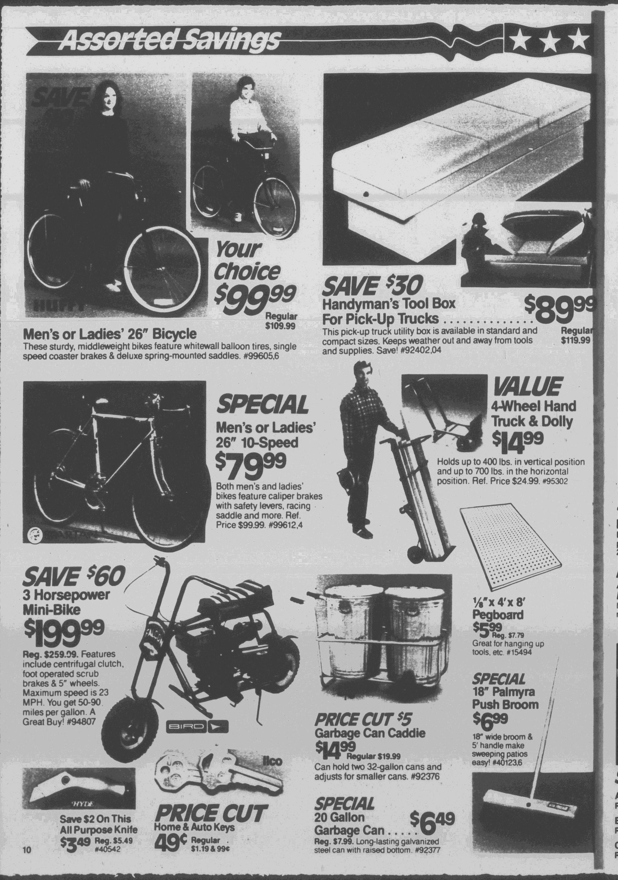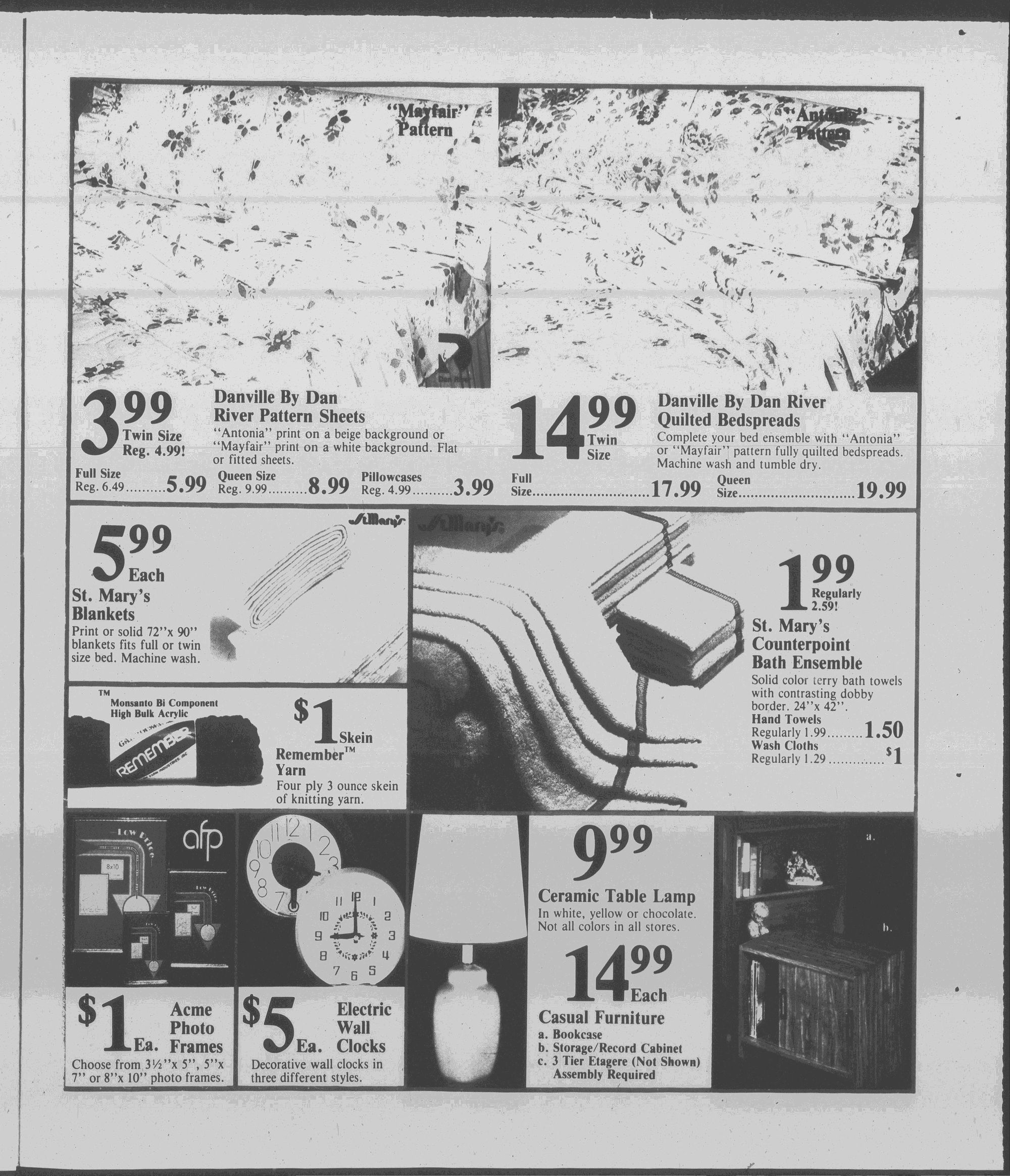 provide a guide to the range ol retail selling pricas m our area and may be usoM in idenlifying diflerent unite ot the same manu-tactuier An item s reteronce retail pnce s either the manirtacturer's suggested reiaH pnce or our deiemiination o< its (un retail pnce based on pnces at which it or similar merchandise is odered by pnncipal retailers (depanroam stores, specialty shops and other non<iiscoont sellers) in our selling aiei While we beliave our releronce retails do not appreciably exceed the highest letail prices m which sales are made in our seUmg area, we cannot assure you that our relerence retail prvs. as described abtwe. represent the pnces in every community on any gnien day Some items m this advertisemenl are lisBd at "regular selling pnces The merchandise IS olleied at tha pnce except during a special sale The purposed showing a relerence retail pnce (or a regular price) a to assist you. our customer, in making a knomnedgeable and better intormed buying decision We suggest that you also do comparative shopping and compare our pnces (Ptkos m this tabloid do not include deltvory charges Ask us about delivery rates )