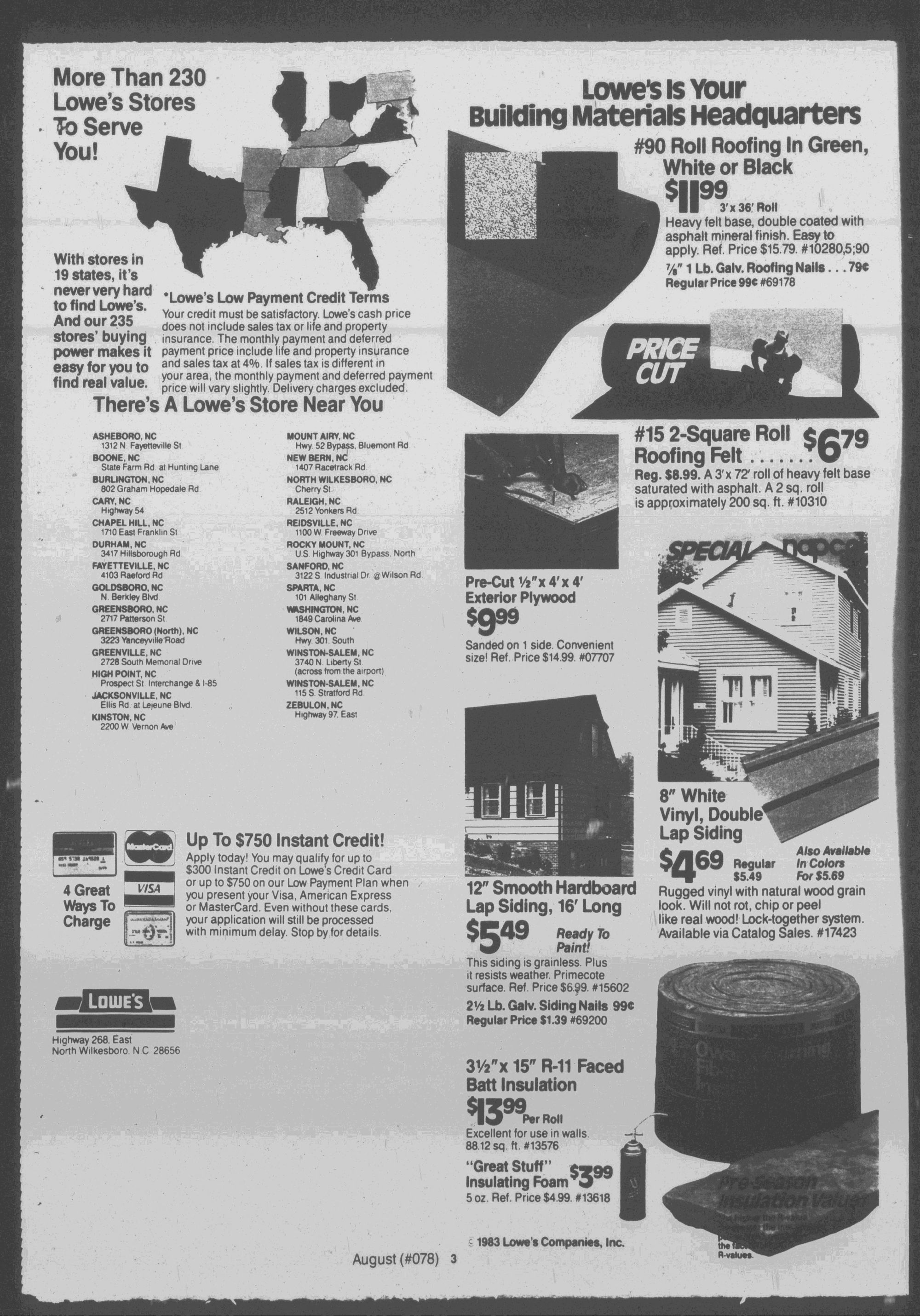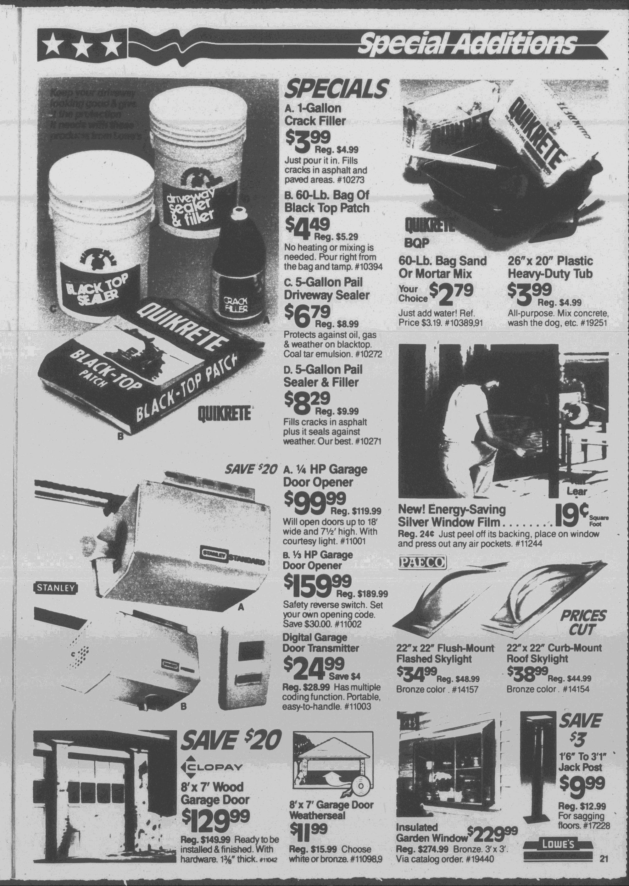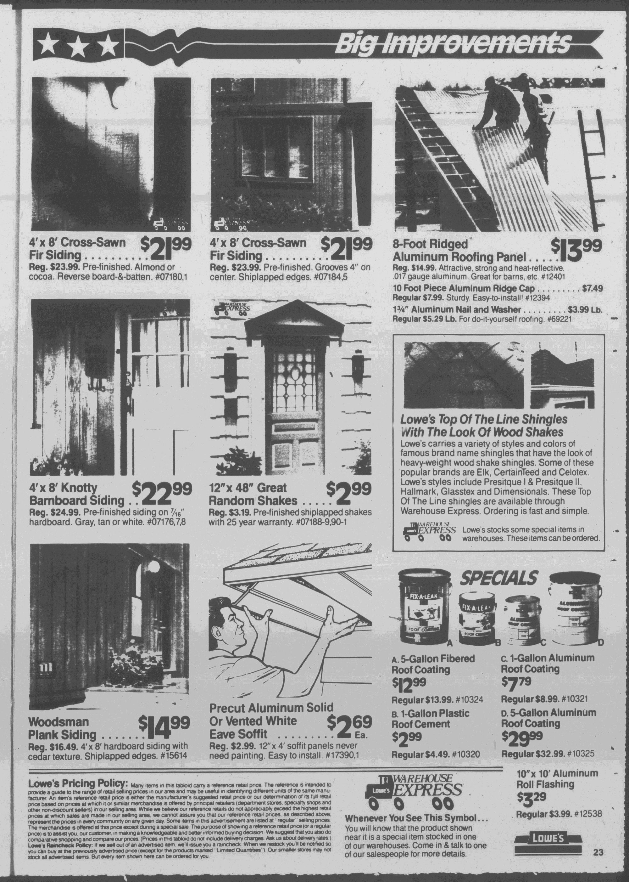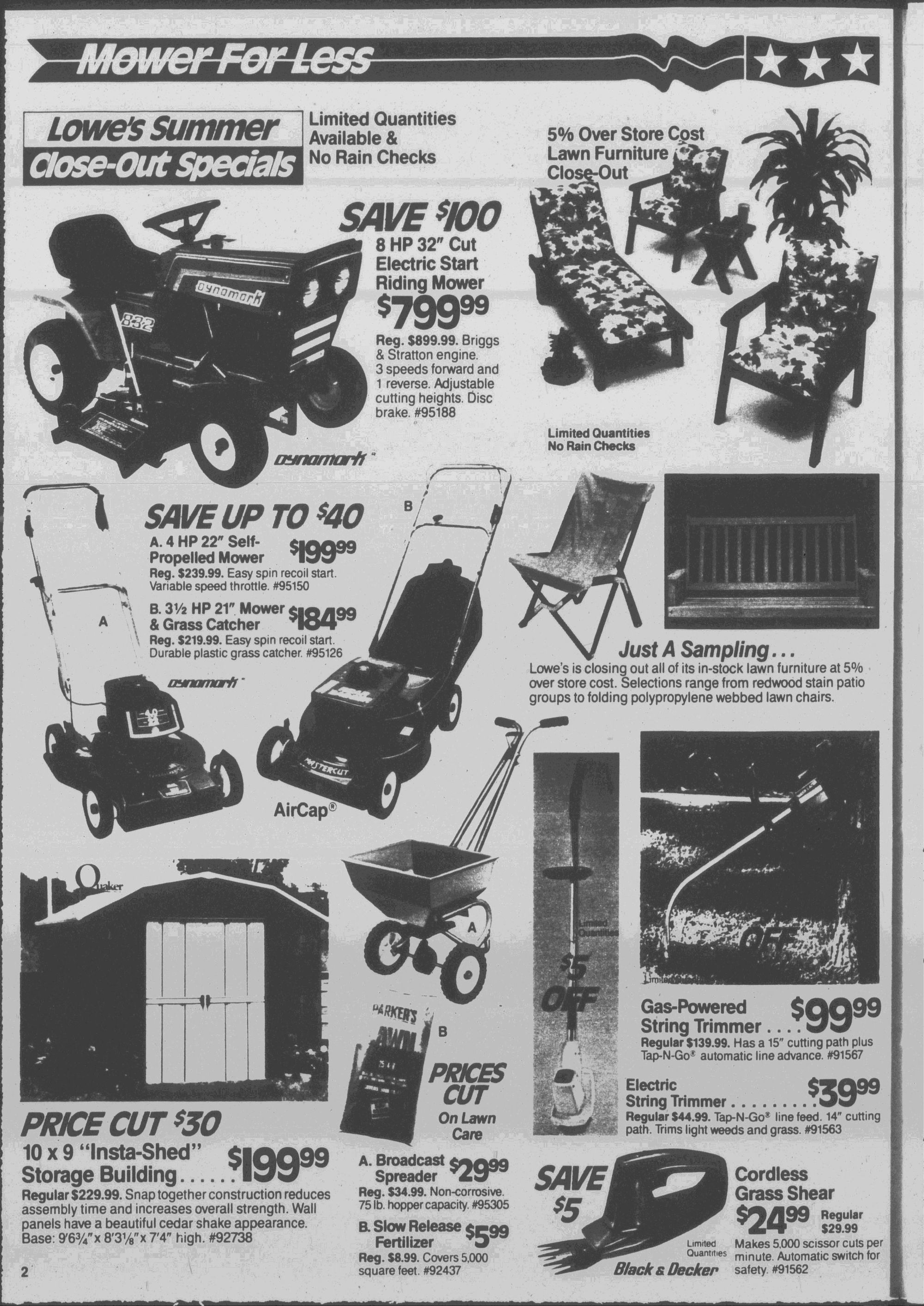 Lowe'a ndnrherk PMcy: H we sell out of an adwerbsad item. we'H asue you a raincheck When m noMX* ikXiX be notified so you din buy a* the prevxiusly advertised pnce (aeceptkx the products iturted 'LimrtedQuaiwties ') Our smaller saxes may not stxBi aH adverosed Items But every item shown here can be ordered kx)u