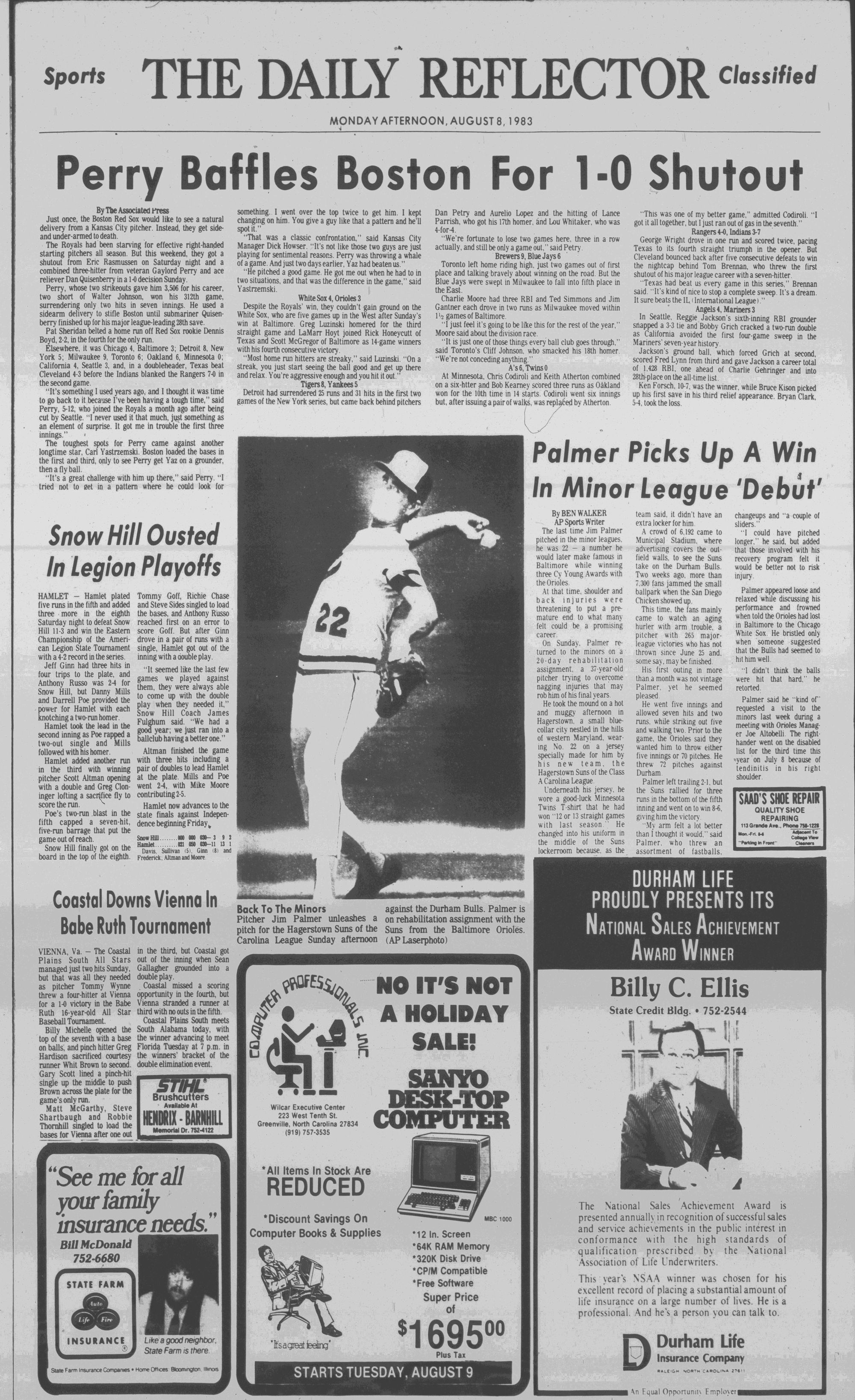 Perez, 13-3, and Steve Bredosian, recording his 16th save, combined to scatter eight hits.
