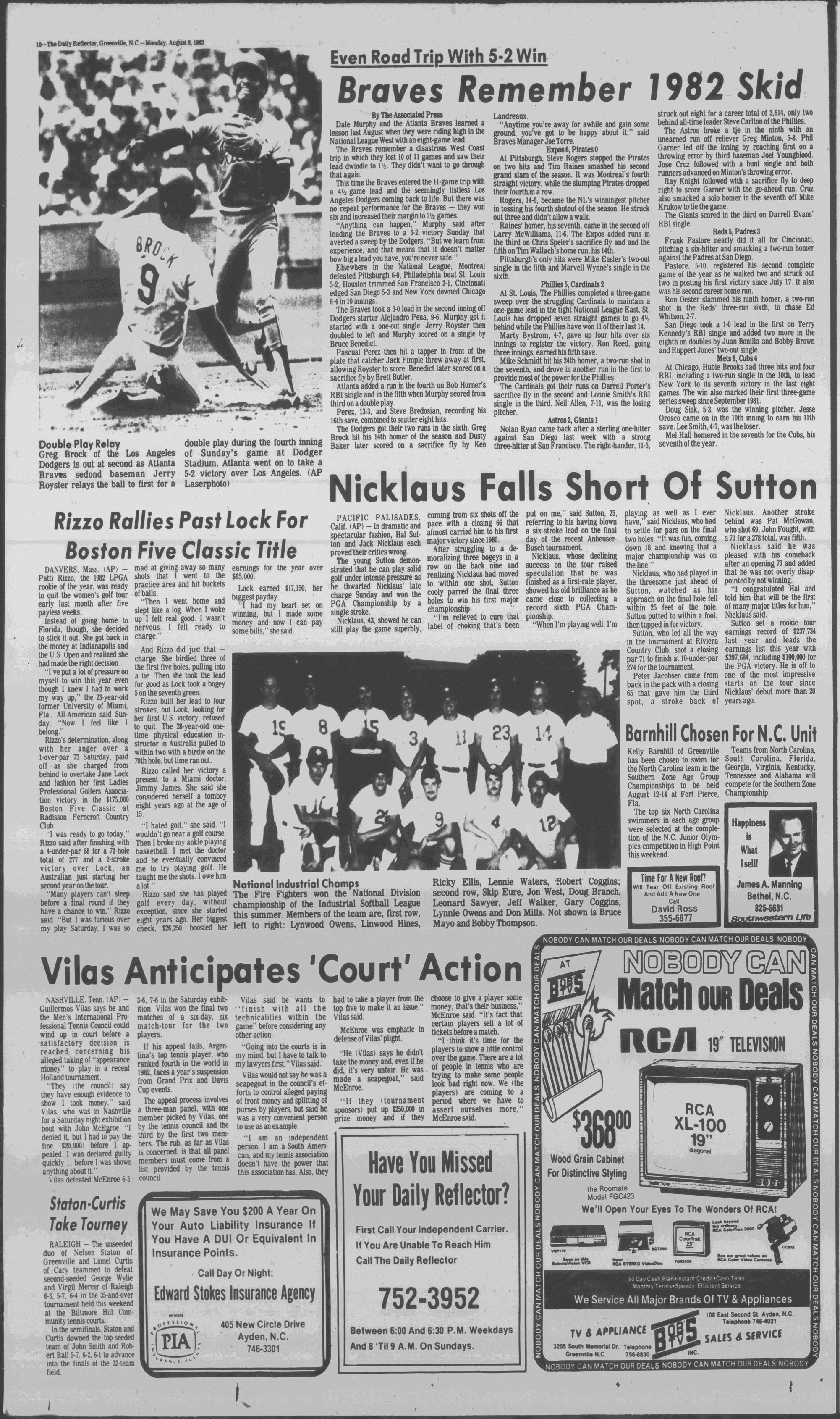 This time the Braves entered the H-game trip with a 4/i-game lead and the seemingly listless Los Angeles Dodgers coming back to life. But there was no repeat performance for the Braves - they won six and increased their margin to 5'/i games.