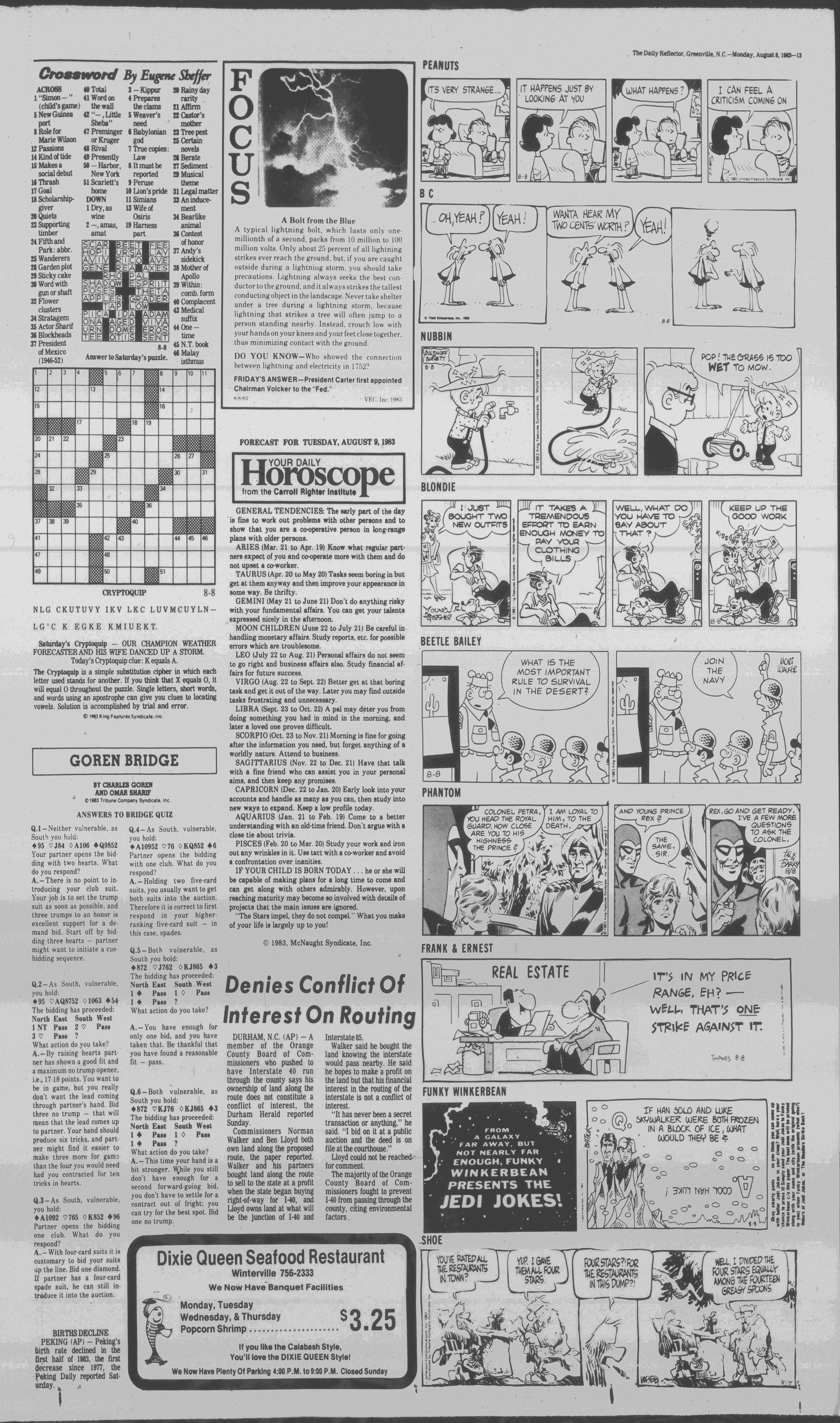FORECAST FOR TUESDAY, AUGUST 9.1983